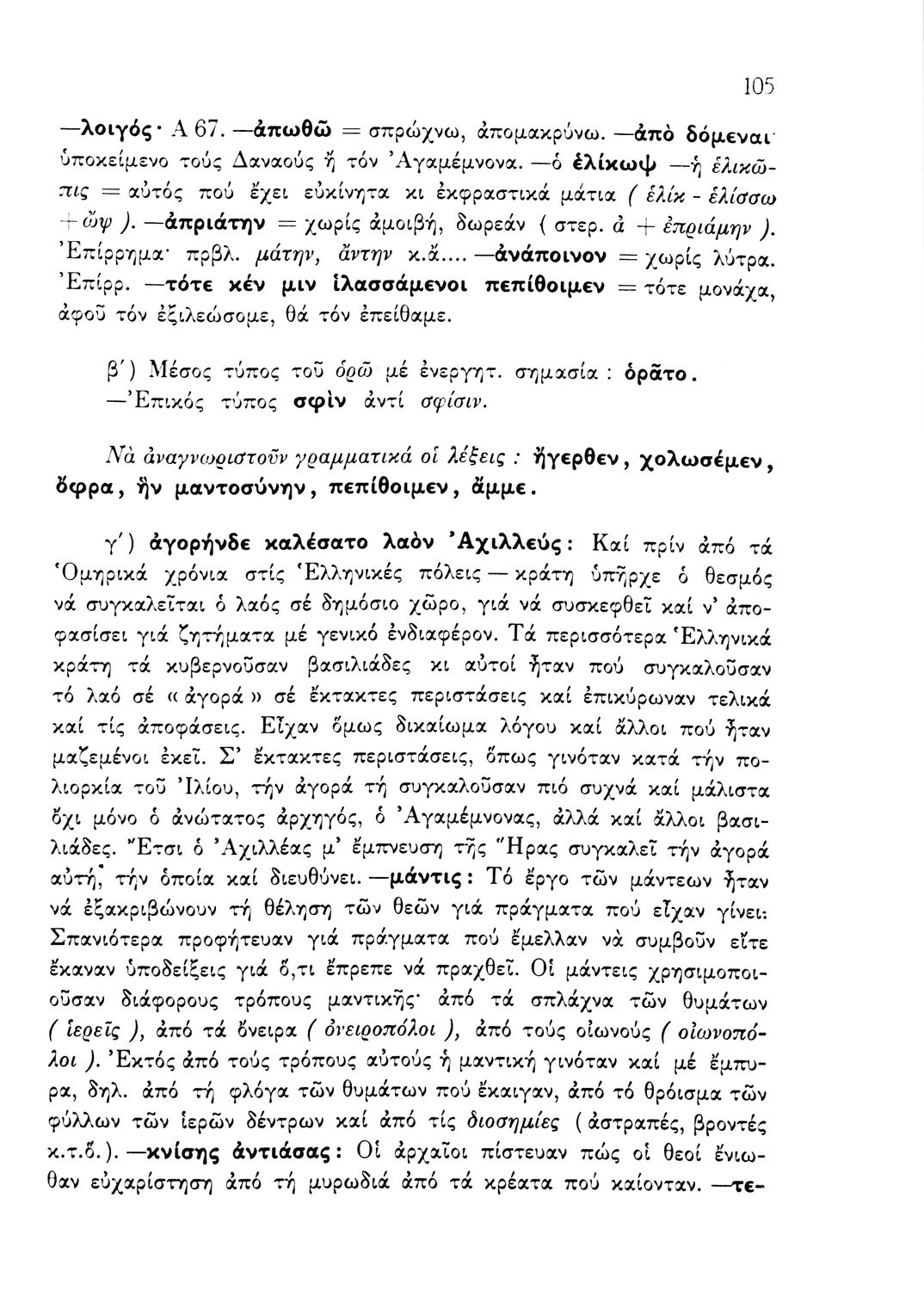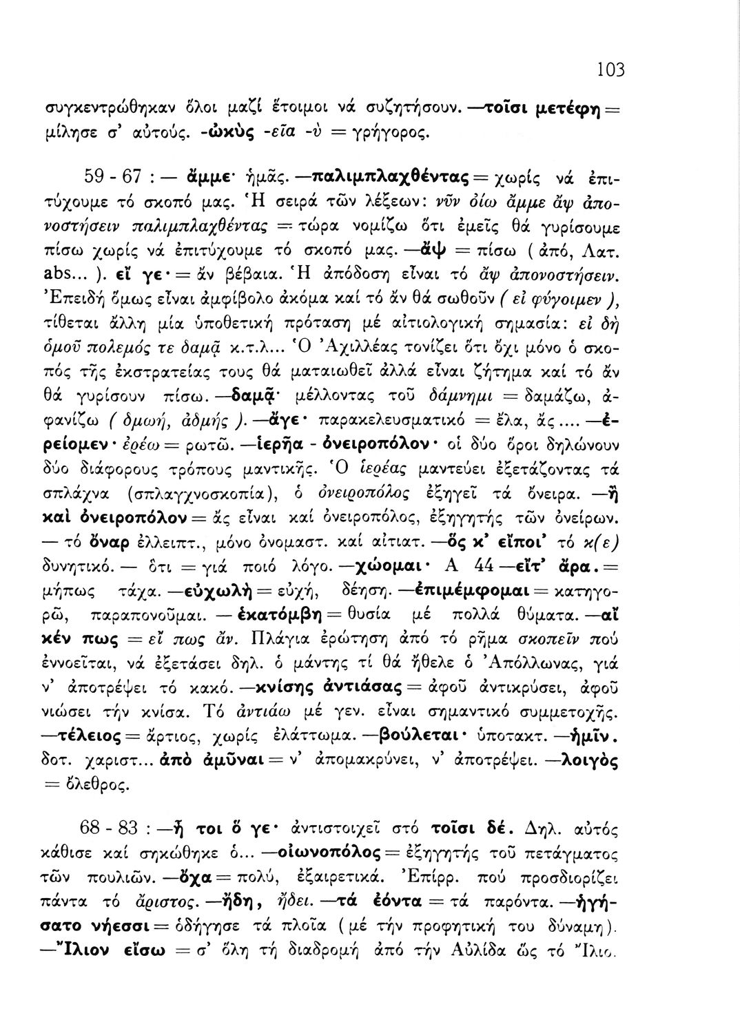Σχολικό εγχειρίδιο Αρχαίων Ελληνικών ΣΤ΄ Γυμνασίου που περιέχει μετάφραση αποσπασμάτων από την Ιλιάδα, ερμηνευτικά, πραγματολογικά σχόλια και λεξιλογικές παρατηρήσεις. Ο συγγραφέας ήταν Καθηγητής στο Κολέγιο ...