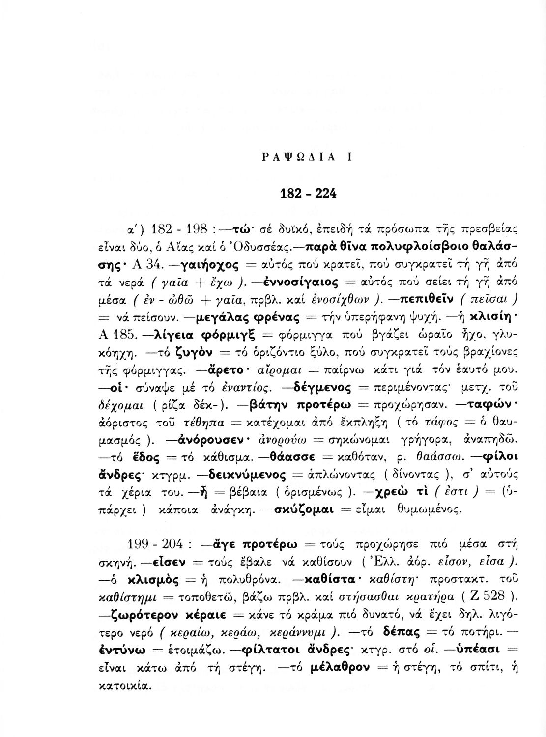 Σχολικό εγχειρίδιο Αρχαίων Ελληνικών Α' Λυκείου που περιλαμβάνει αποσπάσματα από κείμενα αρχαίων Ελλήνων συγγραφέων και γραμματικές, συντακτικές και ερμηνευτικές σημειώσεις. Περιέχει και ασκήσεις γραμματικής.