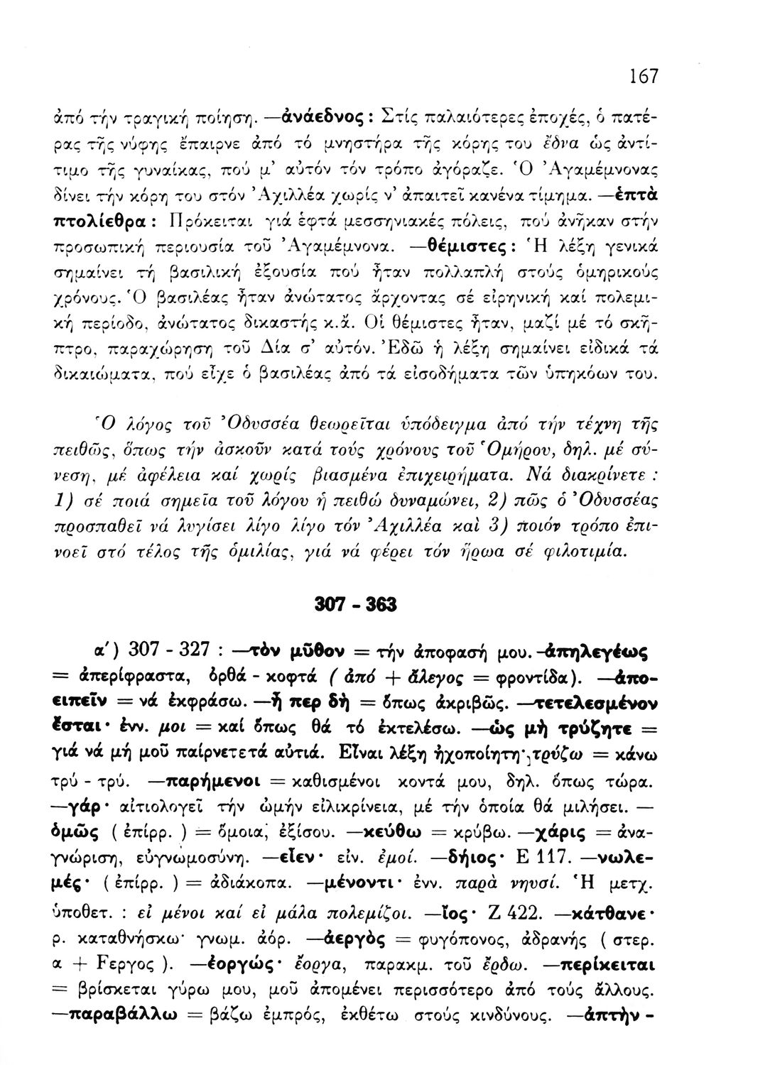 Σχολικό εγχειρίδιο Αρχαίων Ελληνικών. Το βιβλίο περιλαμβάνει εισαγωγή σχετικά με την ελληνική ποίηση και τα ομηρικά έπη. Περιλαμβάνονται αποσπάσματα από το πρωτότυπο κείμενο της Οδύσσειας τα οποία συνοδεύονται