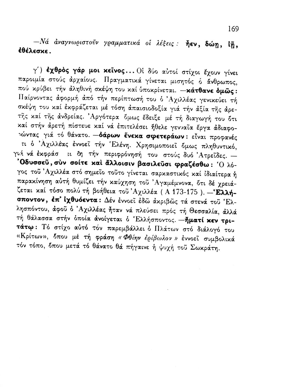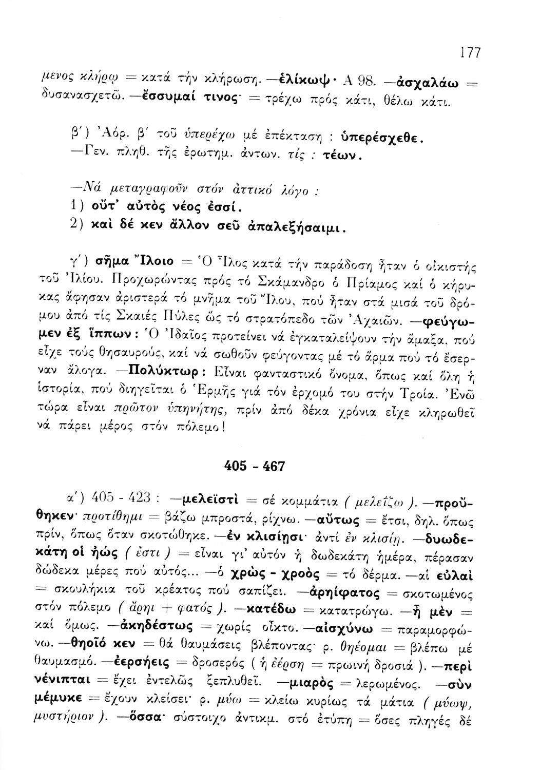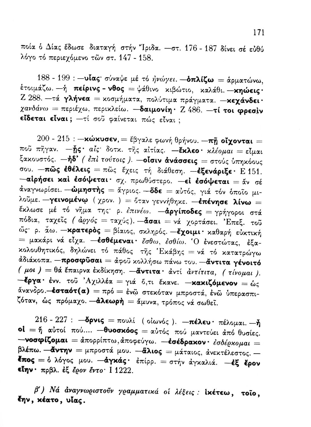 Σχολικό εγχειρίδιο Αρχαίων Ελληνικών για τη Β' Γυμνασίου που περιλαμβάνει την Ιλιάδα Ομήρου. Το βιβλίο αποτελεί το Α΄ τεύχος από δύο. Η εισαγωγή και τα σχόλια έγιναν από την Ελένη Ι. Κακριδή.