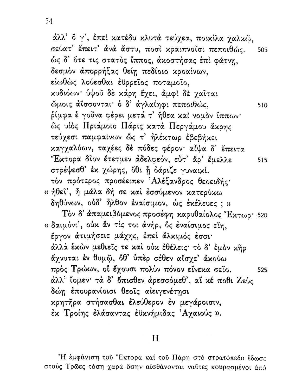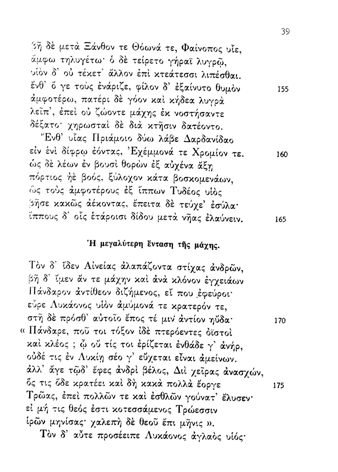 Σχολικό εγχειρίδιο Αρχαίων Ελληνικών για τη Β' Γυμνασίου που περιλαμβάνει την Ιλιάδα Ομήρου. Το βιβλίο αποτελεί το Α΄ τεύχος από δύο. Η εισαγωγή και τα σχόλια έγιναν από την Ελένη Ι. Κακριδή.