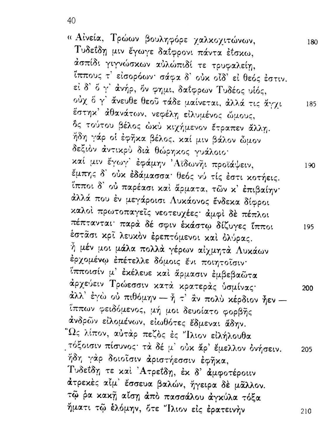 Σχολικό εγχειρίδιο Αρχαίων Ελληνικών Β΄ Λυκείου που περιλαμβάνει εισαγωγή στη Ιλιάδα του Ομήρου, αποσπάσματα από τις Ραψωδίες Α, Γ, Ε, Ζ, Ι, Ω, ερμηνευτικές σημειώσεις και παράρτημα εικόνων και χαρτών.