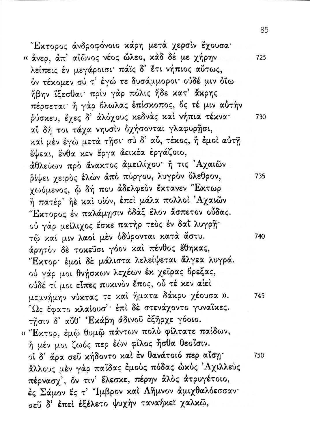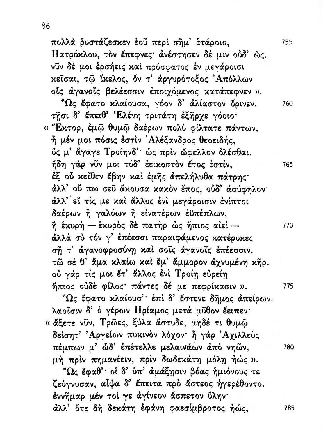Σχολικό εγχειρίδιο Αρχαίων Ελληνικών που περιέχει εισαγωγικό σημείωμα σχετικά με το περιεχόμενο της Ιλιάδας του Ομήρου και την εποχή στην οποία αναφέρεται ο μύθος. Σε πρωτότυπο κείμενο περιλαμβάνονται αποσπάσματα από τις Ραψωδίες της Ιλιάδας Α, Γ, Ε, Ζ, Ι, Ω και παρεμβάλλονται συνδετικές περιλήψεις μεταξύ των ραψωδιών στη δημοτική γλώσσα. Τέλος, περιέχονται ερμηνευτικές σημειώσεις (σημασιολογικές, γραμματικές, πραγματολογικές) και παράρτημα εικόνων και χαρτών.
