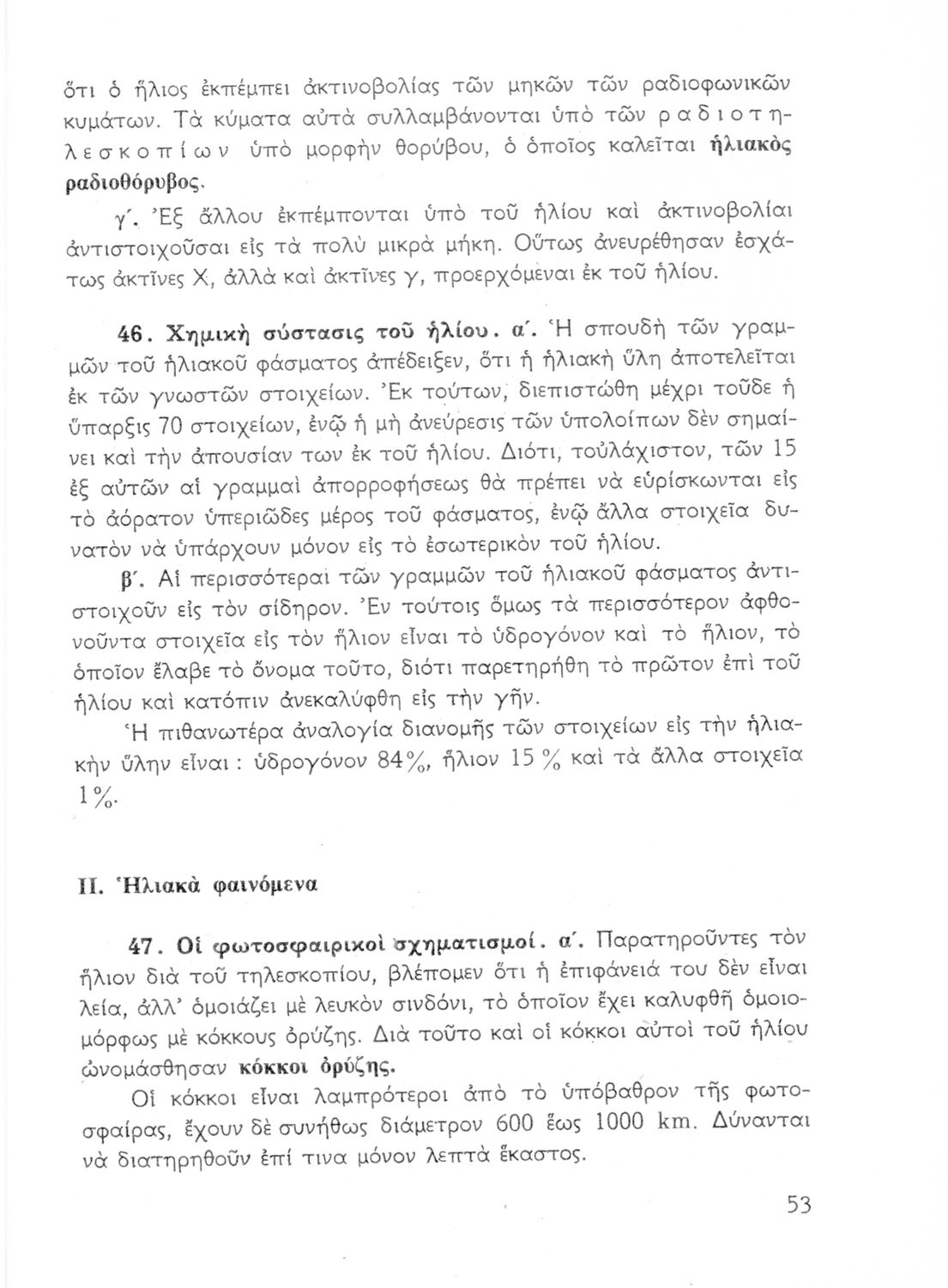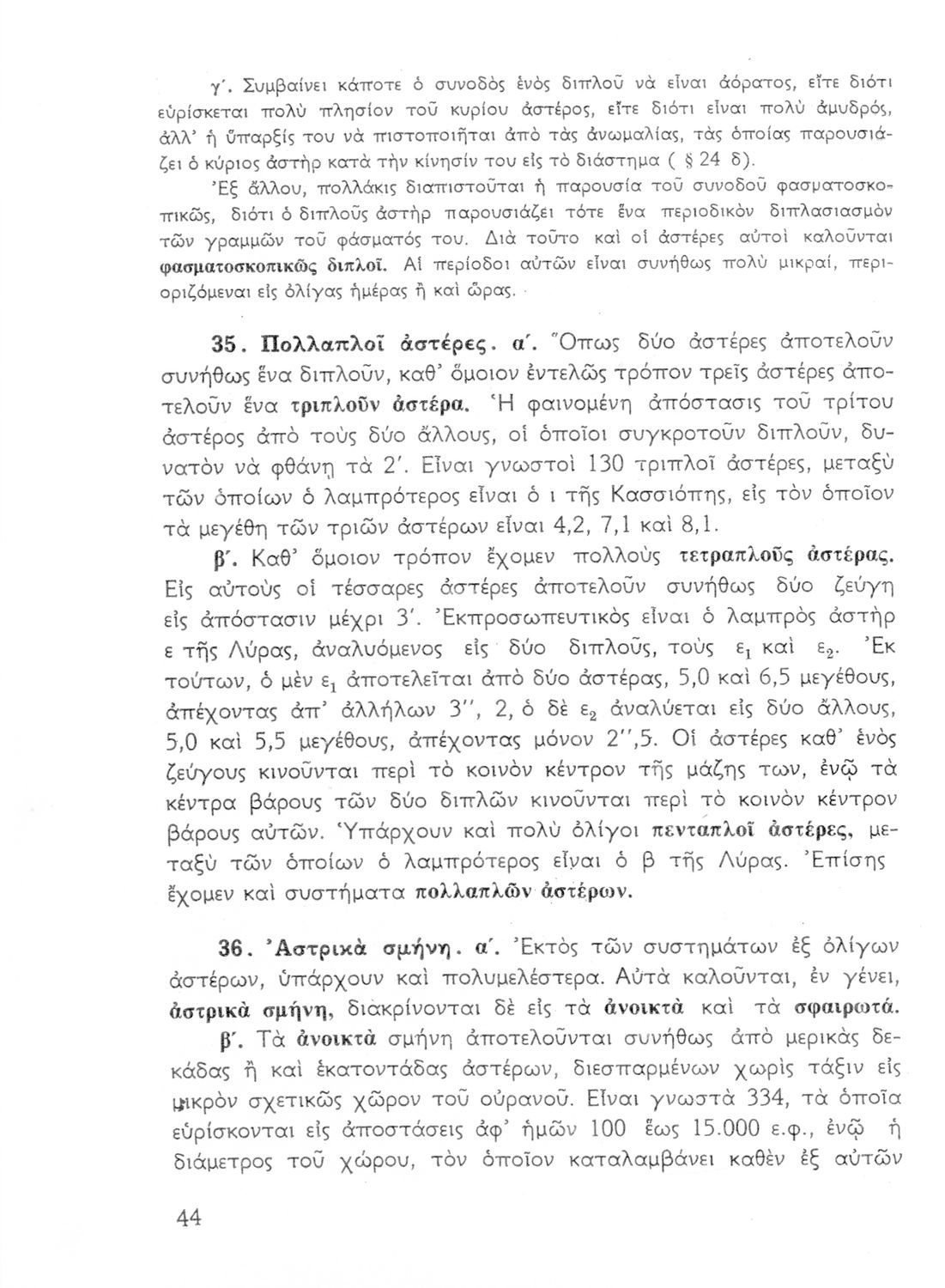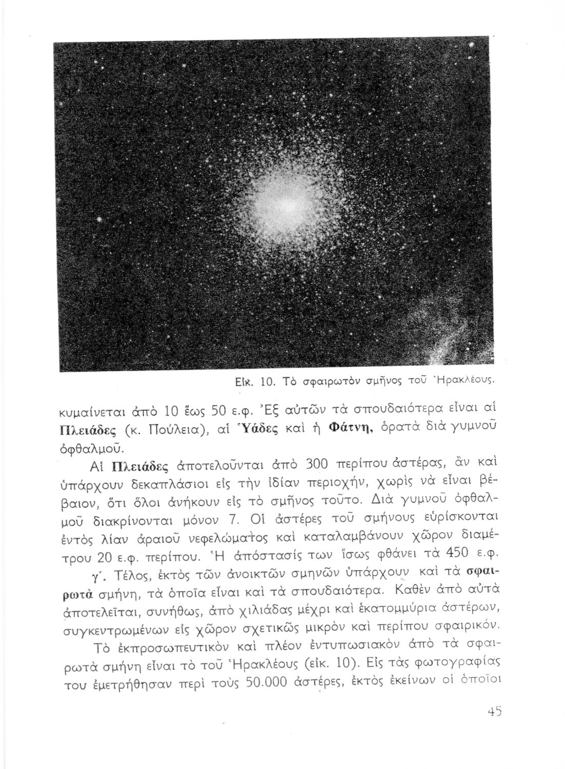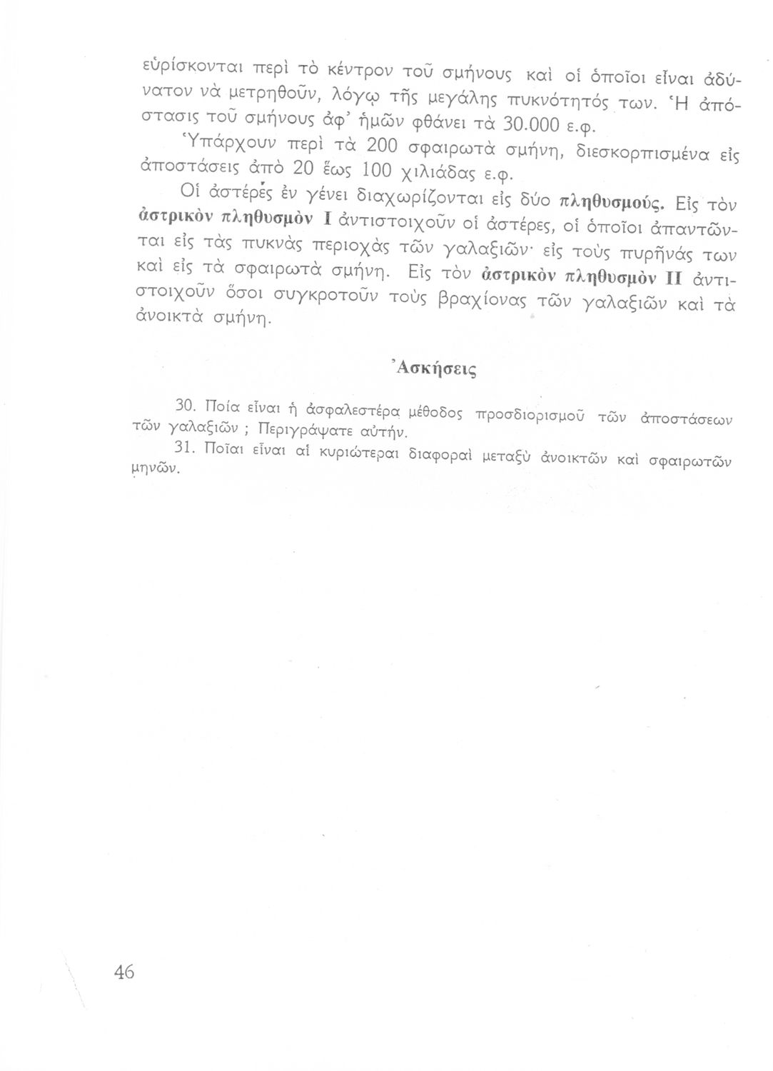 Σχολικό εγχειρίδιο Κοσμογραφίας ΣΤ΄ Γυμνασίου που πραγματεύεται τη μορφή, σύσταση, μέγεθος και κίνηση των γαλαξιών και των πλανητών. Περιέχει στοιχεία αστροναυτικής και πίνακα με 88 αστερισμούς, τα διεθνή ονόματα και τα σύμβολά τους.