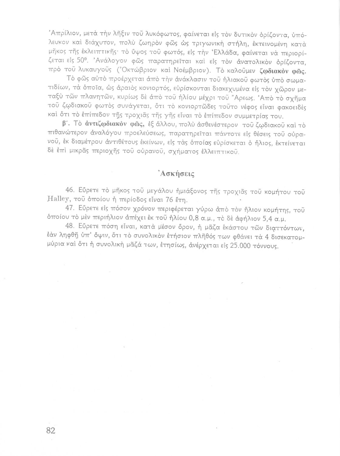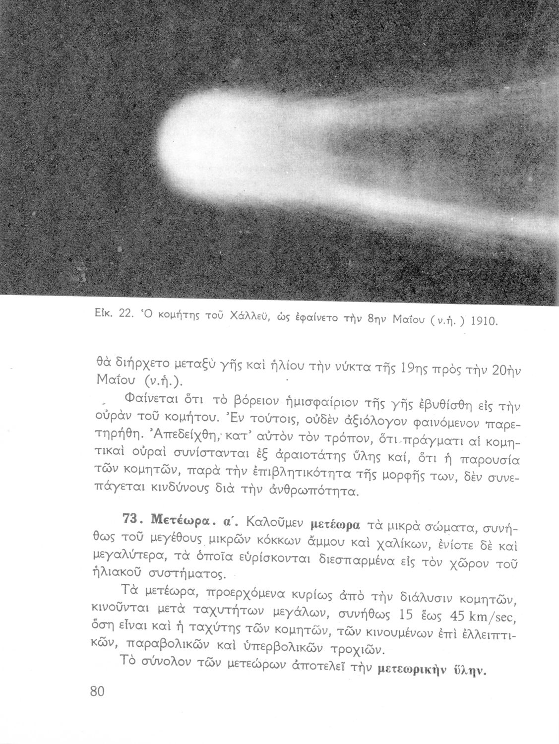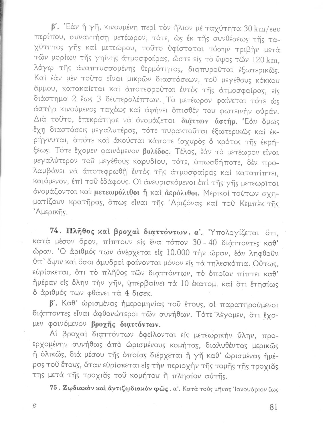 Σχολικό εγχειρίδιο Κοσμογραφίας ΣΤ΄ Γυμνασίου που πραγματεύεται τη μορφή, σύσταση, μέγεθος και κίνηση των γαλαξιών και των πλανητών. Περιέχει στοιχεία αστροναυτικής και πίνακα με 88 αστερισμούς, τα διεθνή ονόματα και τα σύμβολά τους.