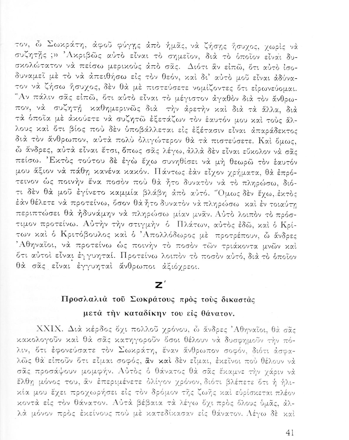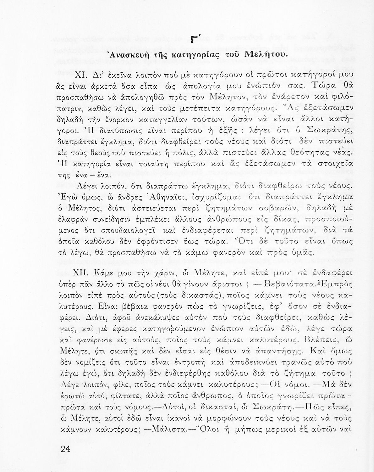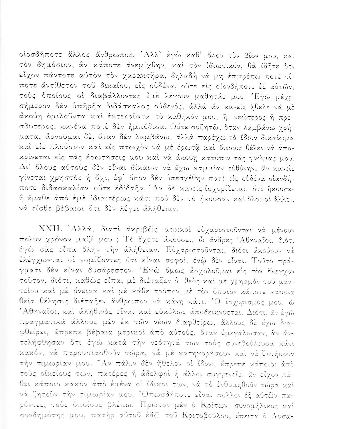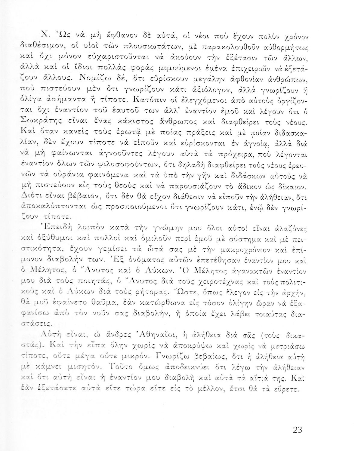 Σχολικό εγχειρίδιο Αρχαίων Ελληνικών για την Ε' Γυμνασίου. Το βιβλίο περιλαμβάνει εισαγωγή με το βίο του Πλάτωνα ενώ το κείμενο είναι μετάφραση από το πρωτότυπο.