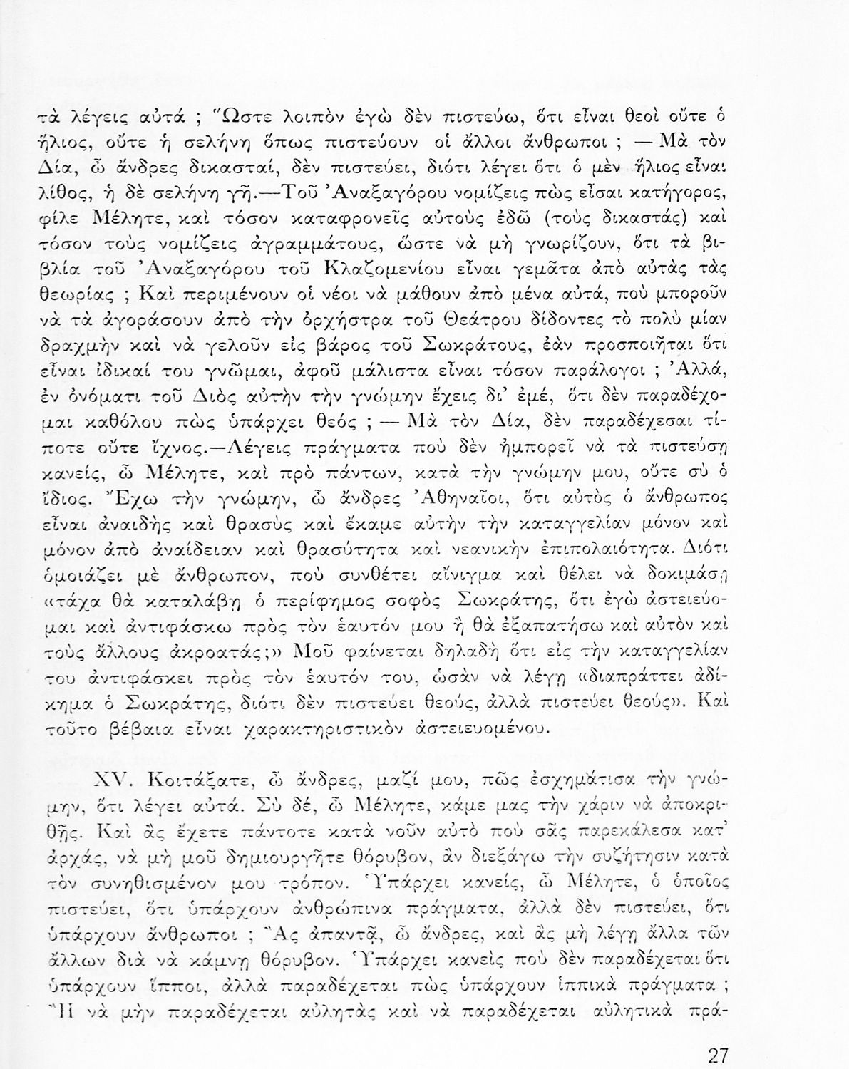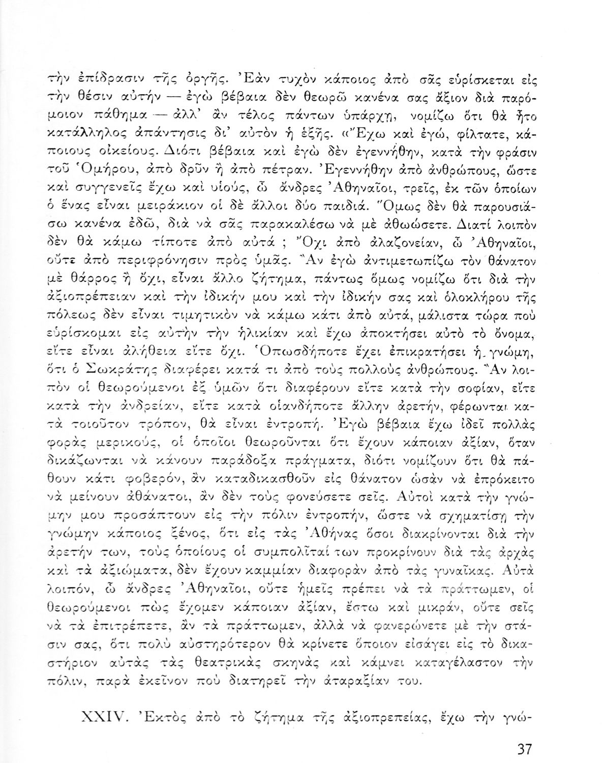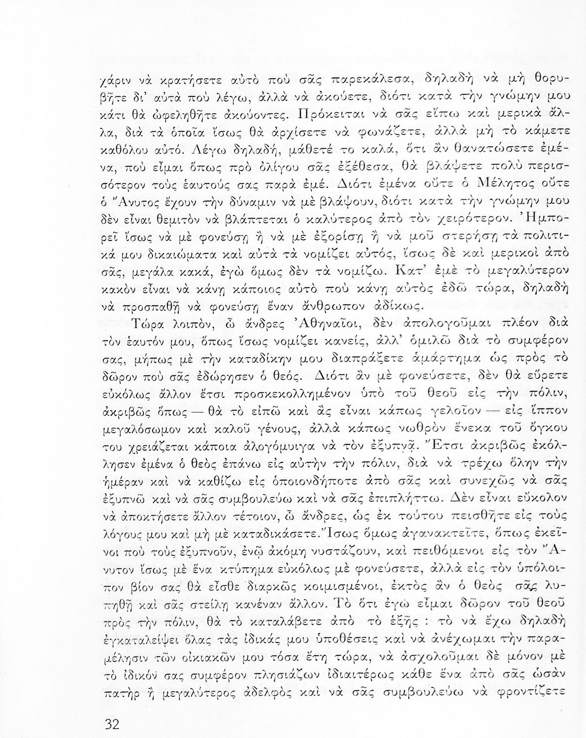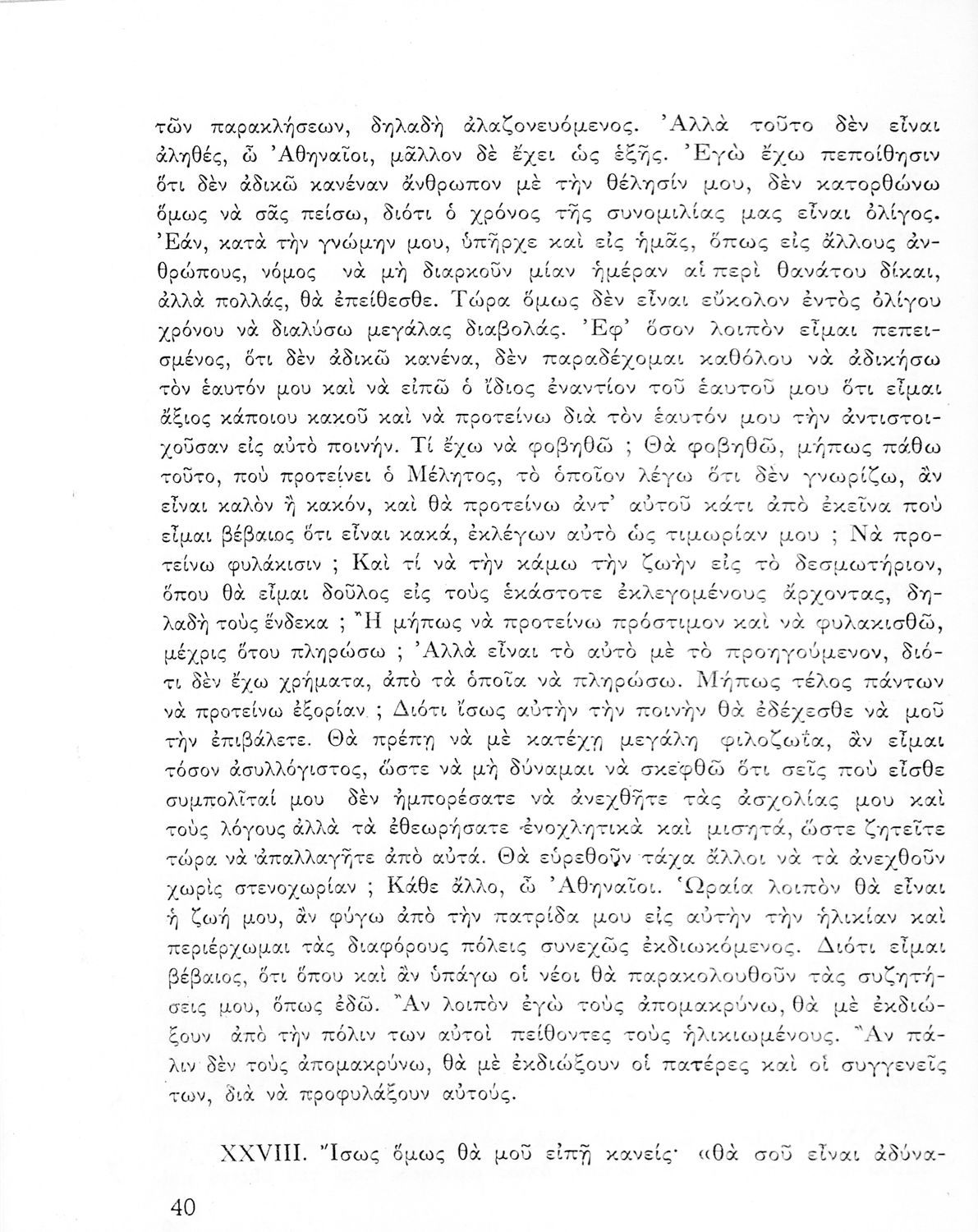Σχολικό εγχειρίδιο Αρχαίων Ελληνικών για την Ε' Γυμνασίου. Το βιβλίο περιλαμβάνει εισαγωγή με το βίο του Πλάτωνα ενώ το κείμενο είναι μετάφραση από το πρωτότυπο.