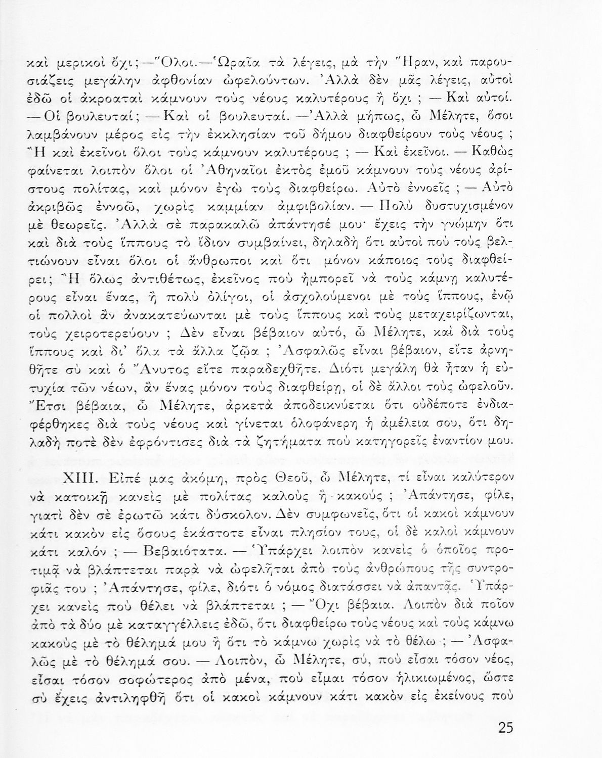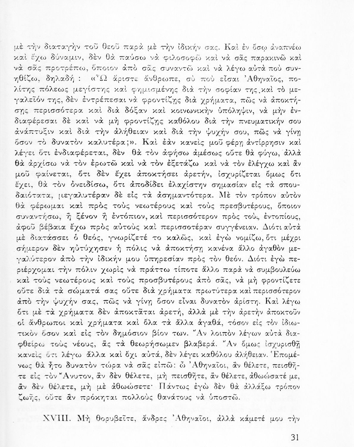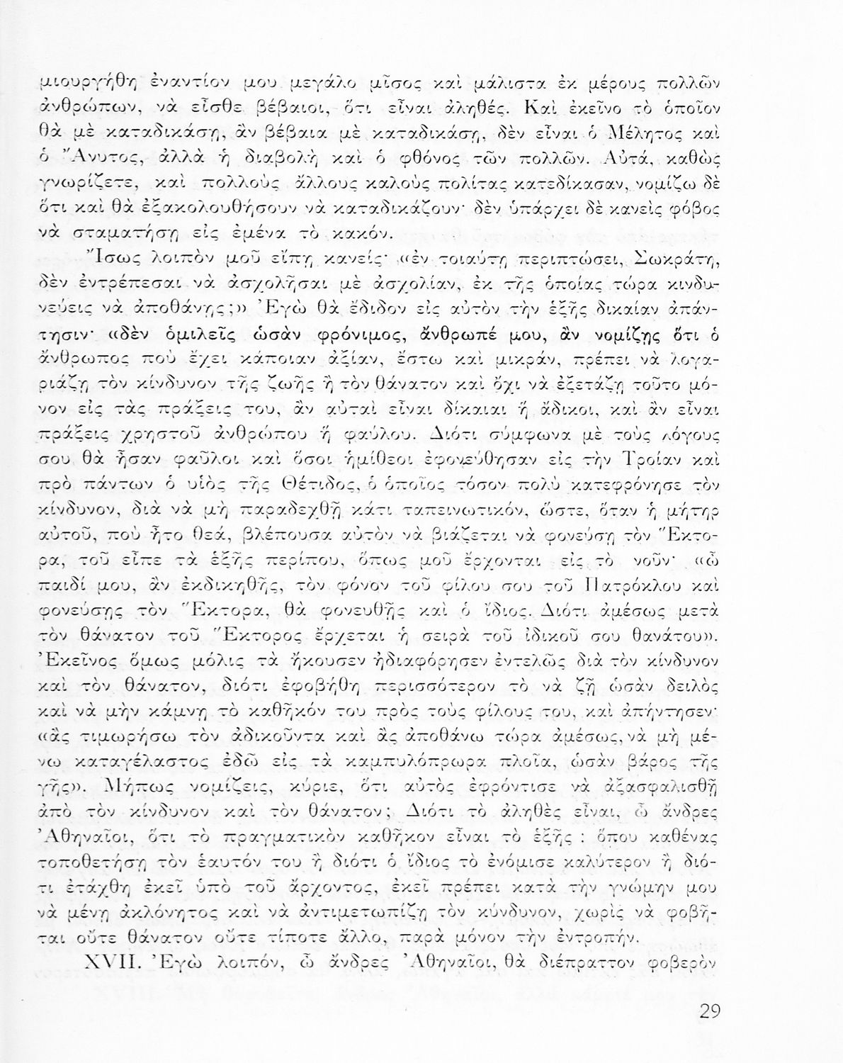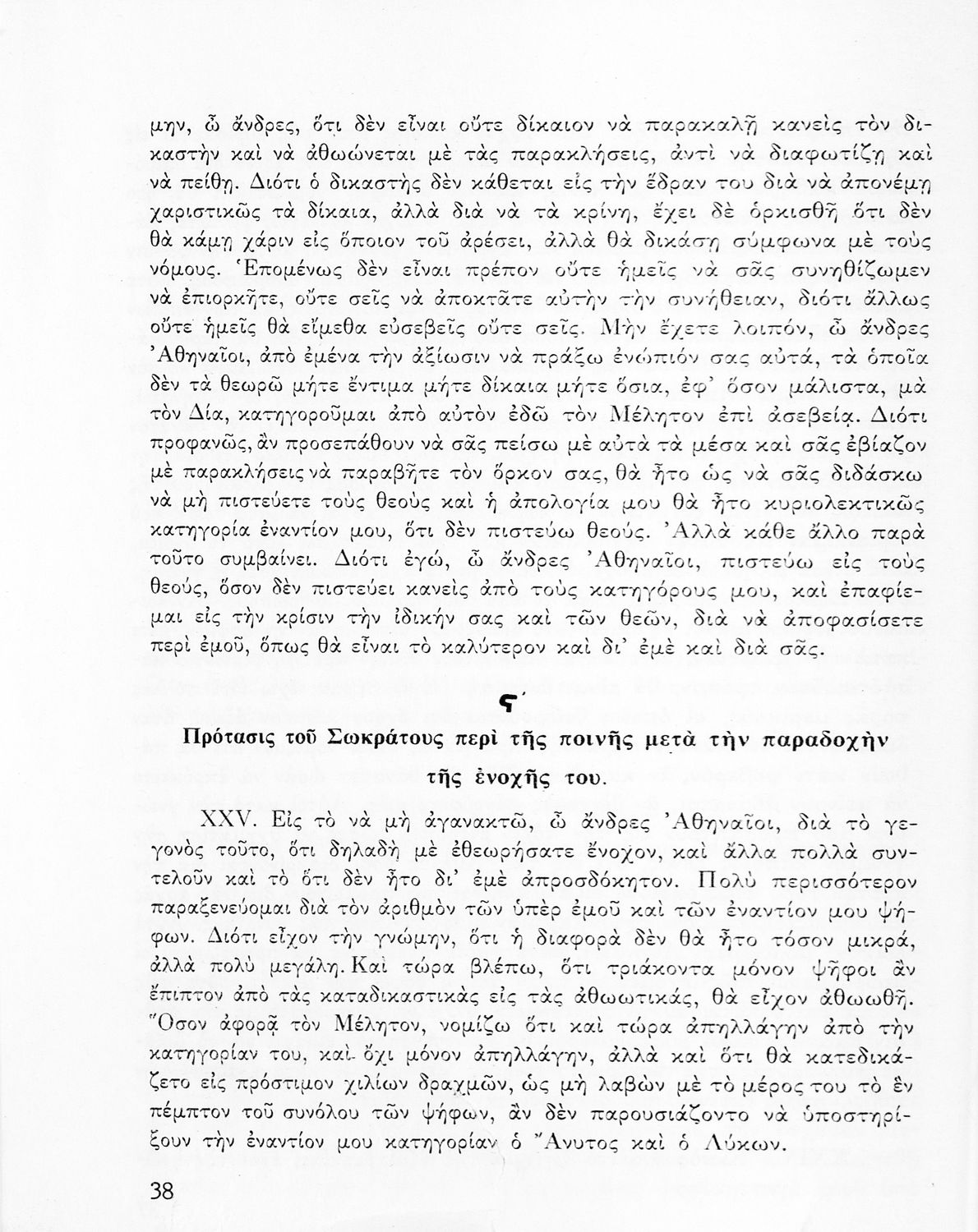 Σχολικό εγχειρίδιο Αρχαίων Ελληνικών για την Ε' Γυμνασίου. Το βιβλίο περιλαμβάνει εισαγωγή με το βίο του Πλάτωνα ενώ το κείμενο είναι μετάφραση από το πρωτότυπο.