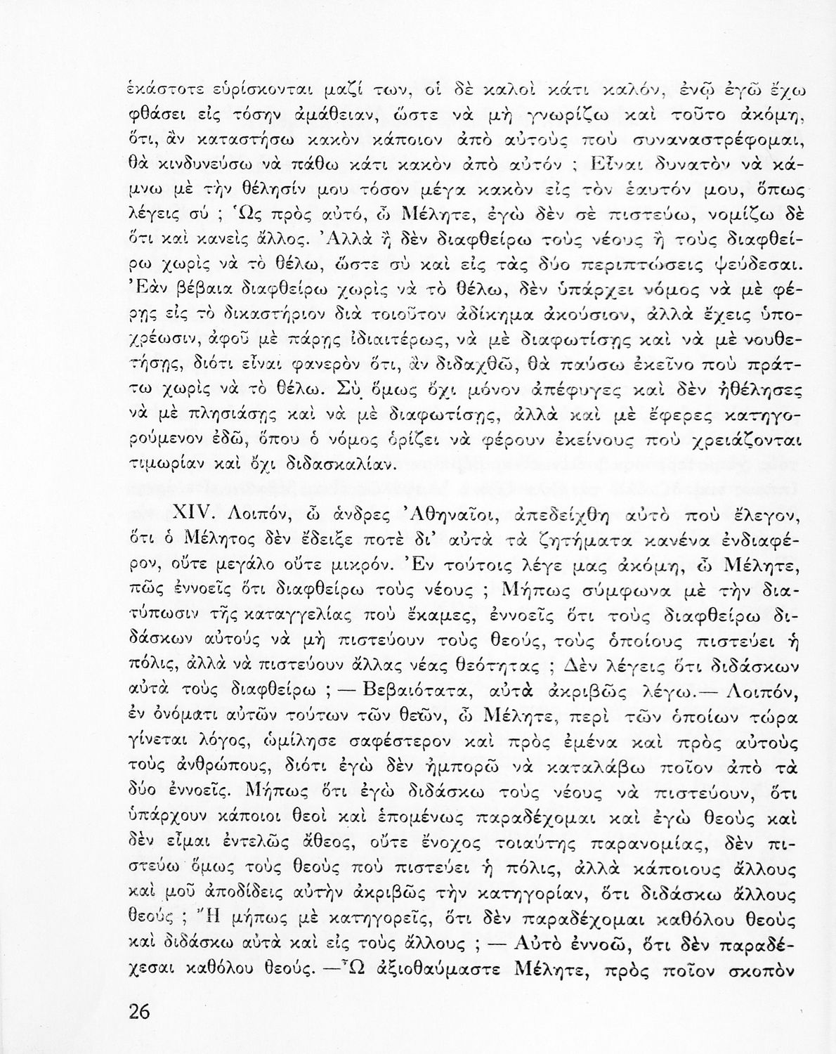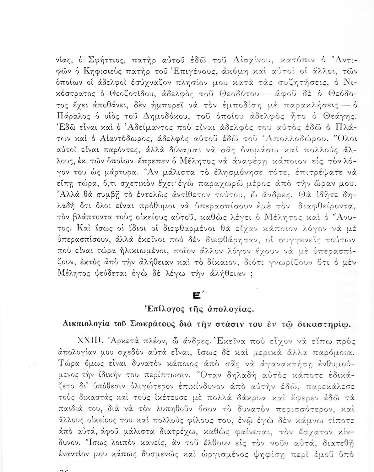 Βαθμίδα εκπαίδευσης: Δευτεροβάθμια Τάξη: Ε' Γυμνασίου Μάθημα: Αρχαία Ελληνικά Γλώσσα: Καθαρεύουσα Παρουσίαση περιεχομένου: Σχολικό εγχειρίδιο Αρχαίων Ελληνικών για την Ε' Γυμνασίου. Το βιβλίο περιλαμβάνει εισαγωγή με το βίο του Πλάτωνα ενώ το κείμενο είναι μετάφραση από το πρωτότυπο. |