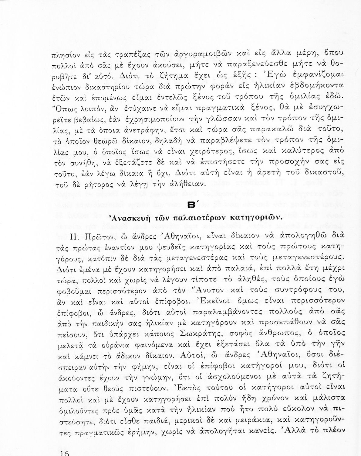 Βαθμίδα εκπαίδευσης: Δευτεροβάθμια Τάξη: Ε' Γυμνασίου Μάθημα: Αρχαία Ελληνικά Γλώσσα: Καθαρεύουσα Παρουσίαση περιεχομένου: Σχολικό εγχειρίδιο Αρχαίων Ελληνικών για την Ε' Γυμνασίου. Το βιβλίο περιλαμβάνει εισαγωγή με το βίο του Πλάτωνα ενώ το κείμενο είναι μετάφραση από το πρωτότυπο. |