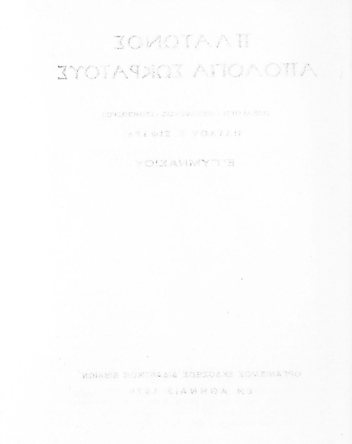 LDR 01115 2200217 4500 035 ## _a01-19227a.1 040 ## _aΙνστιτούτο Εκπαιδευτικής Πολιτικής 041 ## _ael 100 ## _aΠλάτων _aΠαύλος Ξιφαράς (μετάφραση) 110 ## _a19227a.1 245 0# _aΠλάτωνος, Απολογία Σωκράτους, Ε΄ Γυμνασίου 250 ## _a6η Έκδοση 260 ## _aΑθήνα _bΟργανισμός Εκδόσεως Διδακτικών Βιβλίων _c1974 300 ## _a50 _c20 520 ## _aΣχολικό εγχειρίδιο Αρχαίων Ελληνικών για την Ε' Γυμνασίου. Το βιβλίο περιλαμβάνει εισαγωγή με το βίο του Πλάτωνα ενώ το κείμενο είναι μετάφραση από το πρωτότυπο. 521 ## _aΕ' Γυμνασίου 522 ## _aΕλλάδα 546 ## _aΚαθαρεύουσα 563 ## _aΜαλακό Εξώφυλλο 583 ## _a2384/28-2-1974 _c1974 650 #4 _aΑπολογία _aΔιάλογος _aΠλάτωνας _aΣωκράτης