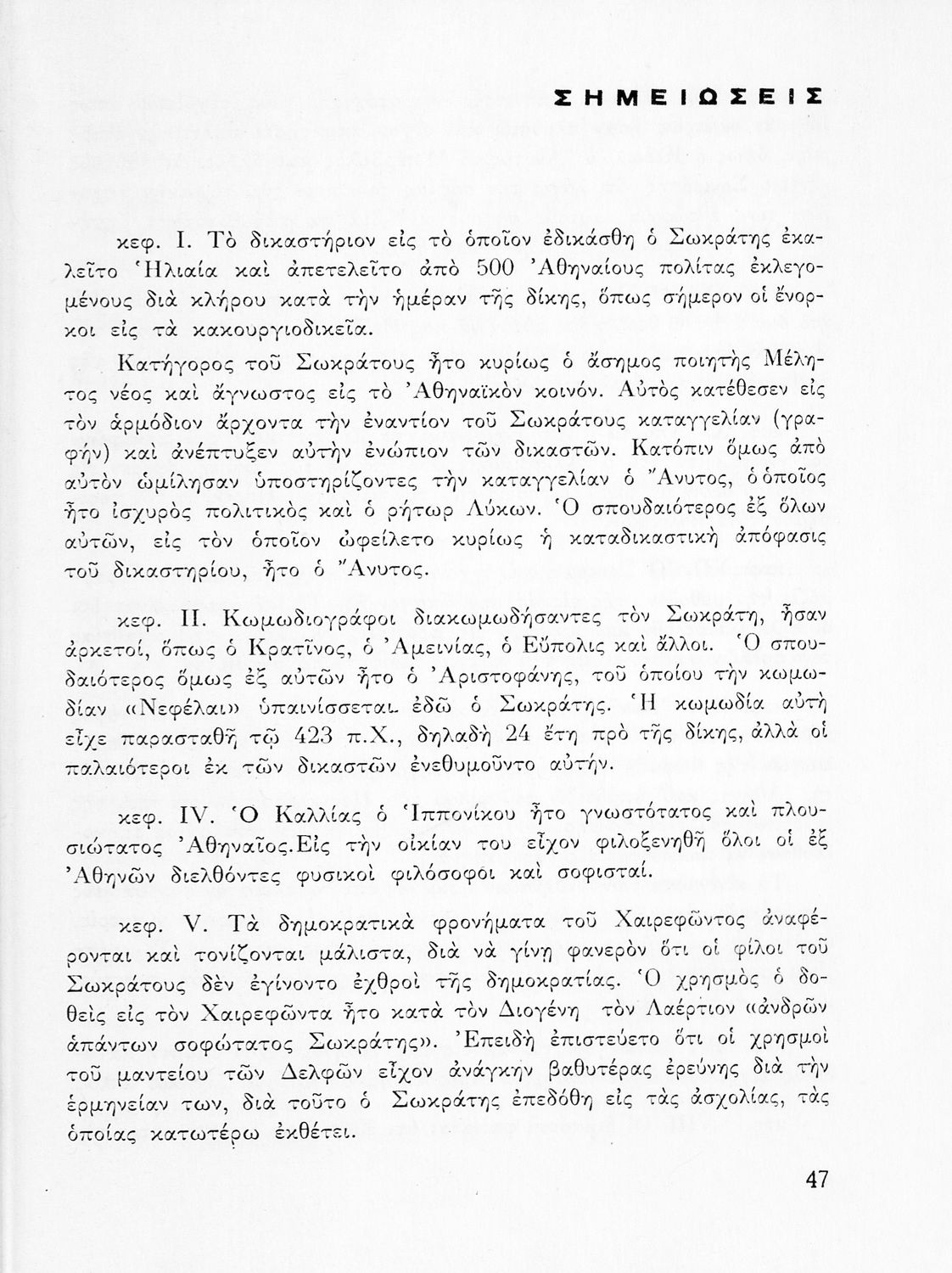 Πλάτωνος Απολογία Σωκράτους, Ε΄ Γυμνασίου