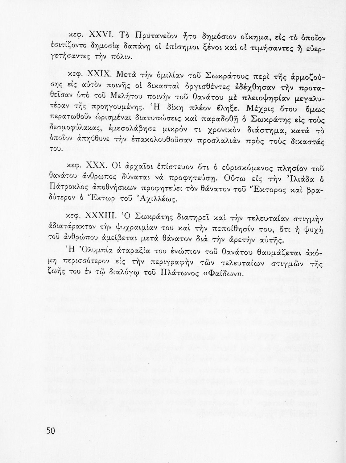 Σχολικό εγχειρίδιο Αρχαίων Ελληνικών για την Ε' Γυμνασίου. Βιβλίο που περιλαμβάνει εισαγωγή με το βίο του Πλάτωνα ενώ το κείμενο είναι μετάφραση. Το βιβλίο κοσμείται από το σύμβολο της επταετίας.