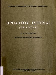 Σχολικό εγχειρίδιο Αρχαίων Ελληνικών Α΄ Γυμνασίου που περιλαμβάνει αποσπάσματα από την Ιστορία του Ηρόδοτου σε μετάφραση, εισαγωγή στη ζωή, το έργο και τη διάλεκτό του και ερμηνευτικά και πραγματολογικά σχόλια.