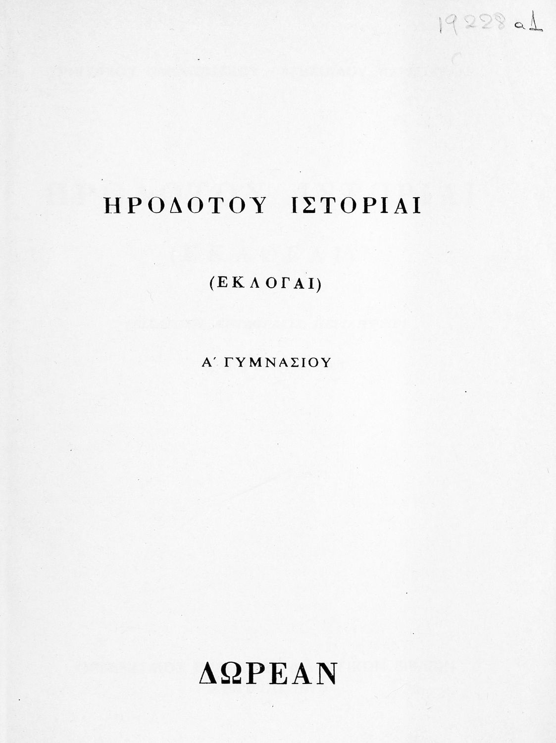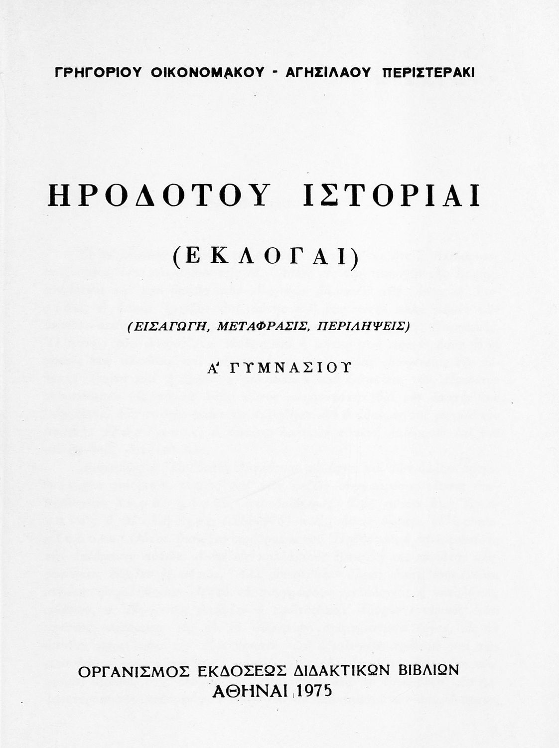 Τίτλος: Ηροδότου Ιστορίαι (Εκλογαί), Α΄ Γυμνασίου