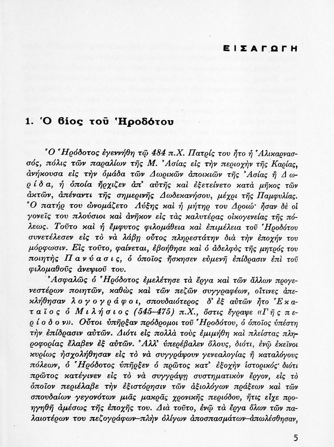 Σχολικό εγχειρίδιο Αρχαίων Ελληνικών Α΄ Γυμνασίου που περιλαμβάνει εισαγωγή στη ζωή και το έργο του Ηρόδοτου, και αποσπάσματα από τα 9 βιβλία της Ιστορίας του σε μετάφραση.