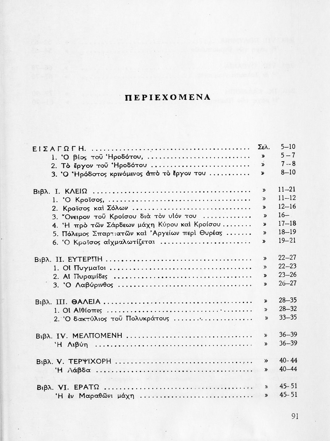 Σχολικό εγχειρίδιο Αρχαίων Ελληνικών Α΄ Γυμνασίου που περιλαμβάνει εισαγωγή στη ζωή και το έργο του Ηρόδοτου, και αποσπάσματα από τα 9 βιβλία της Ιστορίας του σε μετάφραση.