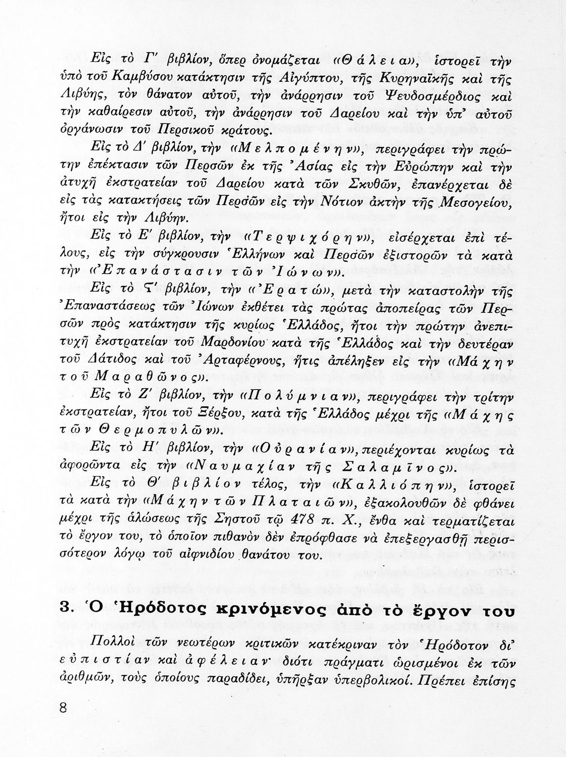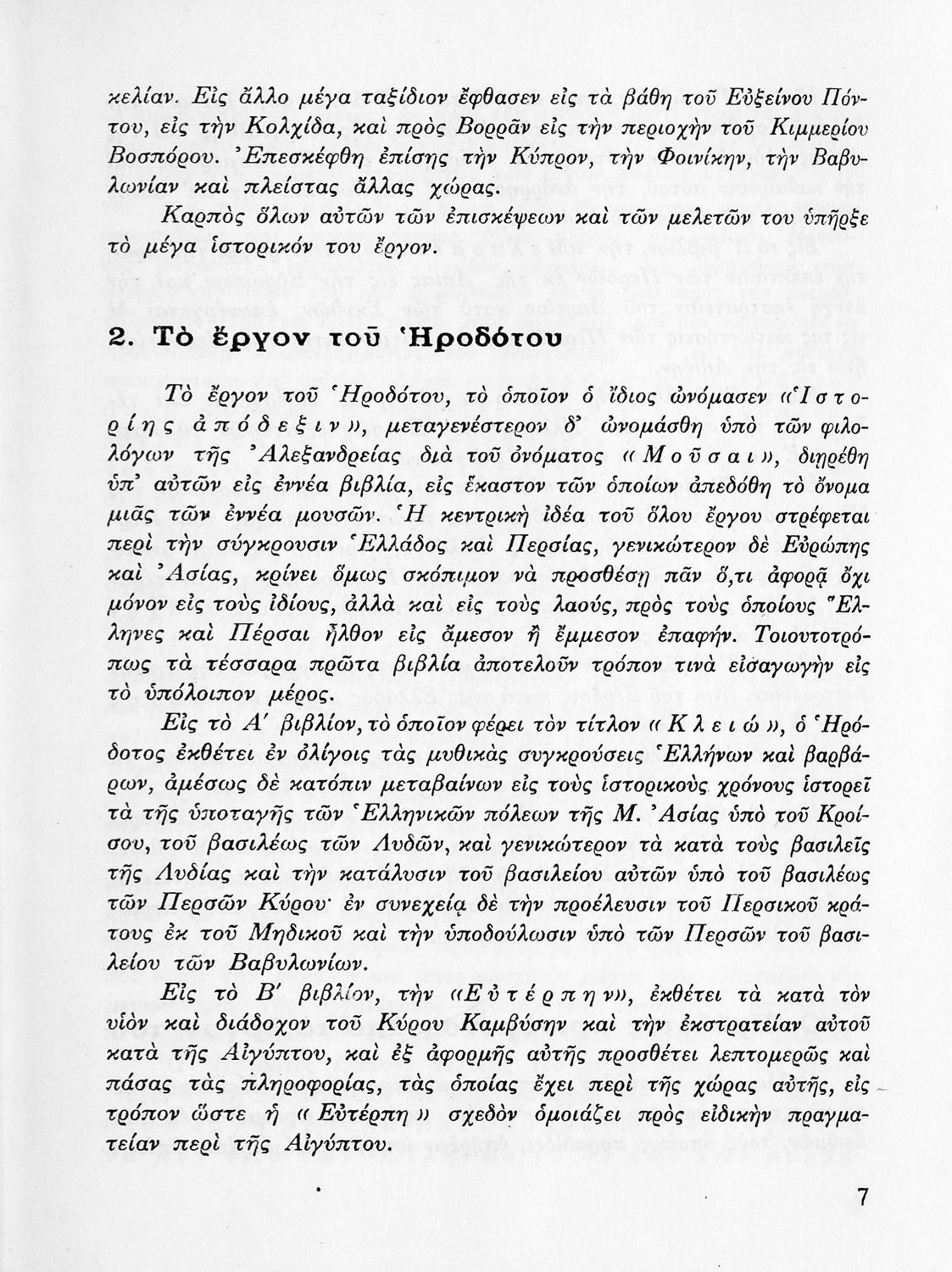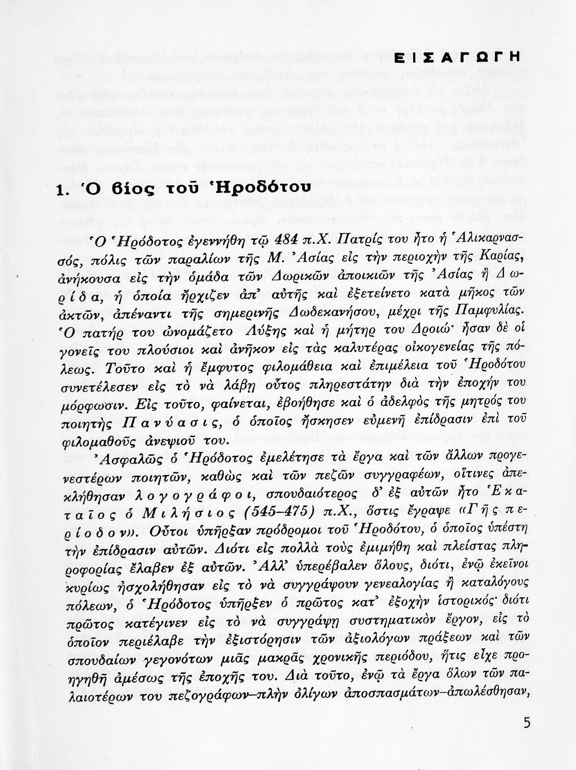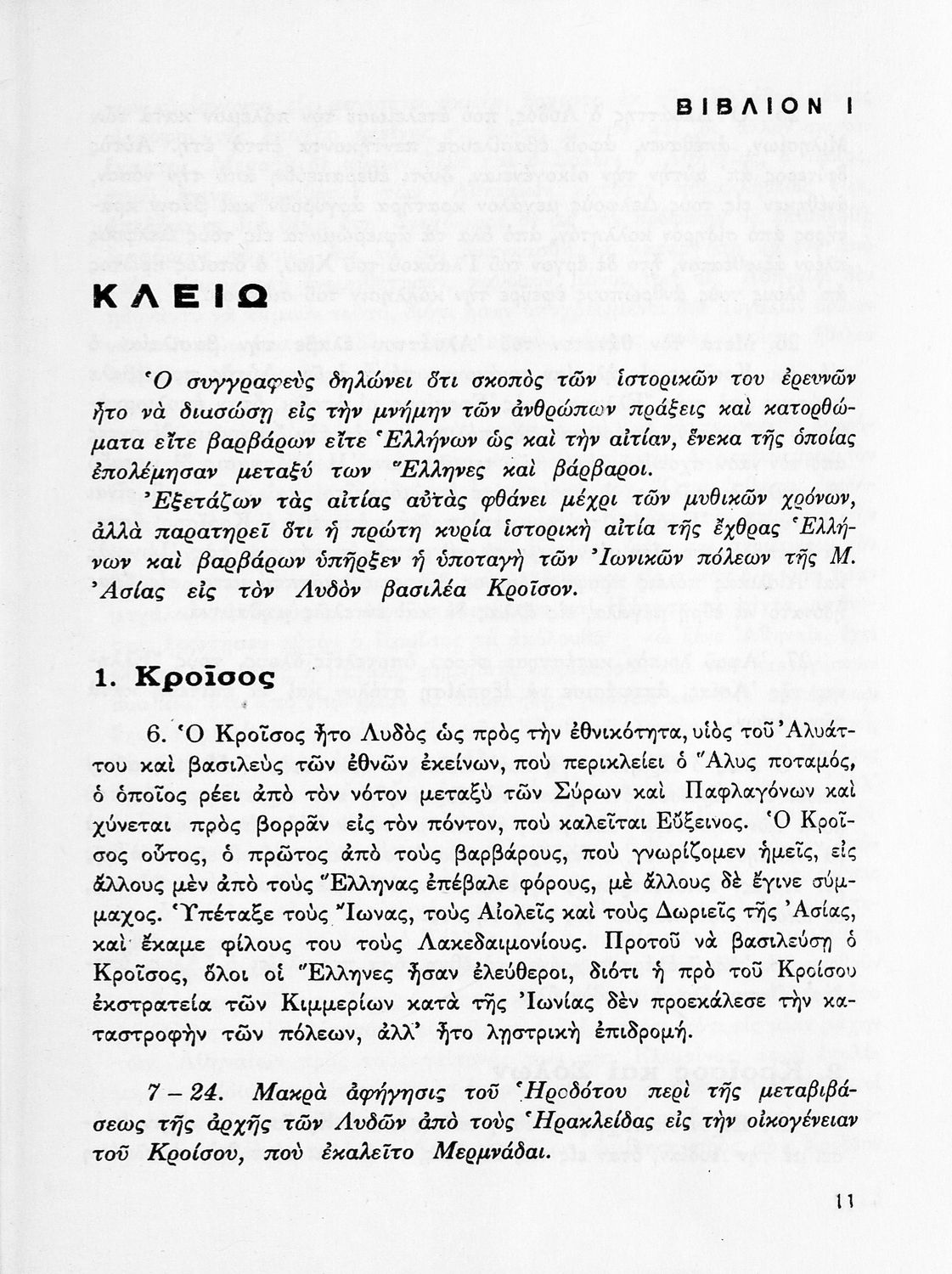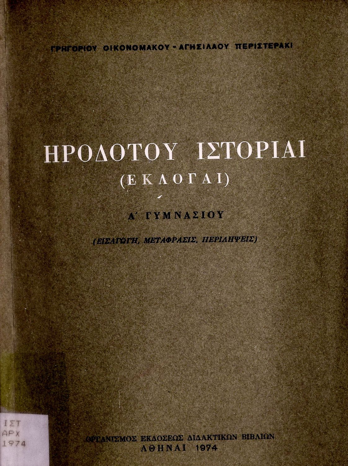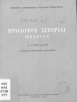 Σχολικό εγχειρίδιο Αρχαίων Ελληνικών Α΄ Γυμνασίου που περιλαμβάνει εισαγωγή στη ζωή και το έργο του Ηρόδοτου, και αποσπάσματα από τα 9 βιβλία της Ιστορίας του σε μετάφραση.