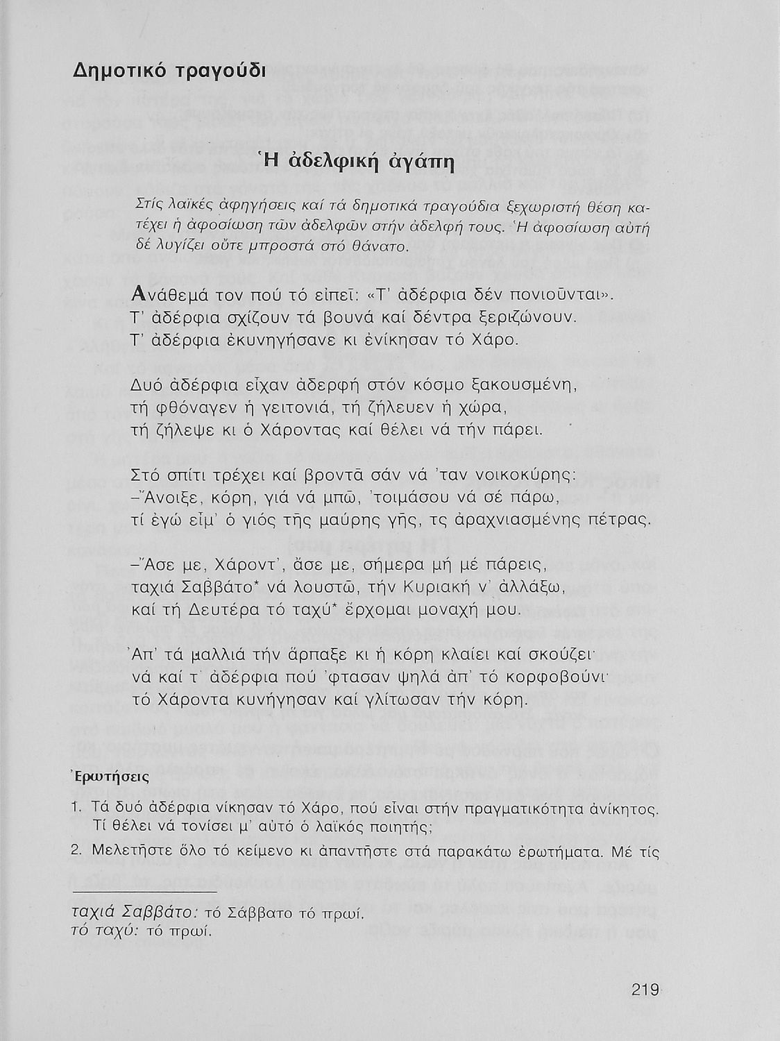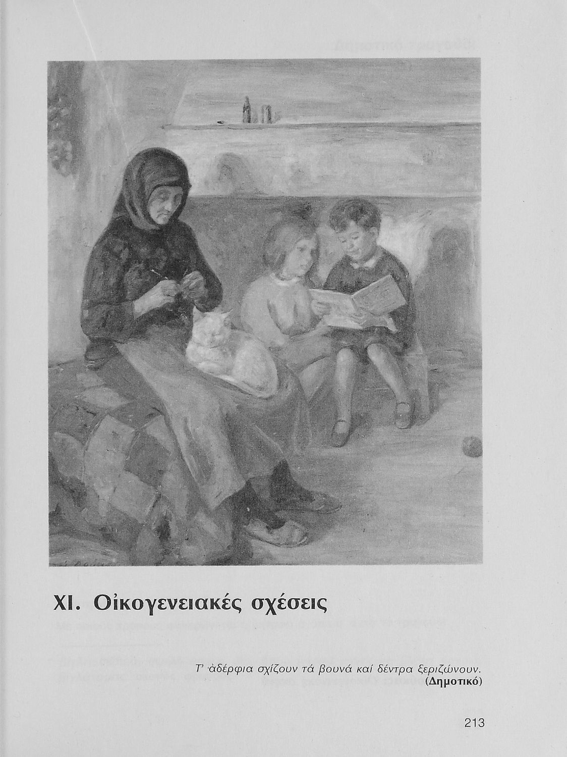 Σχολικό εγχειρίδιο Νέων Ελληνικών Α΄ Γυμνασίου που περιλαμβάνει δοκίμια, πεζά και ποιήματα Ελλήνων συγγραφέων και δημοτικά τραγούδια εμπνευσμένα από τη θρησκευτική, εθνική και κοινωνική ζωή, τη "δοκιμασία της ...