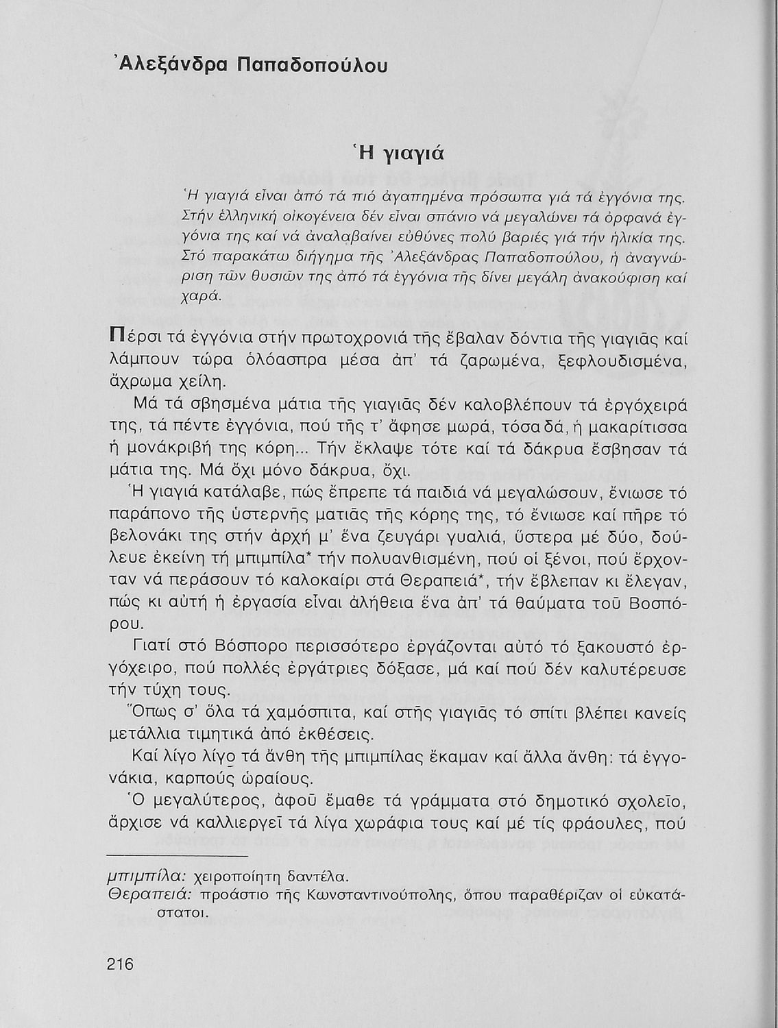 Σχολικό εγχειρίδιο Νέων Ελληνικών Α΄ Λυκείου που περιλαμβάνει πεζά, ποιήματα, δοκίμια και θεατρικά έργα σύγχρονων Ελλήνων και κλασσικών ξένων συγγραφέων, ερωτήσεις και βιογραφικά σημειώματα