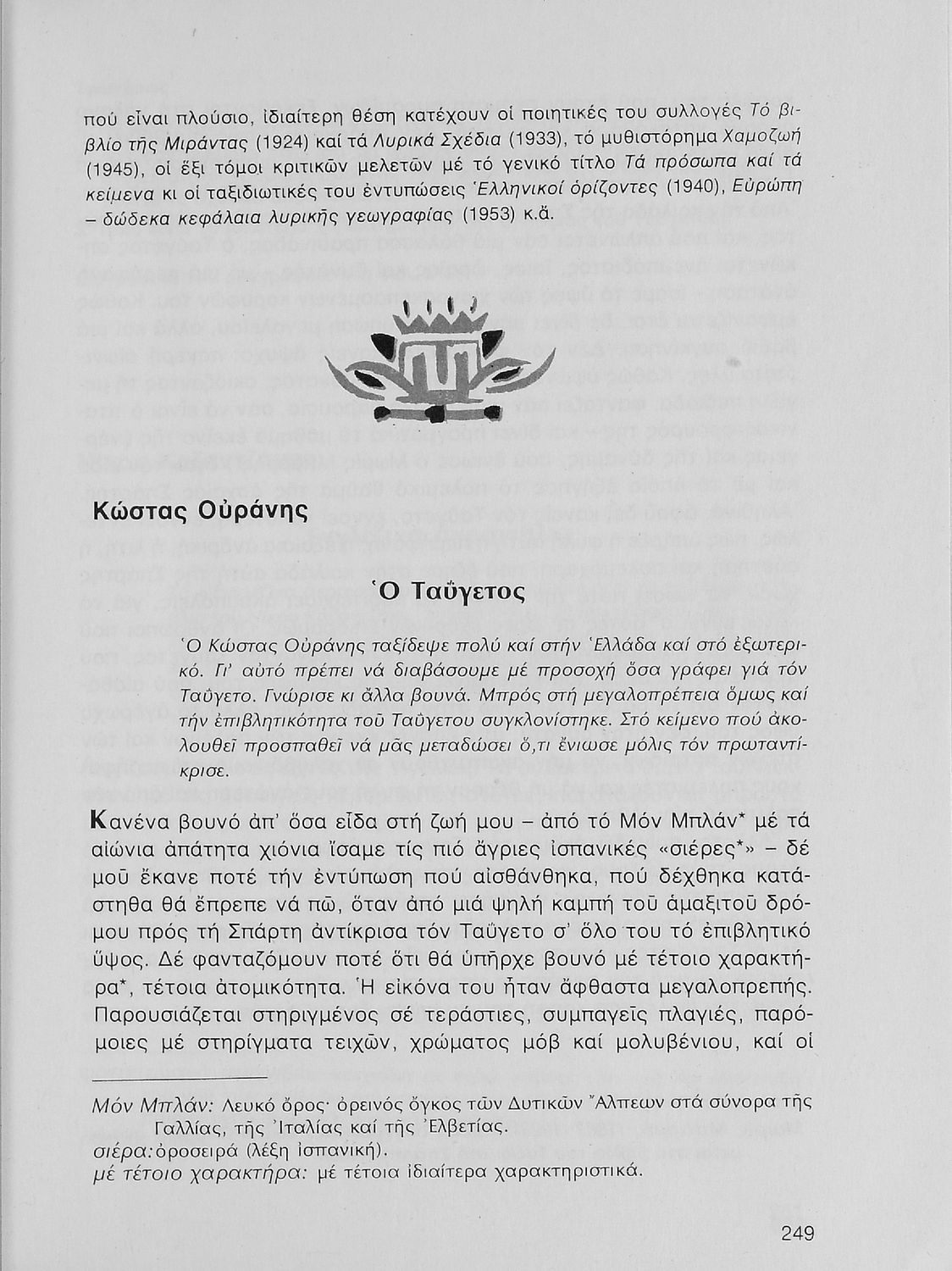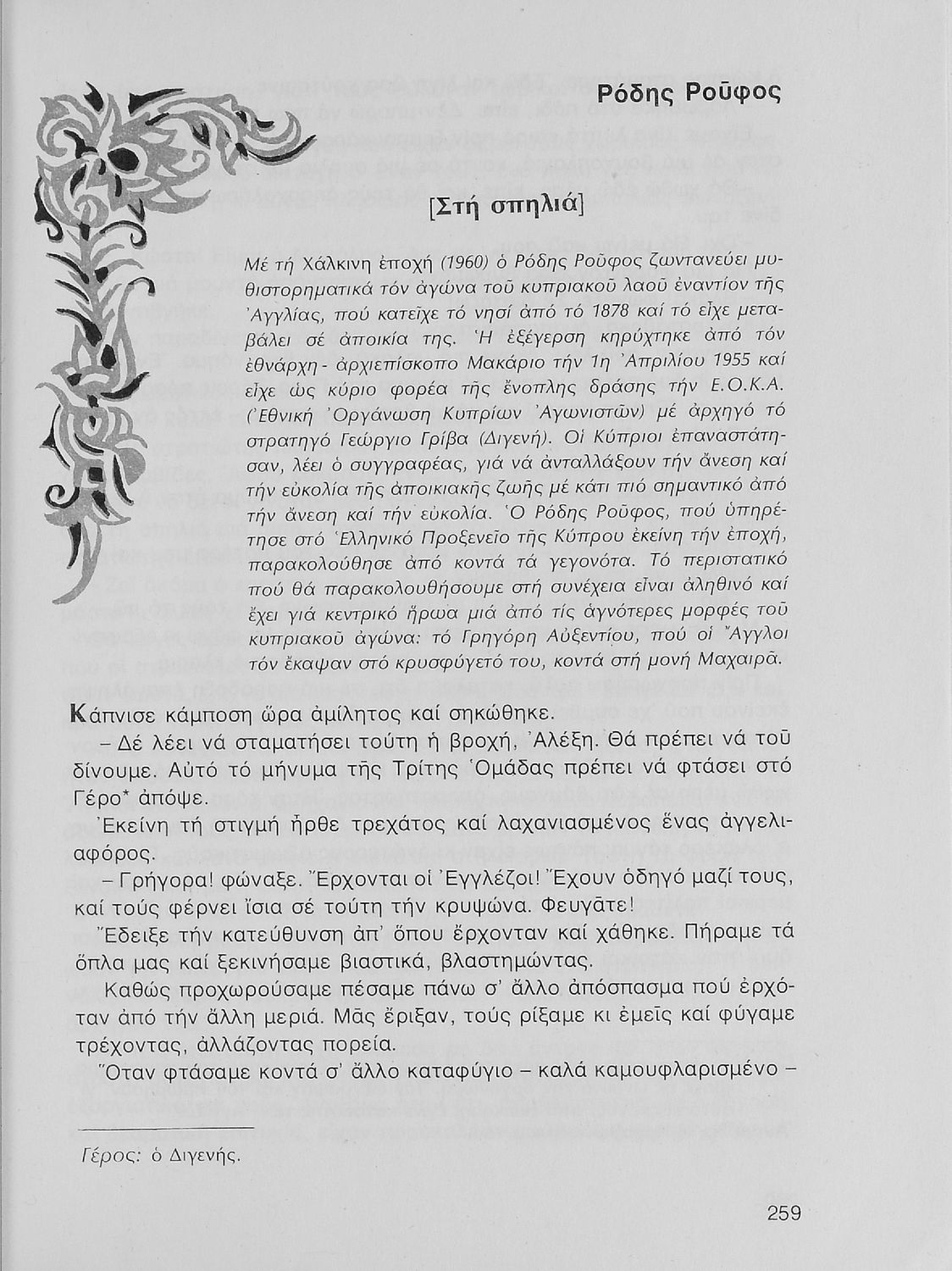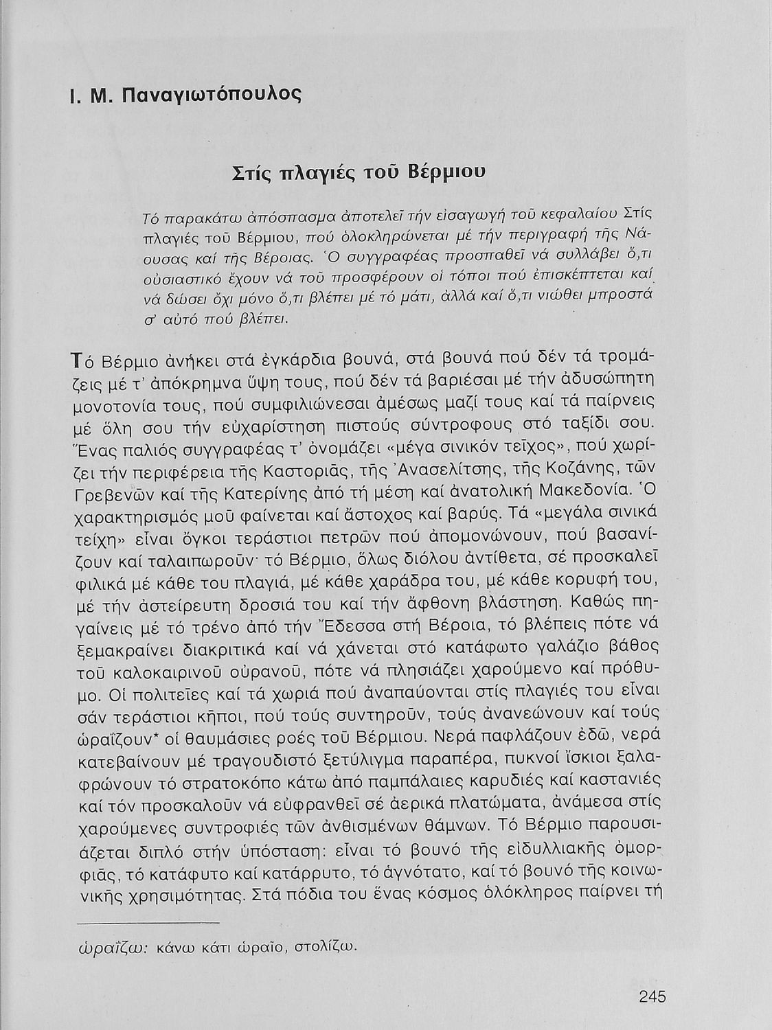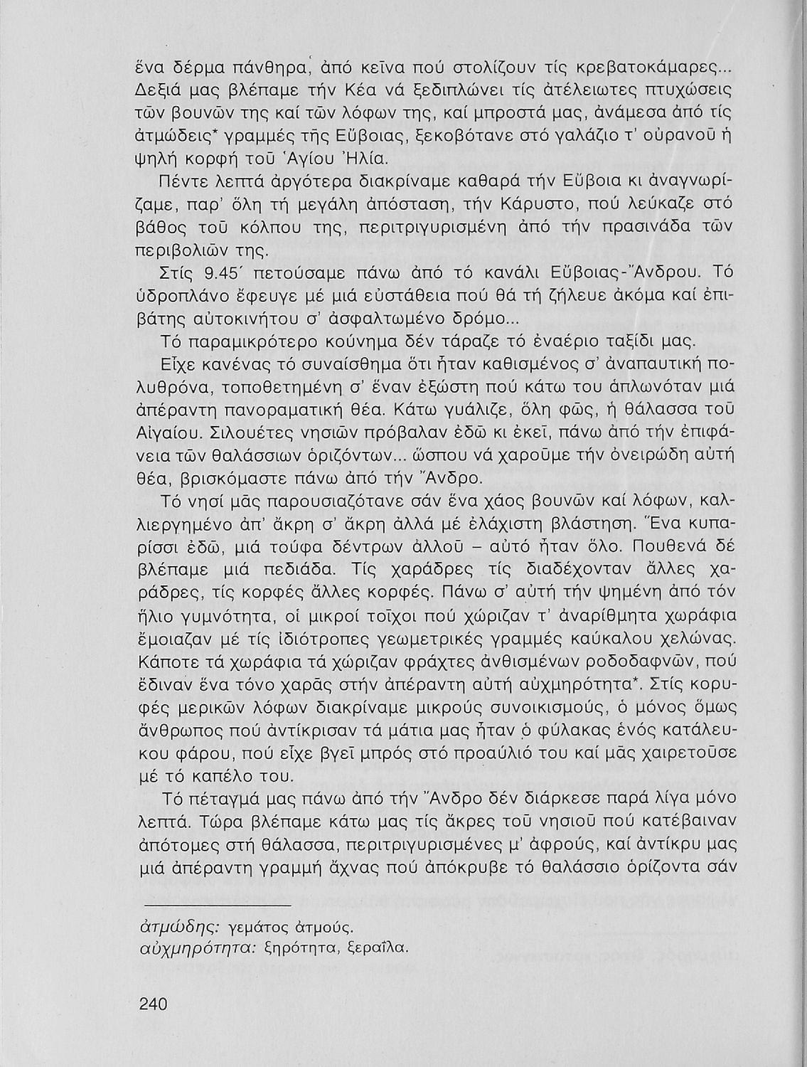 Σχολικό εγχειρίδιο Νέων Ελληνικών Α΄ Γυμνασίου που περιλαμβάνει δοκίμια, πεζά και ποιήματα Ελλήνων συγγραφέων και δημοτικά τραγούδια εμπνευσμένα από τη θρησκευτική, εθνική και κοινωνική ζωή, τη "δοκιμασία της Κύπρου", και την ελληνική φύση. Περιέχει και έργα ευρωπαίων συγγραφέων.