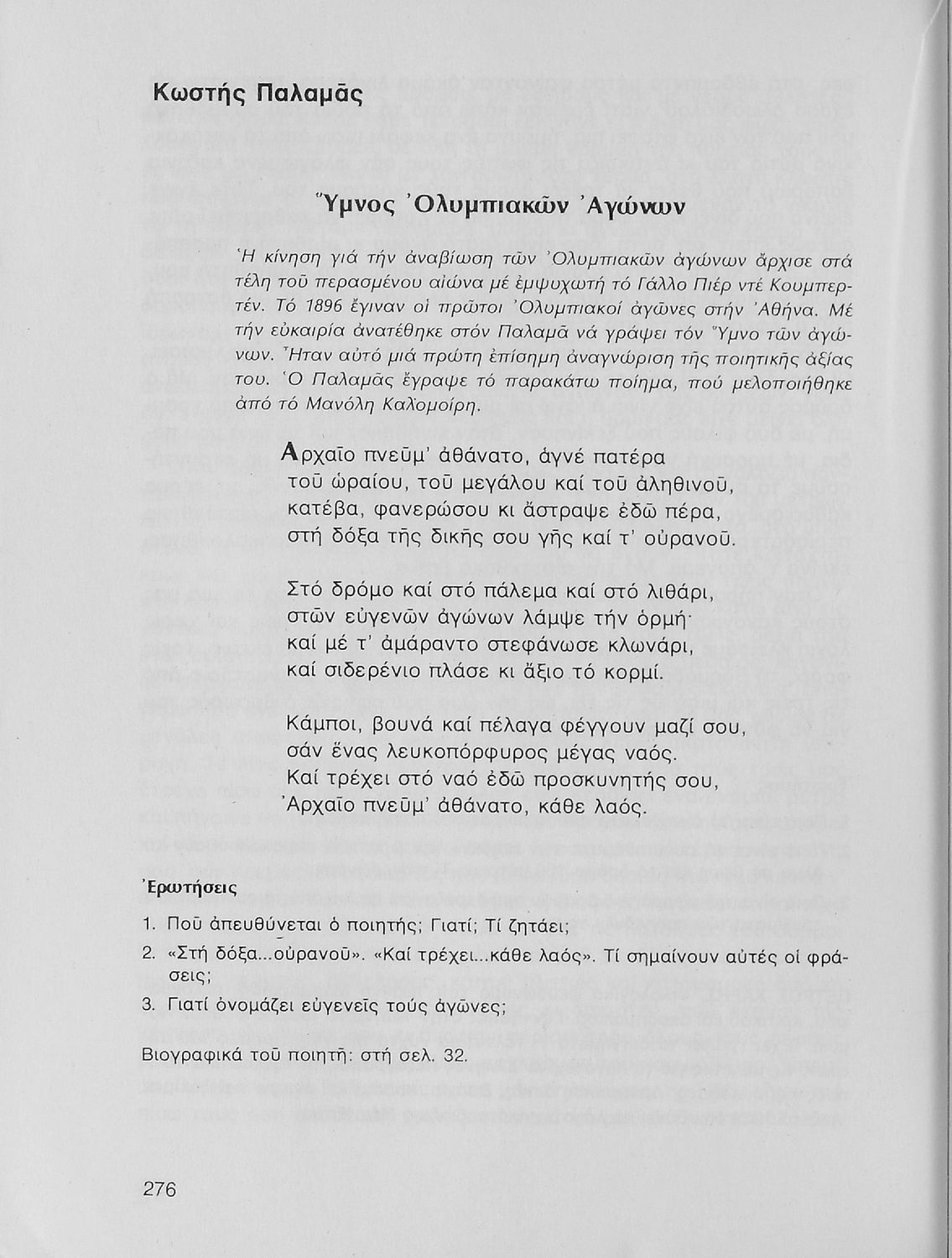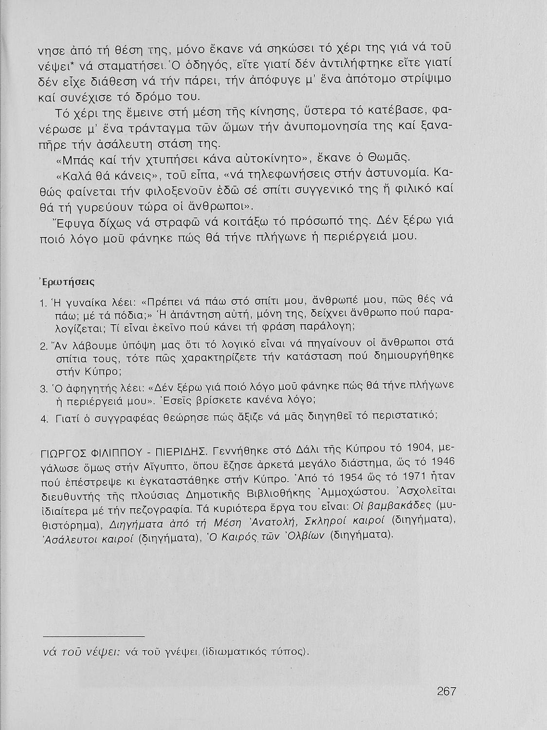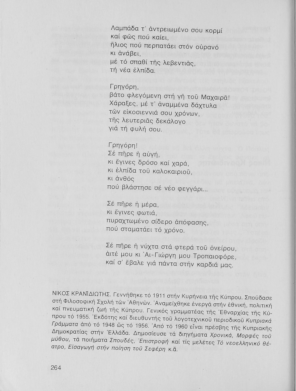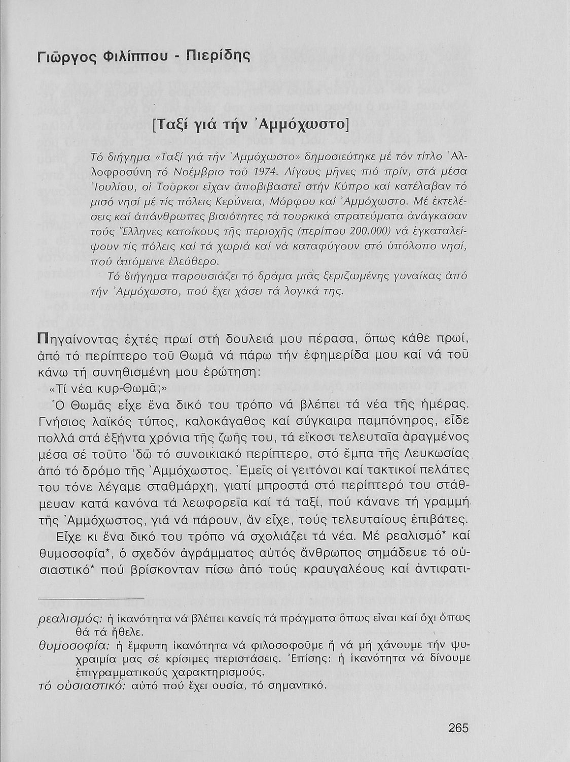 Σχολικό εγχειρίδιο Νέων Ελληνικών Α΄ Γυμνασίου που περιλαμβάνει δοκίμια, πεζά και ποιήματα Ελλήνων συγγραφέων και δημοτικά τραγούδια εμπνευσμένα από τη θρησκευτική, εθνική και κοινωνική ζωή, τη "δοκιμασία της Κύπρου", και την ελληνική φύση. Περιέχει και έργα ευρωπαίων συγγραφέων.