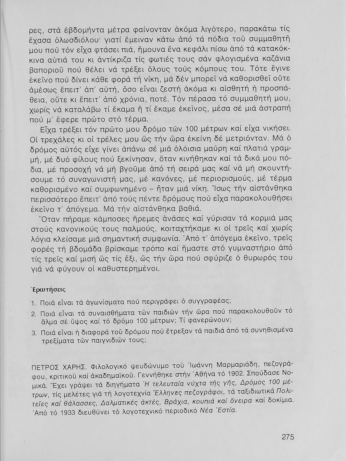 Σχολικό εγχειρίδιο Νέων Ελληνικών Α΄ Γυμνασίου που περιλαμβάνει δοκίμια, πεζά και ποιήματα Ελλήνων συγγραφέων και δημοτικά τραγούδια εμπνευσμένα από τη θρησκευτική, εθνική και κοινωνική ζωή, τη "δοκιμασία της ...