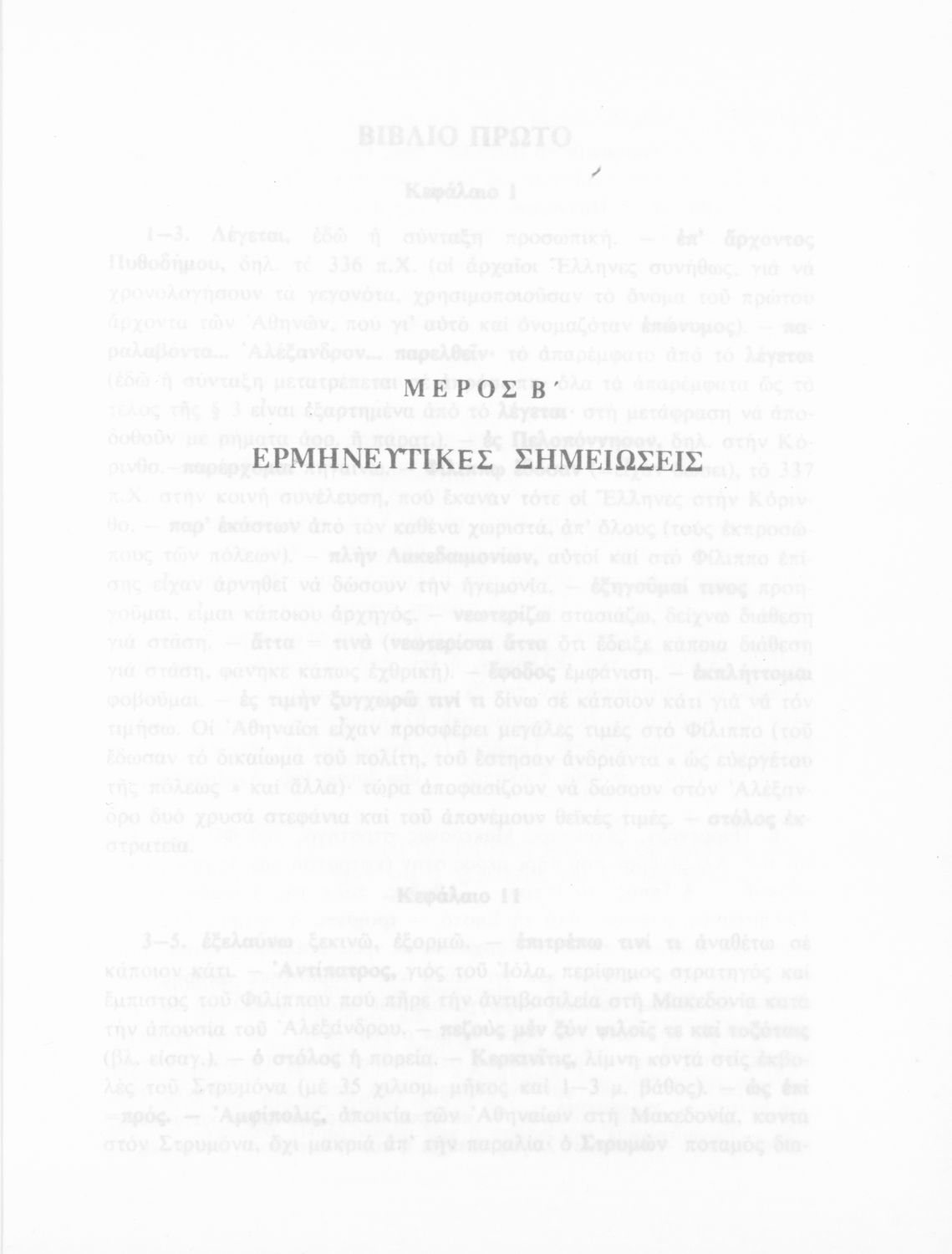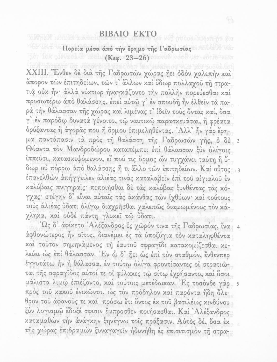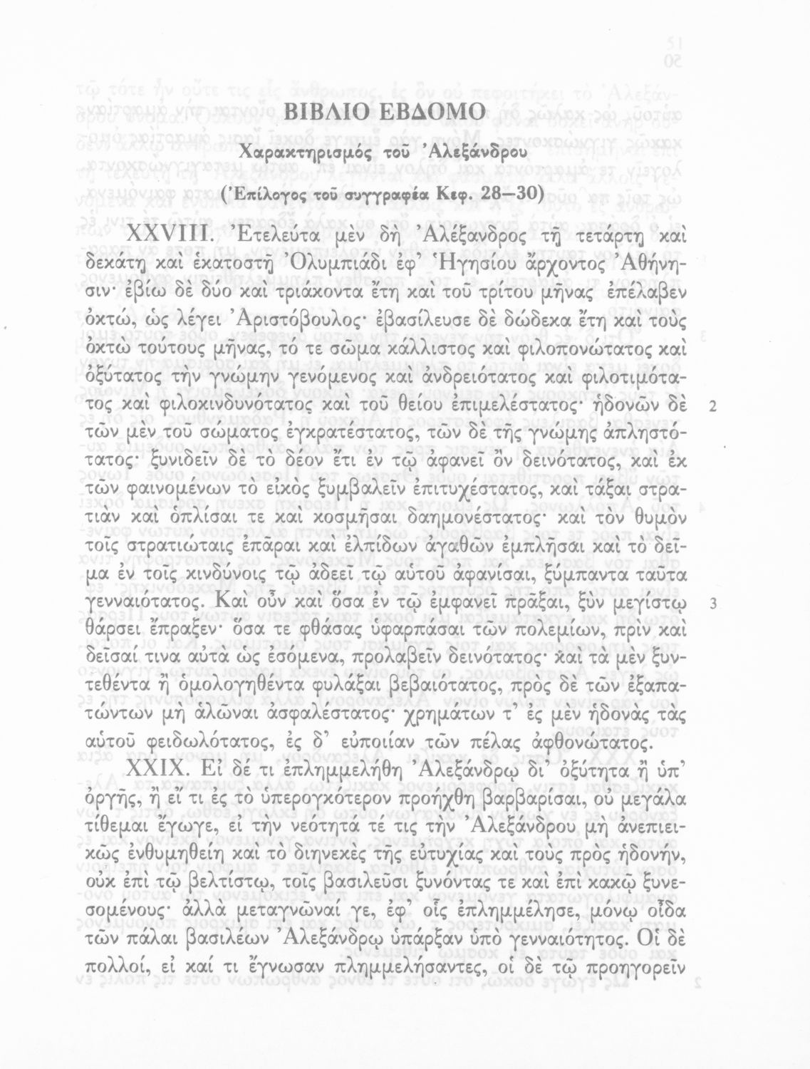Μαθητικό βοήθημα Αρχαίων Ελληνικών Γ' Γυμνασίου που περιλαμβάνει αποσπάσματα από το έργο του Αρριανού Αλεξάνδρου Ανάβασις, ερμηνευτικά και γραμματικά σχόλια καθώς και χρονικές και εγκλιτικές αντικαταστάσεις. Ο