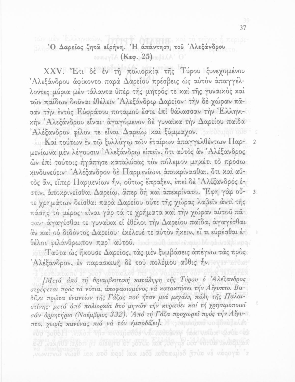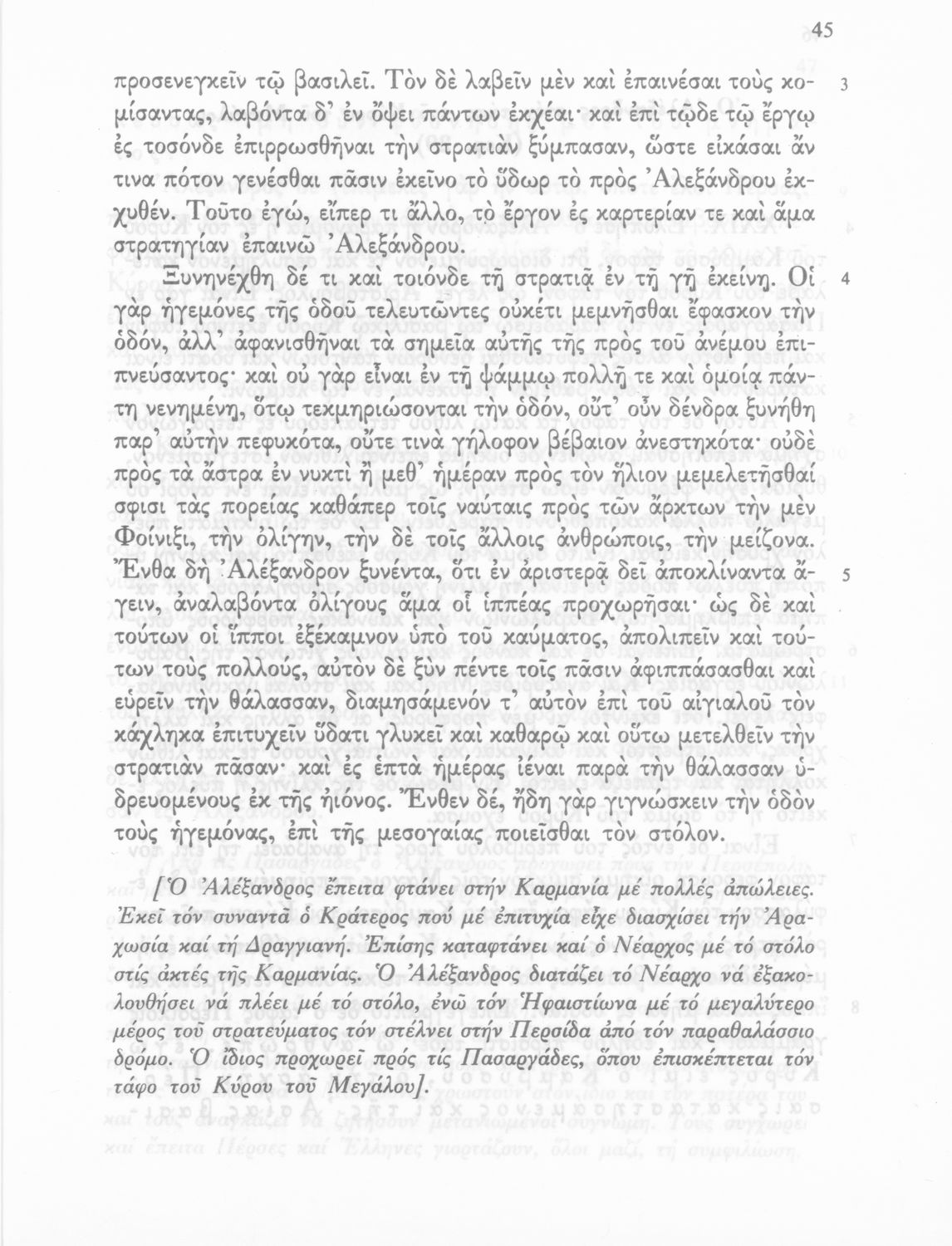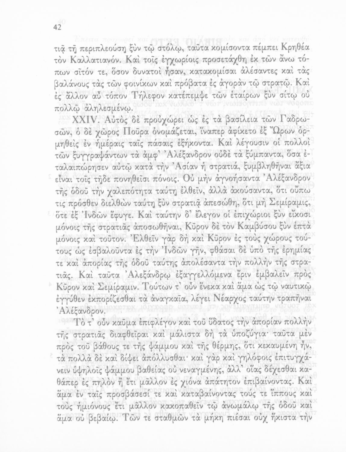 Μαθητικό βοήθημα Αρχαίων Ελληνικών Γ' Γυμνασίου που περιλαμβάνει αποσπάσματα από το έργο του Αρριανού Αλεξάνδρου Ανάβασις, ερμηνευτικά και γραμματικά σχόλια καθώς και χρονικές και εγκλιτικές αντικαταστάσεις. Ο