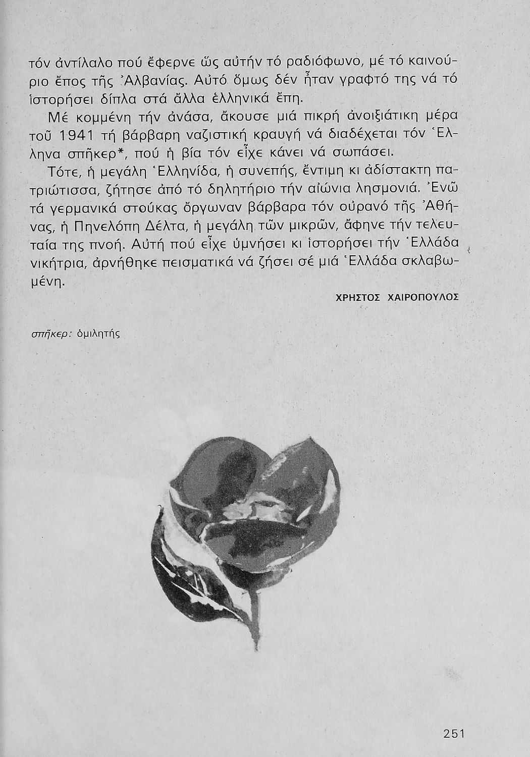 Αναγνωστικό ΣΤ΄ Δημοτικού που αντλεί τα θέματά του από τη θρησκευτική, εθνική, οικογενειακή, κοινωνική και επαγγελματική ζωή και την σύγχρονη ελληνική ιστορία. Φέρει το σύμβολο της δικτατορίας.