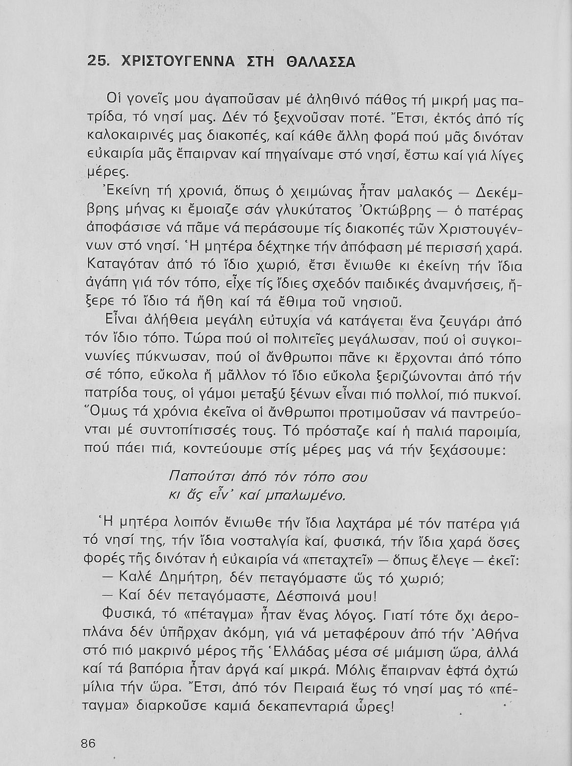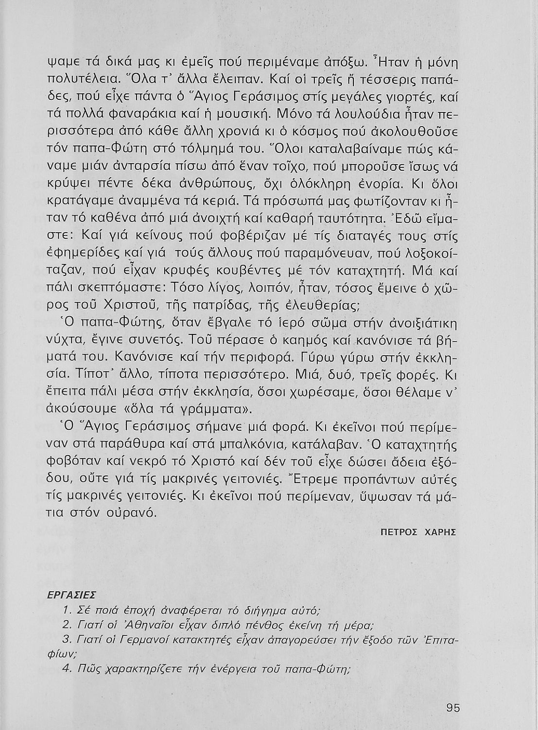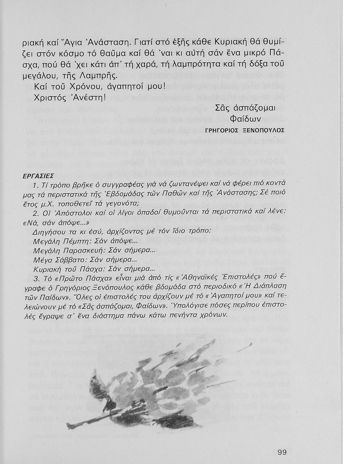 Αναγνωστικό ΣΤ΄ Δημοτικού που αντλεί τα θέματά του από τη θρησκευτική, εθνική, οικογενειακή, κοινωνική και επαγγελματική ζωή και την σύγχρονη ελληνική ιστορία.