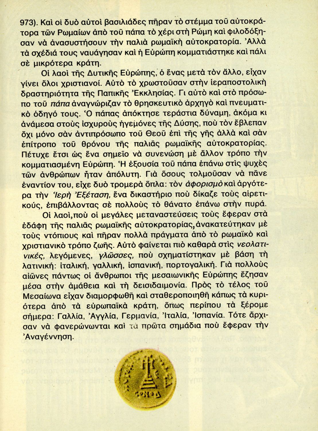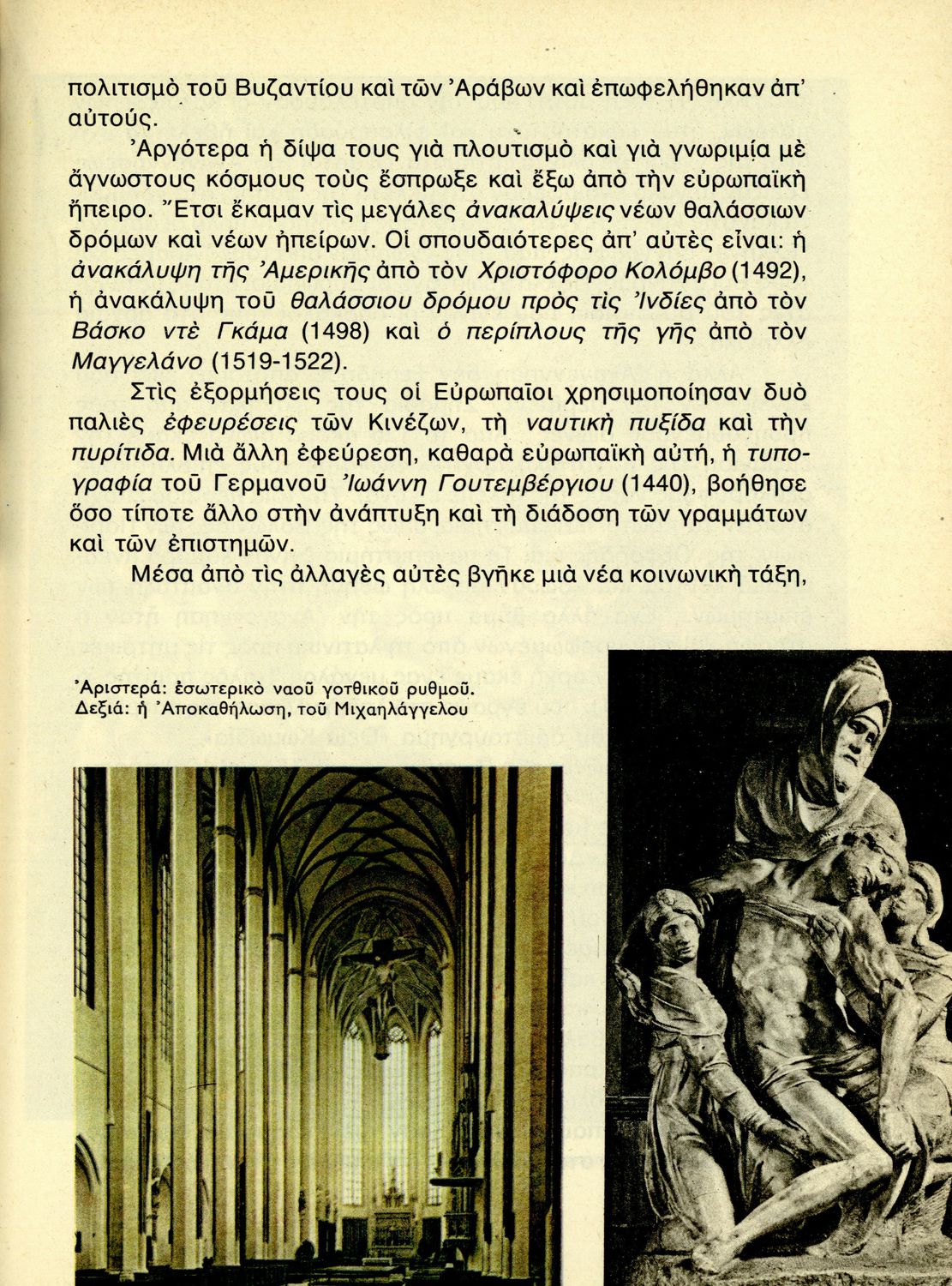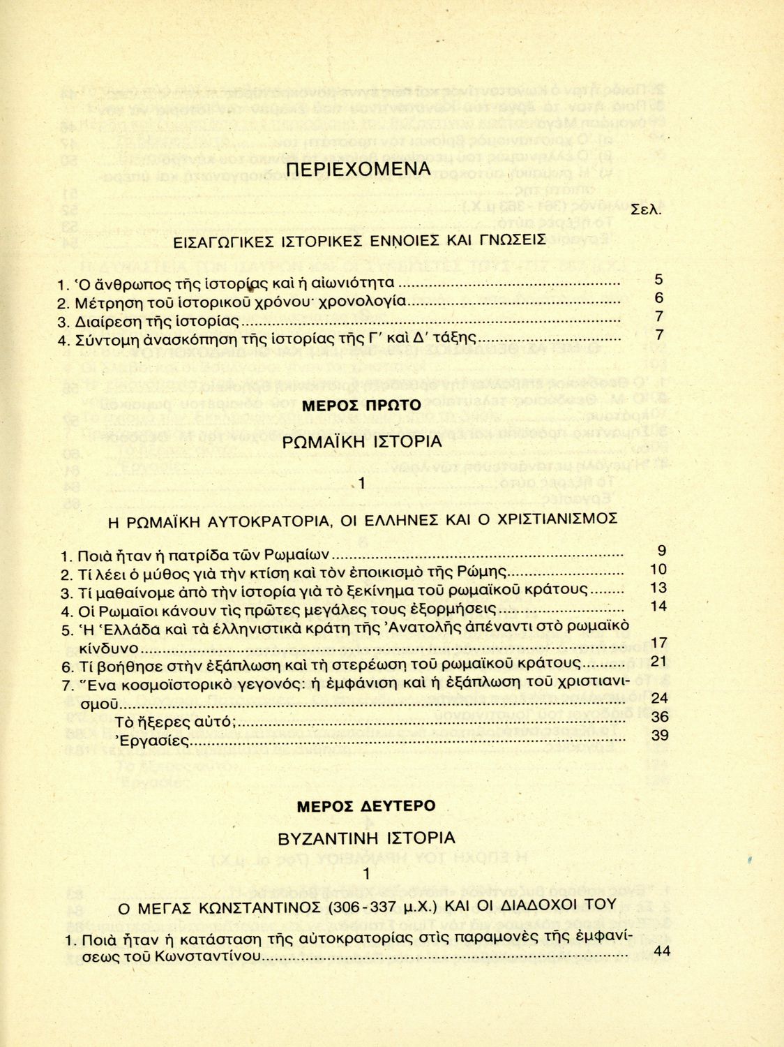 Σχολικό εγχειρίδιο της Ε΄ Δημοτικού για το μάθημα της Ιστορίας. Αναφέρεται στη ρωμαϊκή και Βυζαντινή Αυτοκρατορία. Αναλύεται το έργο και η δράση κάθε αυτοκράτορα τελειώνει με την άλωση και την επικράτηση των Οθωμανών. Στο τέλος αναφέρεται στα γράμματα και τις ανακαλύψεις των νέων χωρών.