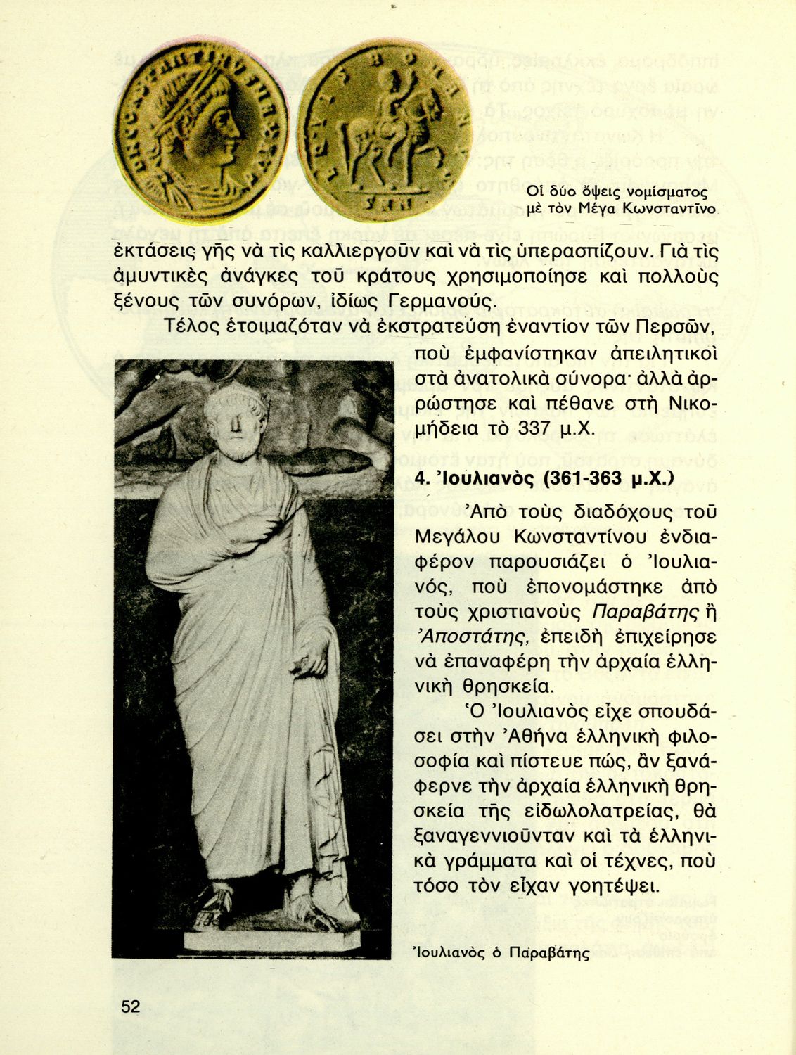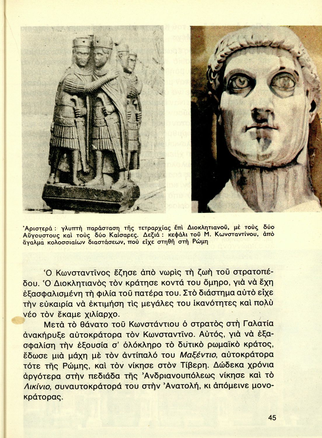 Μαθητικό βοήθημα Ιστορίας Δ΄ Δημοτικού που καλύπτει την περίοδο της Ρωμαϊκής και Βυζαντινής Αυτοκρατορίας μέχρι και την άλωση της Κωνσταντινούπολης. Ο συγγραφέας ήταν επιθεωρητής Δημοτικών Σχολείων.