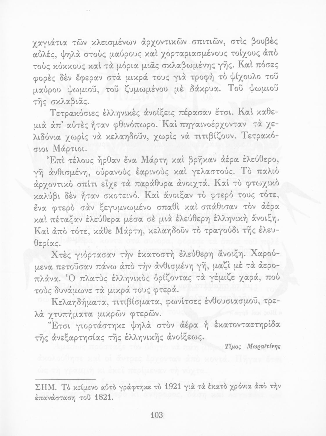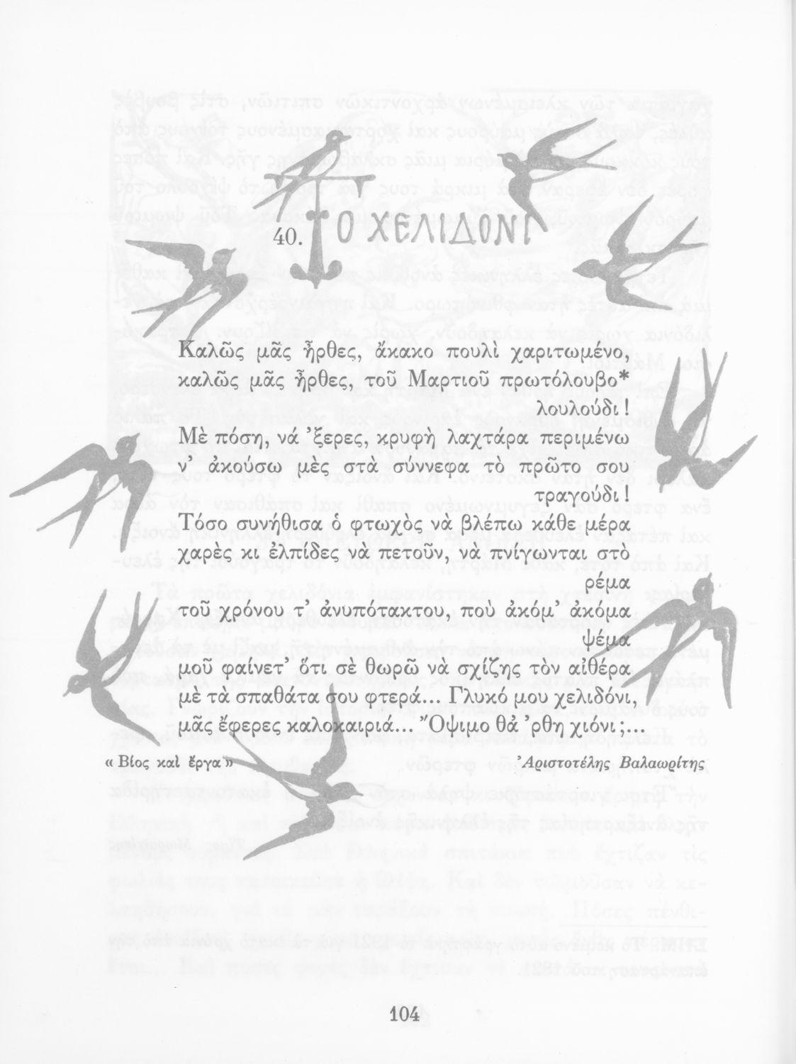 Αναγνωστικό ΣΤ΄ Δημοτικού που περιλαμβάνει πεζά και ποιήματα εμπνευσμένα από τη θρησκευτική, εθνική και κοινωνική ζωή καθώς και από τις ασχολίες των Ελλήνων.