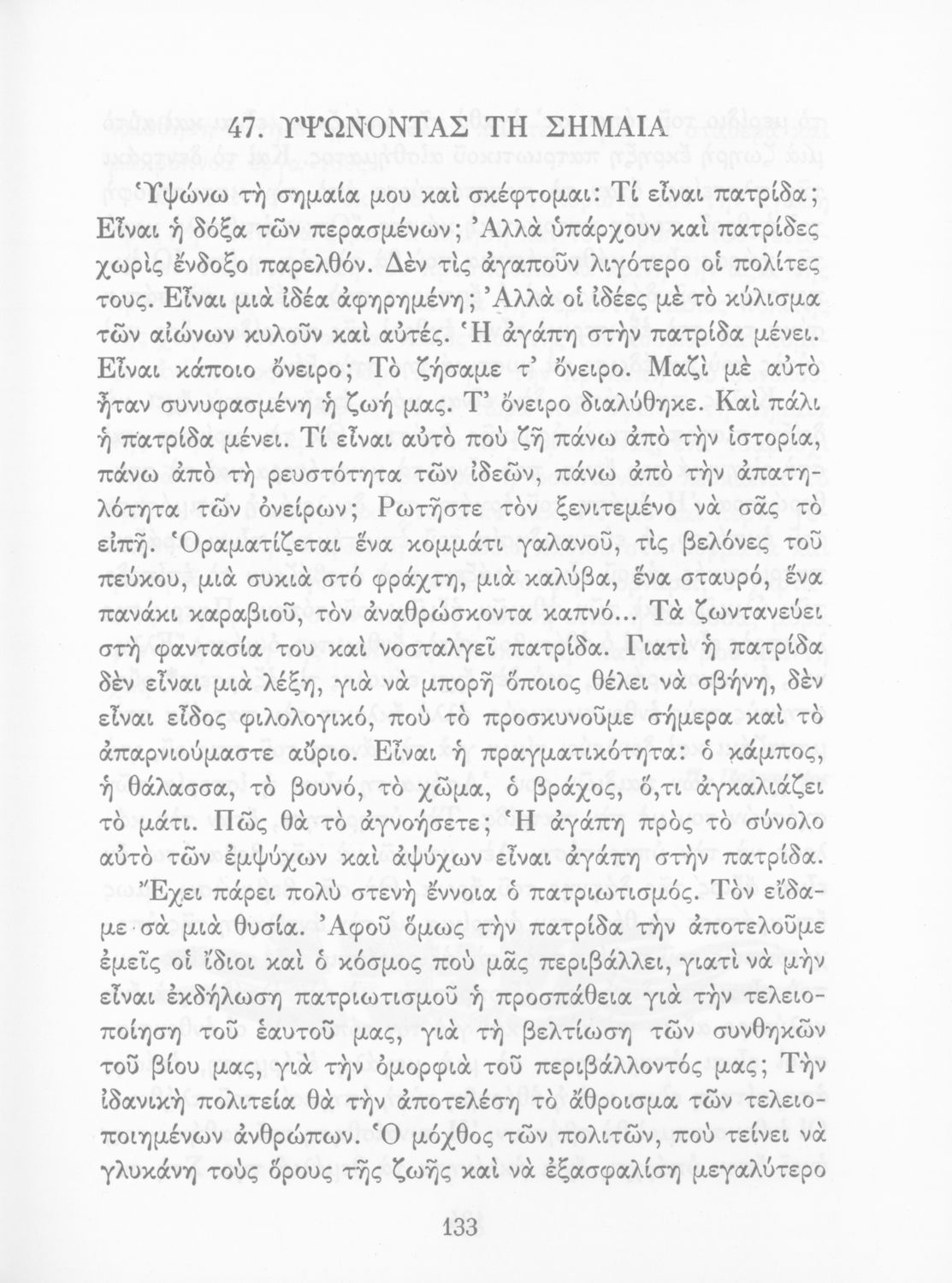 Αναγνωστικό ΣΤ΄ Δημοτικού που περιλαμβάνει πεζά και ποιήματα εμπνευσμένα από τη θρησκευτική, εθνική και κοινωνική ζωή καθώς και από τις ασχολίες των Ελλήνων.