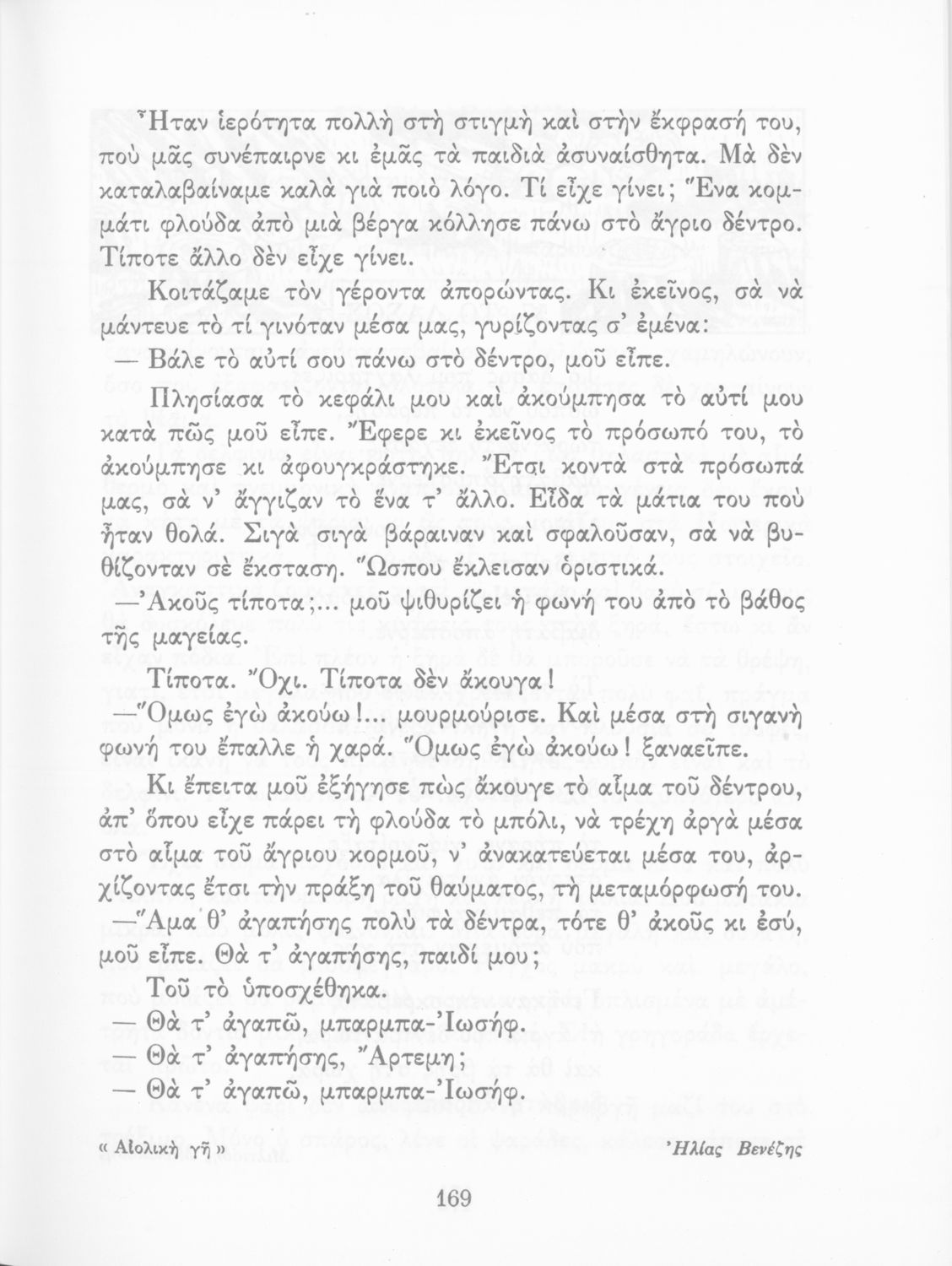 Αναγνωστικό ΣΤ΄ Δημοτικού που περιλαμβάνει πεζά και ποιήματα εμπνευσμένα από τη θρησκευτική, εθνική και κοινωνική ζωή καθώς και από τις ασχολίες των Ελλήνων.