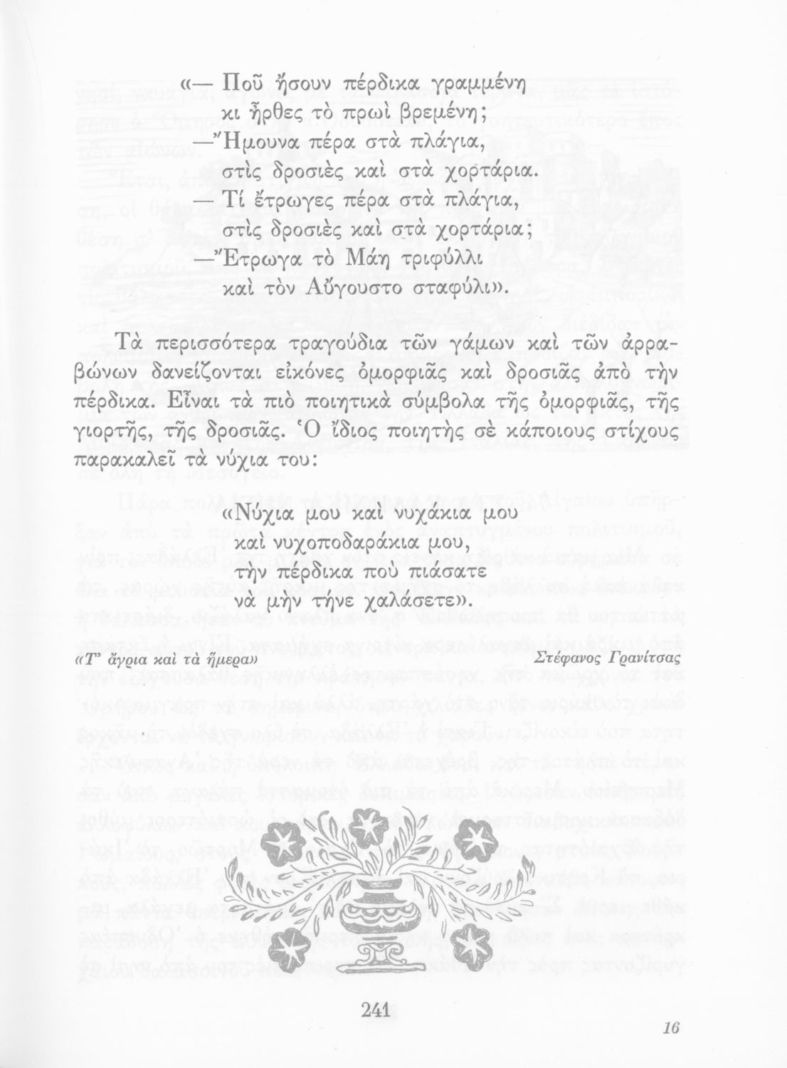 Αναγνωστικό ΣΤ΄ Δημοτικού που περιλαμβάνει πεζά και ποιήματα εμπνευσμένα από τη θρησκευτική, εθνική και κοινωνική ζωή καθώς και από τις ασχολίες των Ελλήνων.