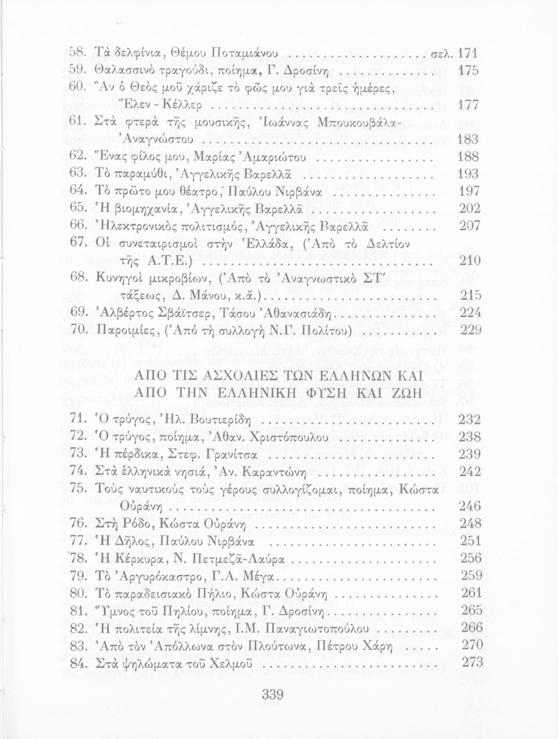 Αναγνωστικό ΣΤ΄ Δημοτικού που περιλαμβάνει πεζά και ποιήματα εμπνευσμένα από τη θρησκευτική, εθνική και κοινωνική ζωή καθώς και από τις ασχολίες των Ελλήνων.