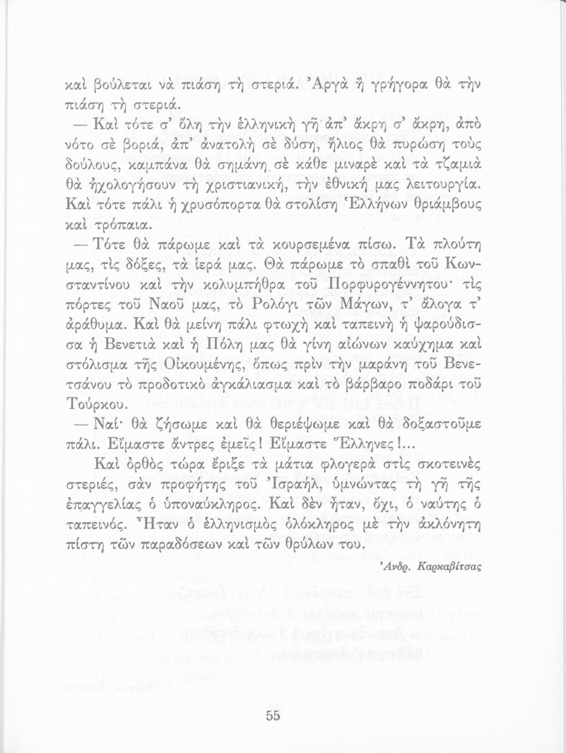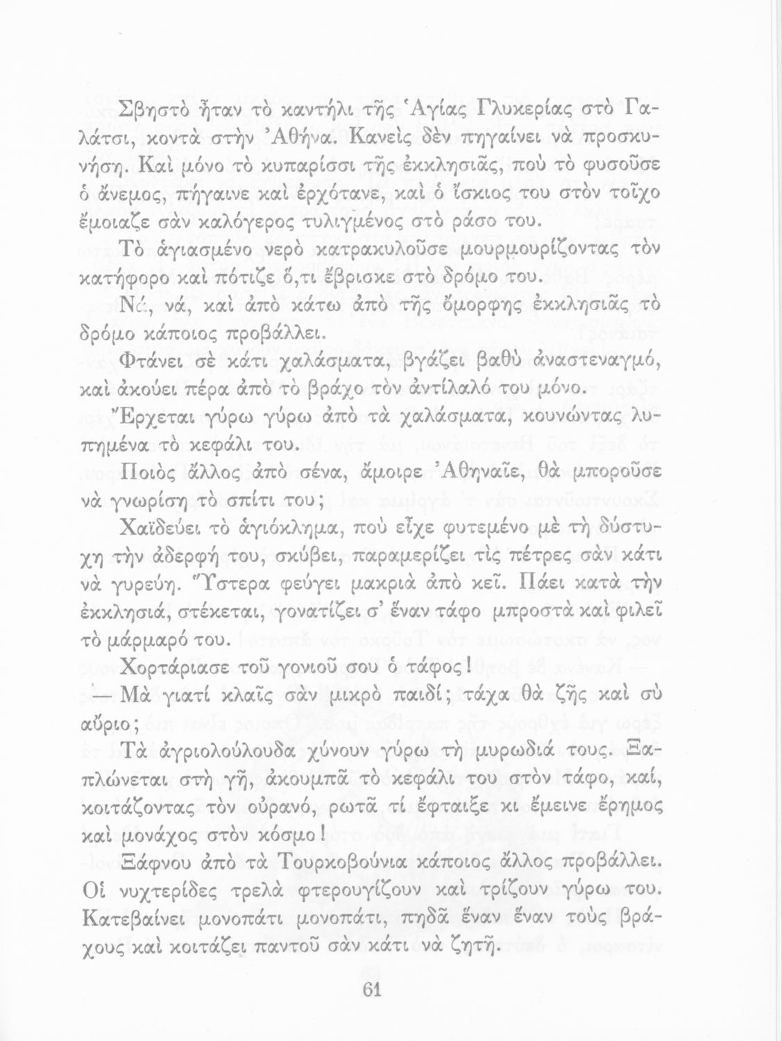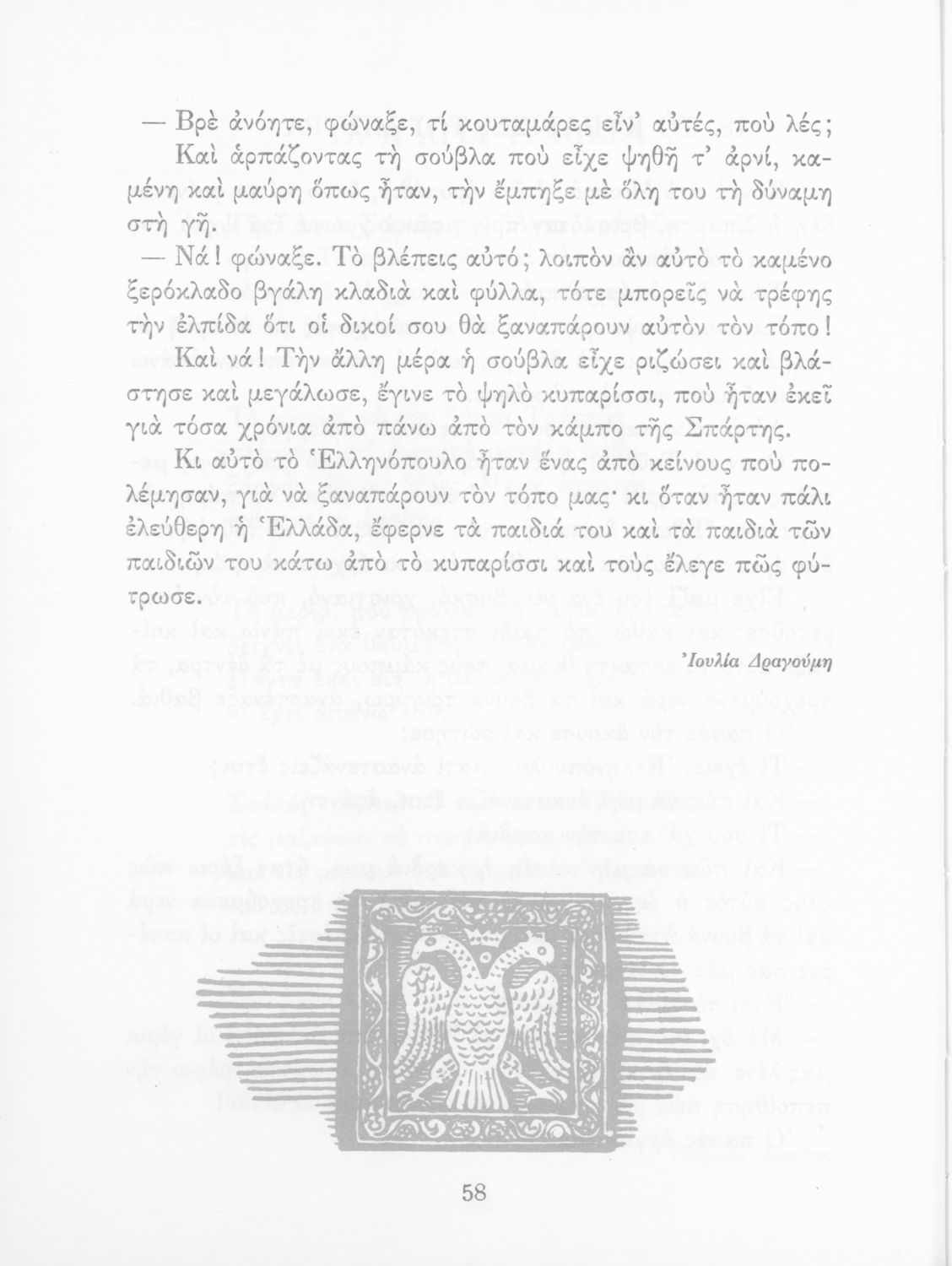 Αναγνωστικό ΣΤ΄ Δημοτικού που περιλαμβάνει πεζά και ποιήματα εμπνευσμένα από τη θρησκευτική, εθνική και κοινωνική ζωή καθώς και από τις ασχολίες των Ελλήνων.