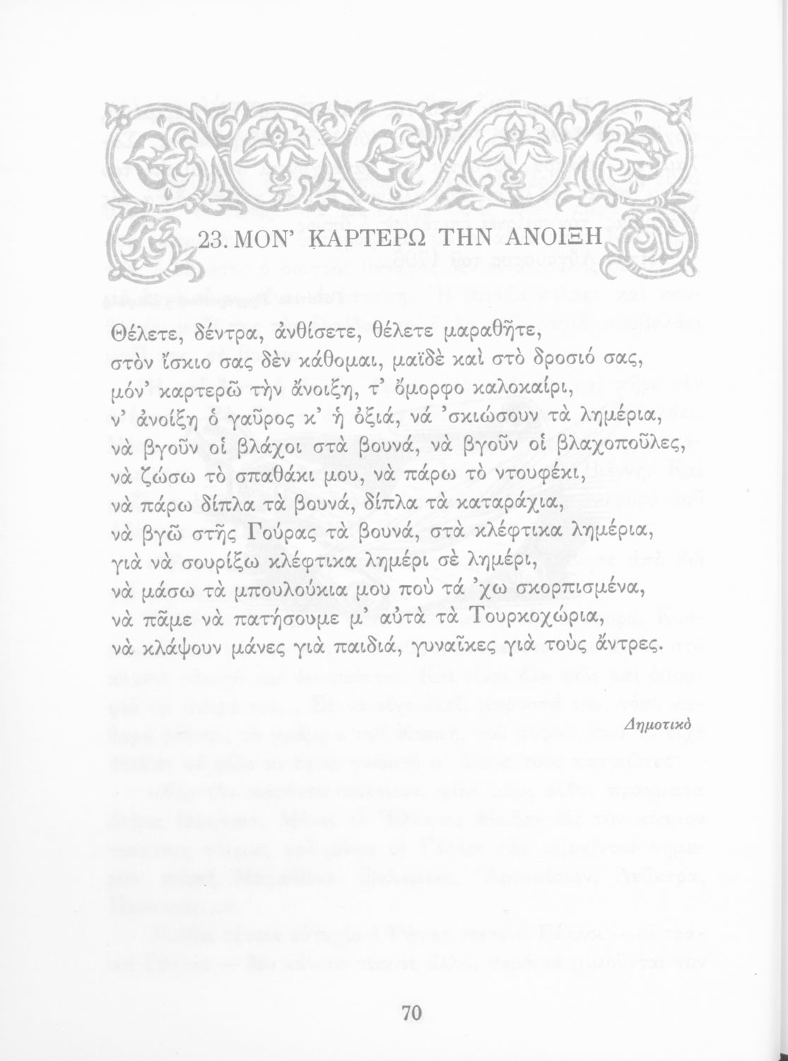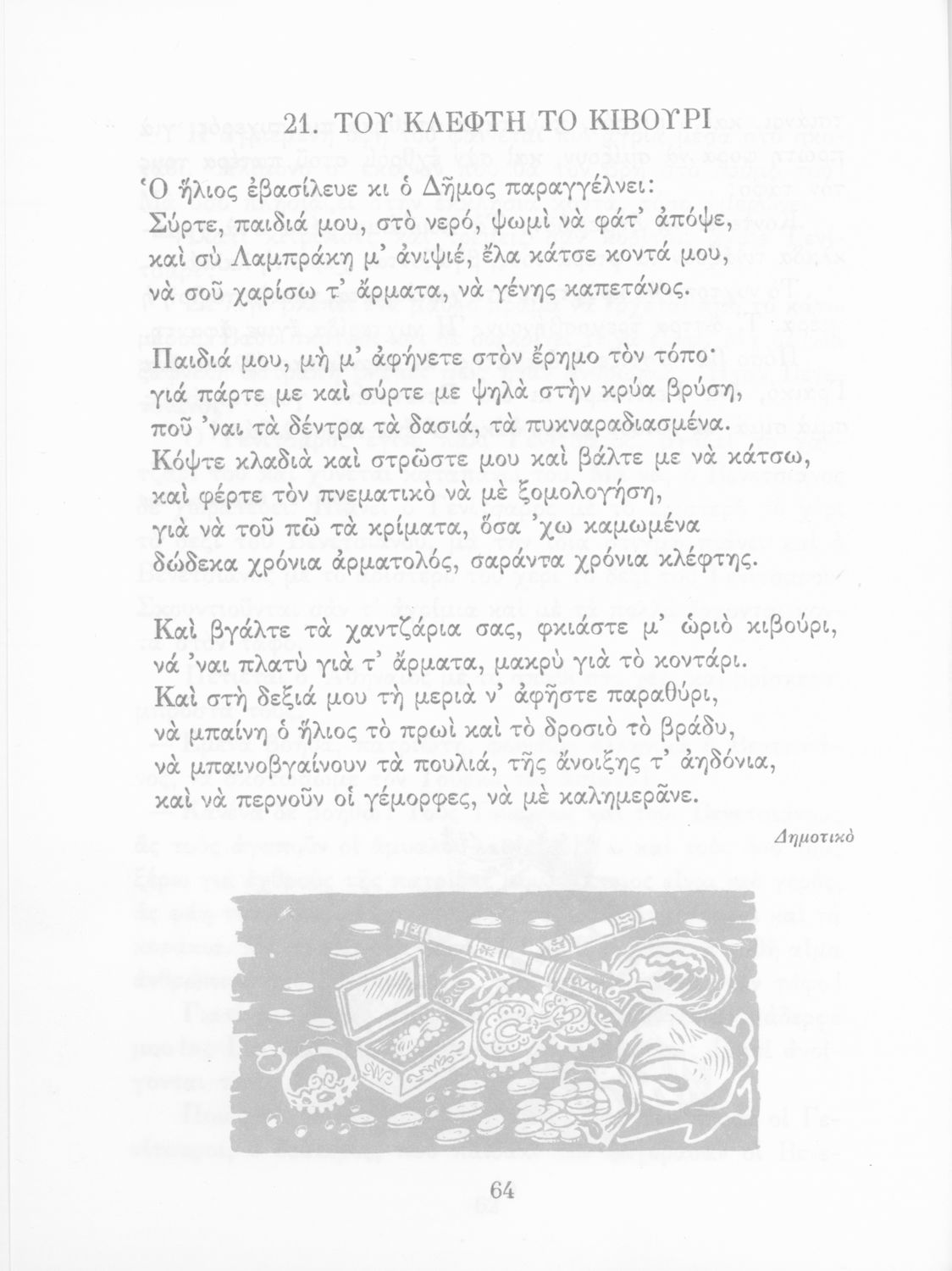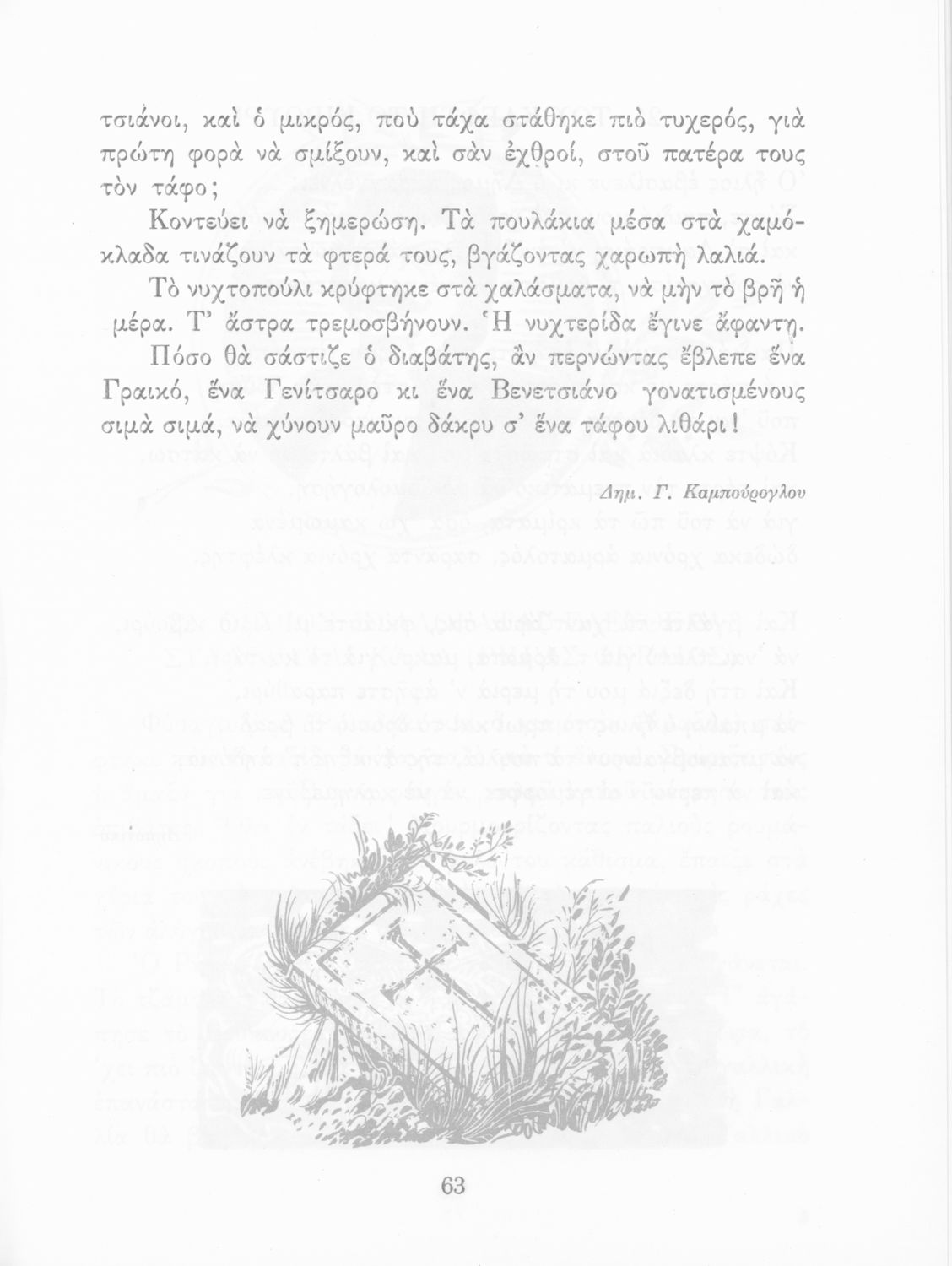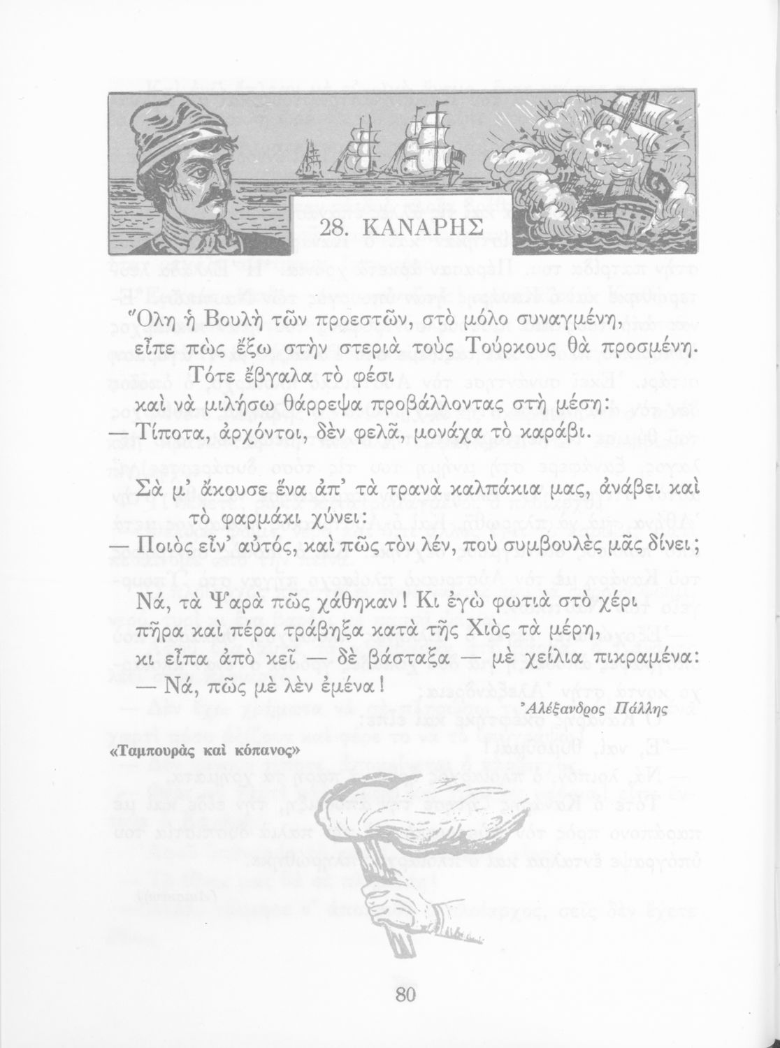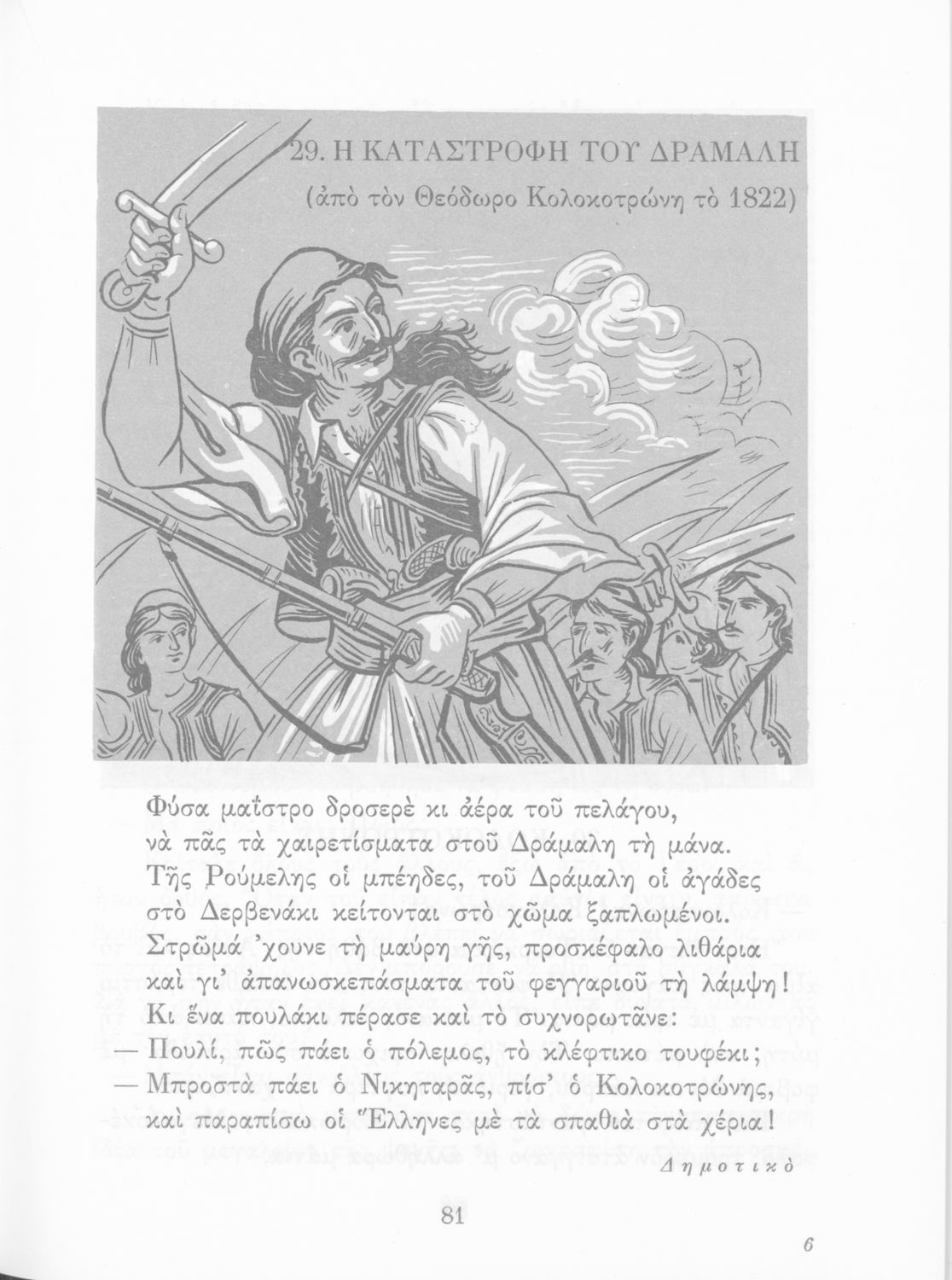 Αναγνωστικό ΣΤ΄ Δημοτικού που περιλαμβάνει πεζά και ποιήματα εμπνευσμένα από τη θρησκευτική, εθνική και κοινωνική ζωή καθώς και από τις ασχολίες των Ελλήνων.