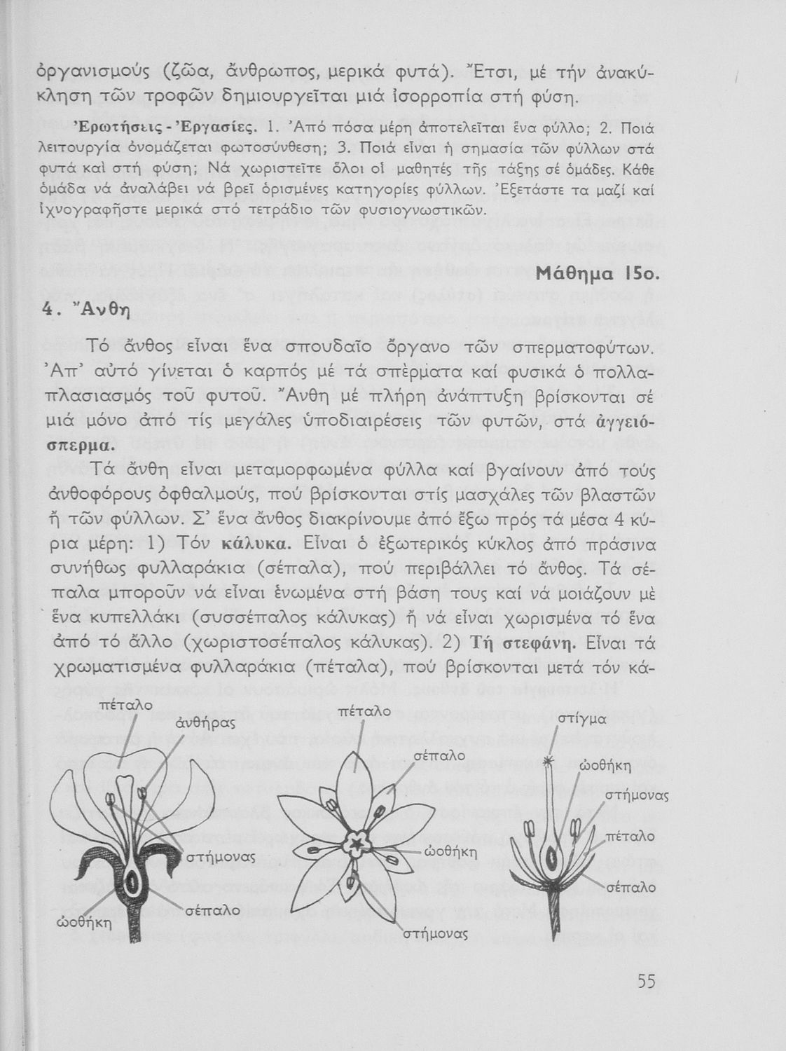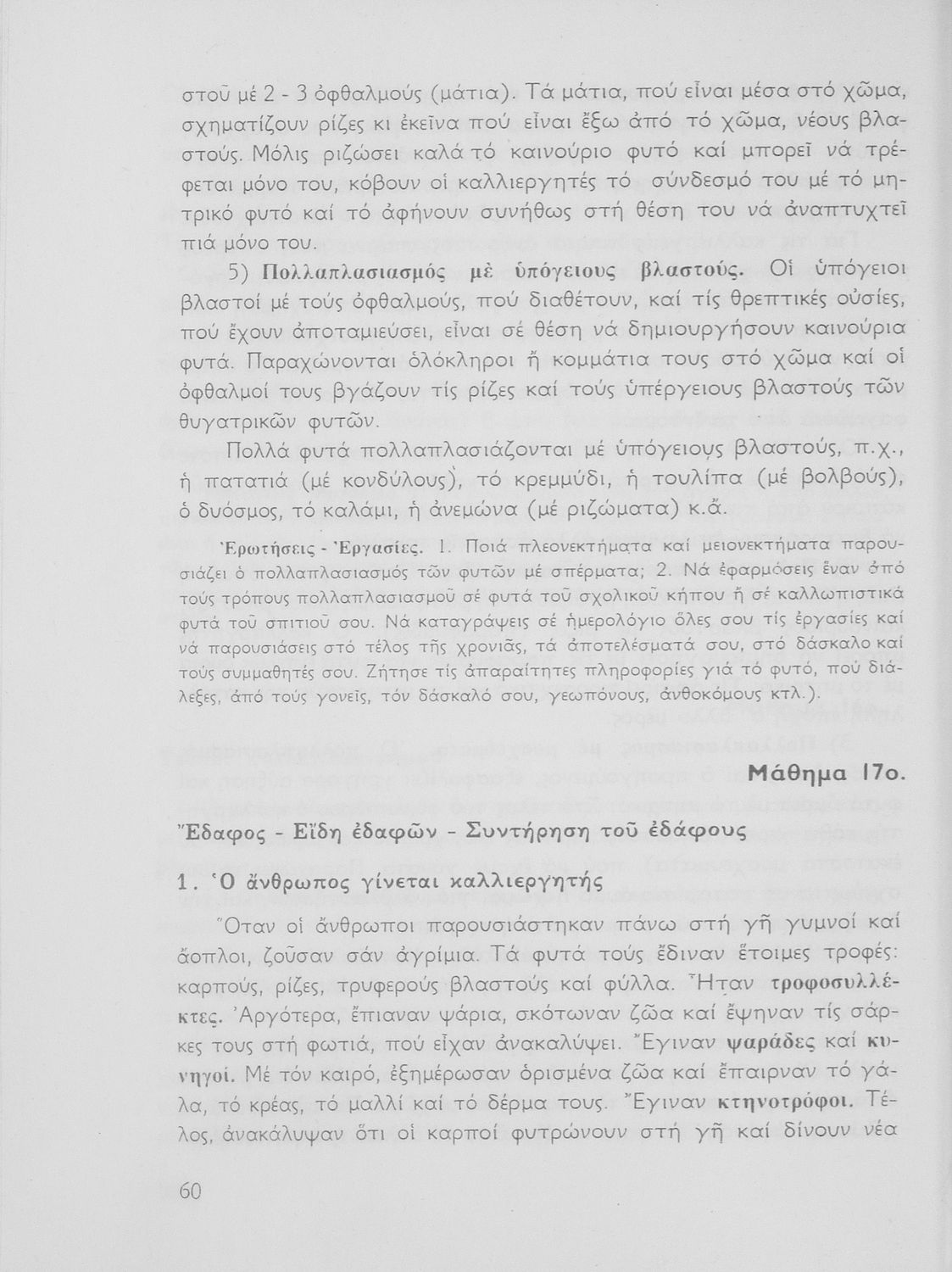 Σχολικό εγχειρίδιο Φυτολογίας Δ΄, Ε΄ και ΣΤ΄ Δημοτικού που παρουσιάζει πλήθος φυτών και εστιάζει στον τρόπο πολλαπλασιασμού τους.