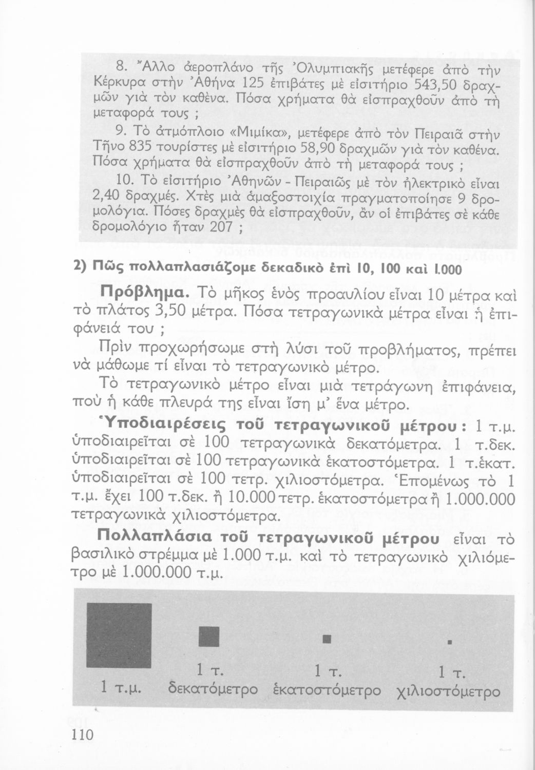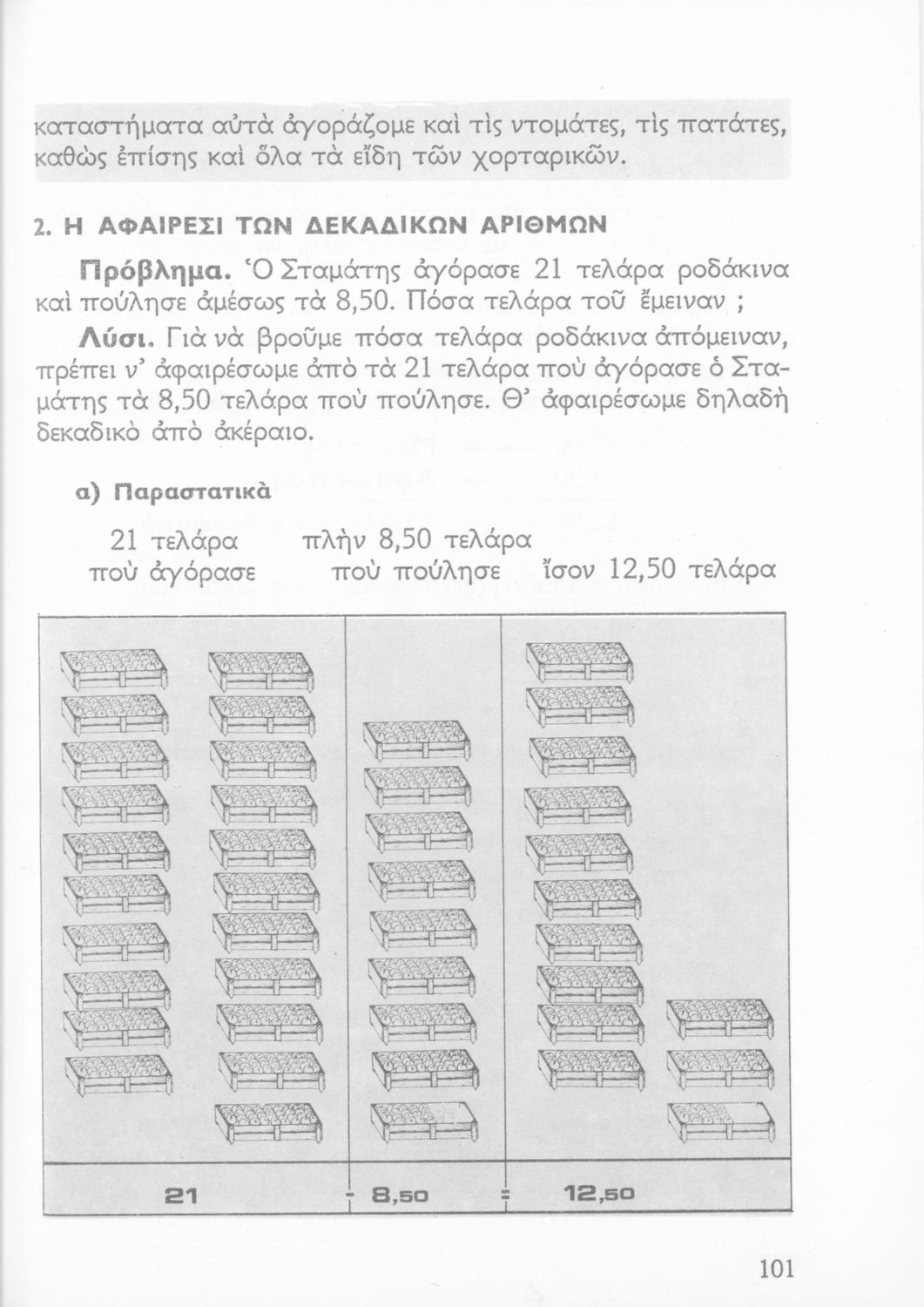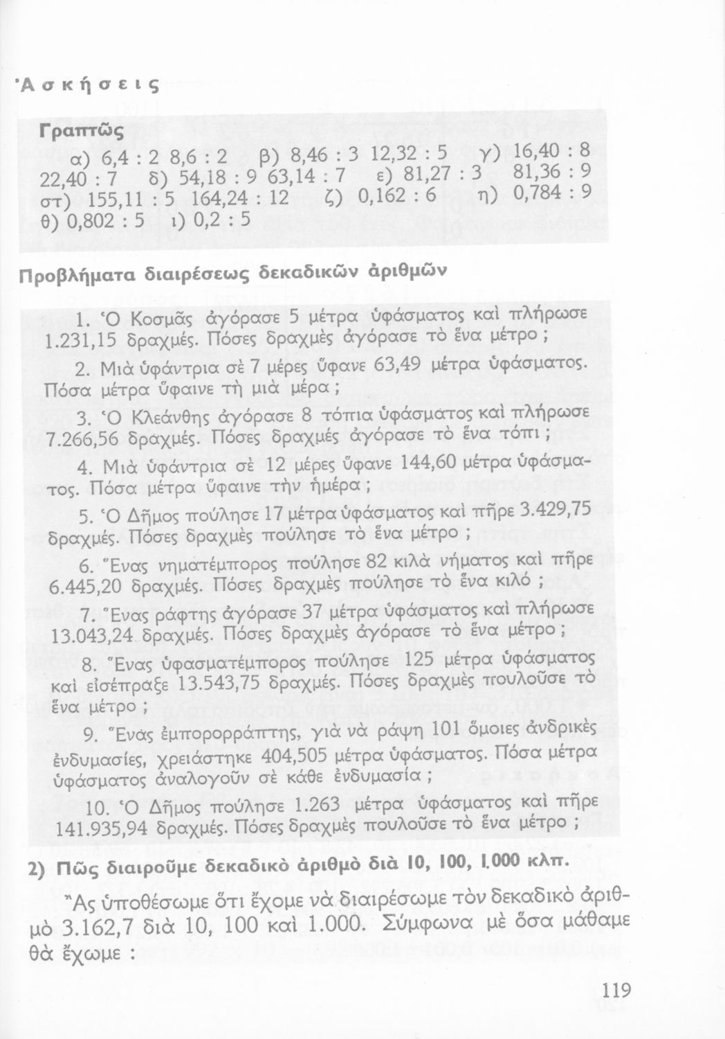 Σχολικό εγχειρίδιο Αριθμητικής Δ΄ Δημοτικού χωρισμένο σε πρακτικά προβλήματα και τις λύσεις τους που περιλαμβάνει και κάποια στοιχεία Γεωμετρίας.