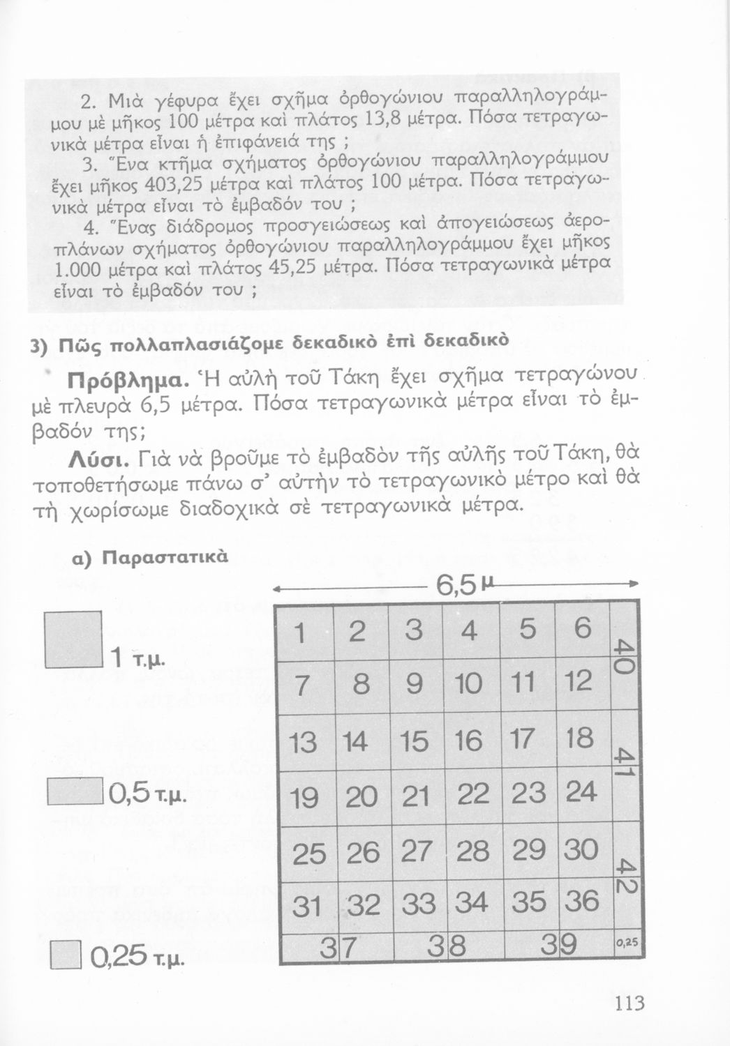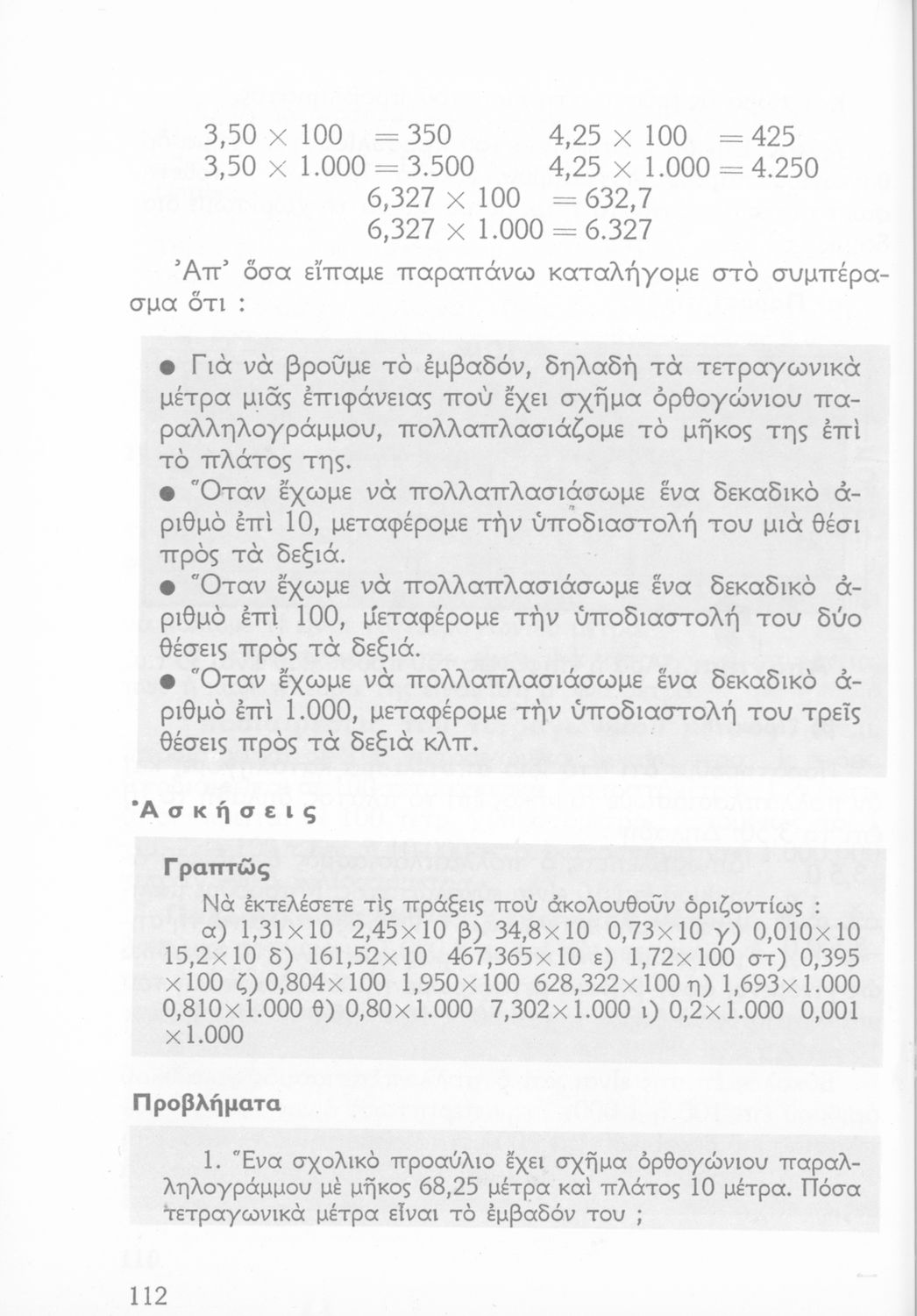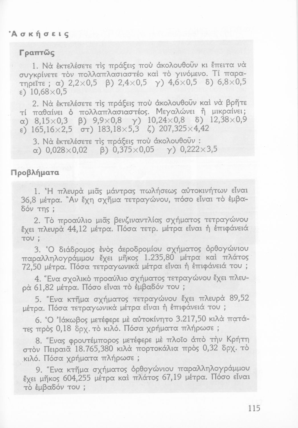 Σχολικό εγχειρίδιο Μαθηματικών ΣΤ΄ Δημοτικού που περιλαμβάνει ασκήσεις λογιστικού χαρακτήρα και ασκήσεις μέτρησης γεωμετρικών σχημάτων.
