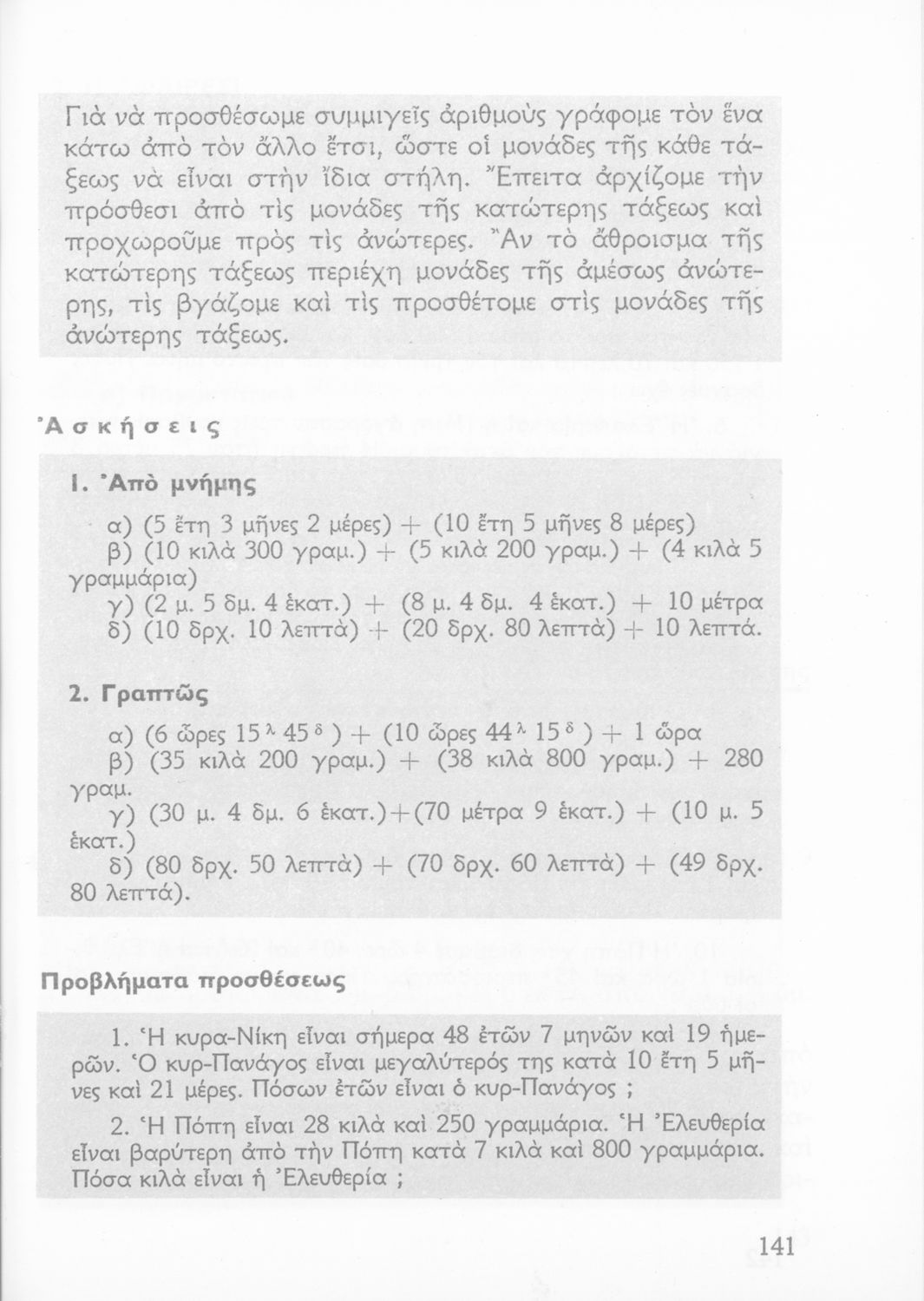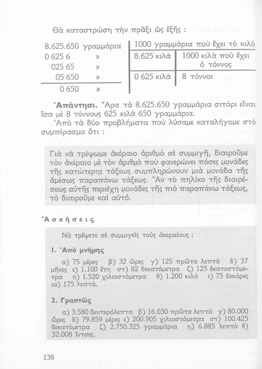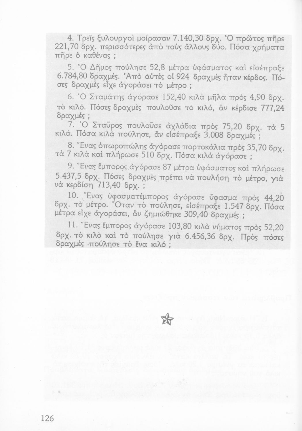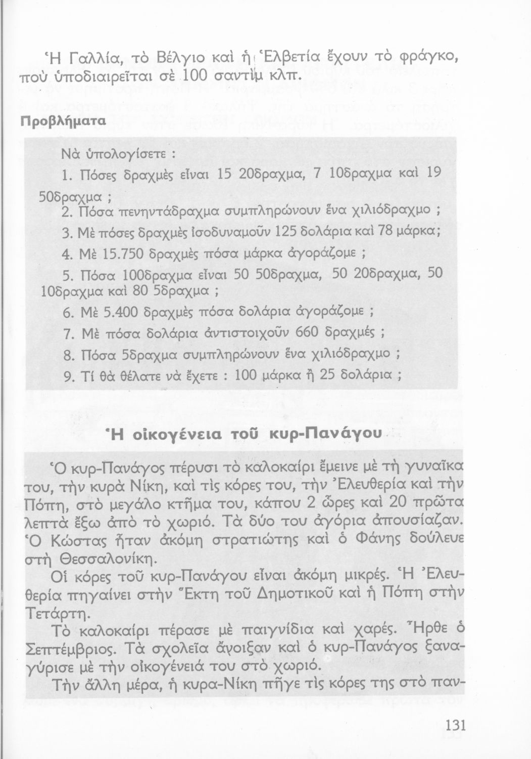 Σχολικό εγχειρίδιο Αριθμητικής Δ΄ Δημοτικού χωρισμένο σε πρακτικά προβλήματα και τις λύσεις τους που περιλαμβάνει και κάποια στοιχεία Γεωμετρίας.