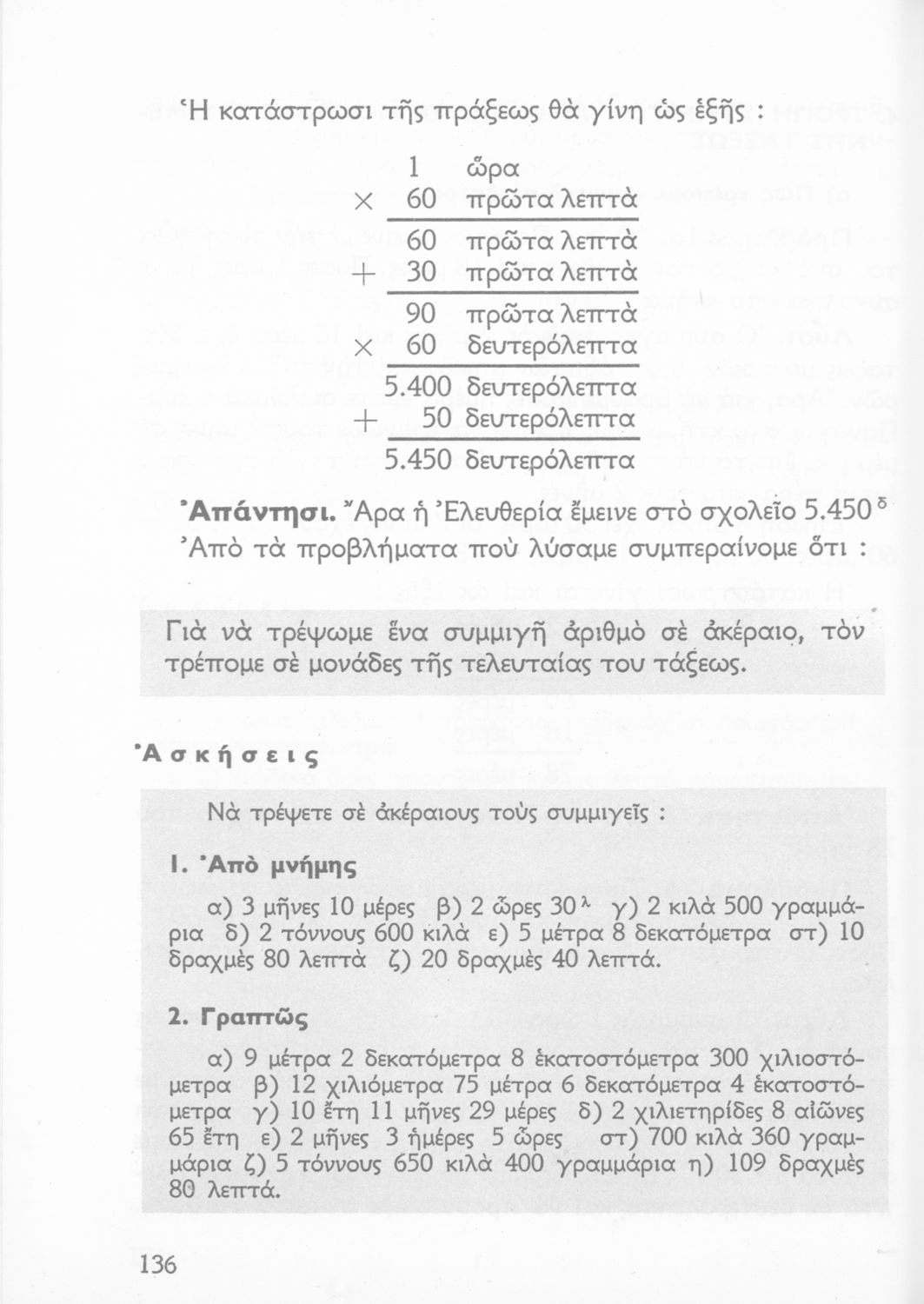 Σχολικό εγχειρίδιο Μαθηματικών ΣΤ΄ Δημοτικού που περιλαμβάνει ασκήσεις λογιστικού χαρακτήρα και ασκήσεις μέτρησης γεωμετρικών σχημάτων.