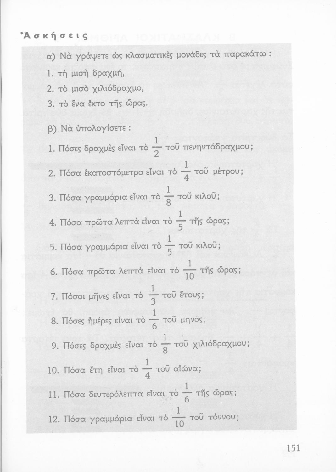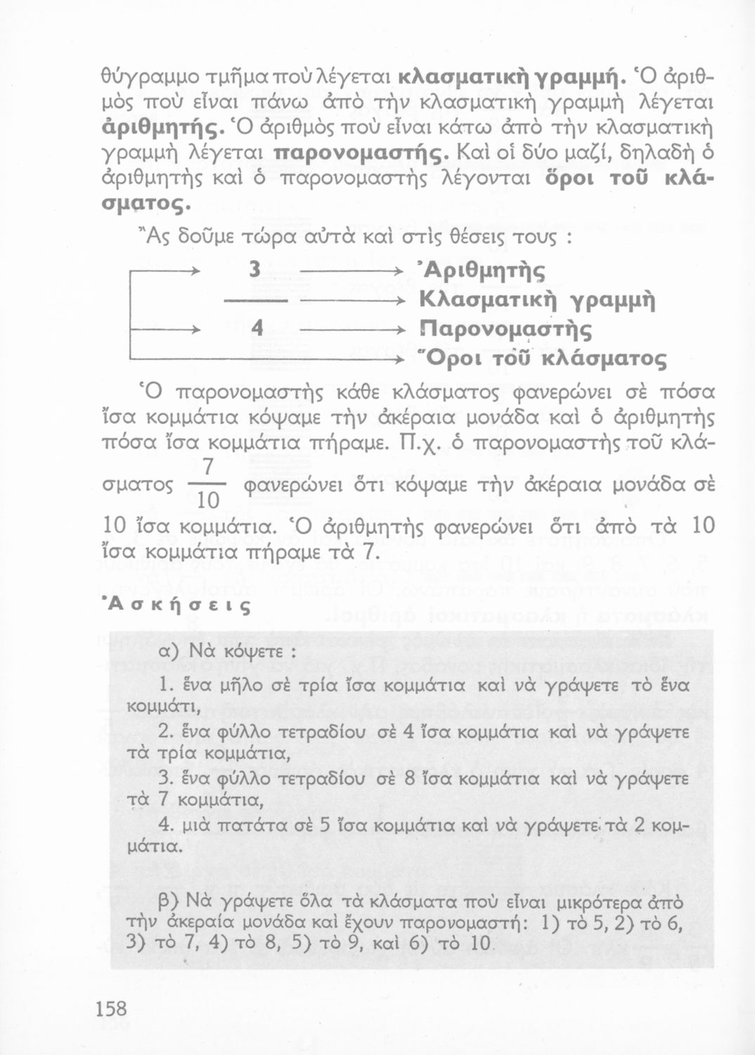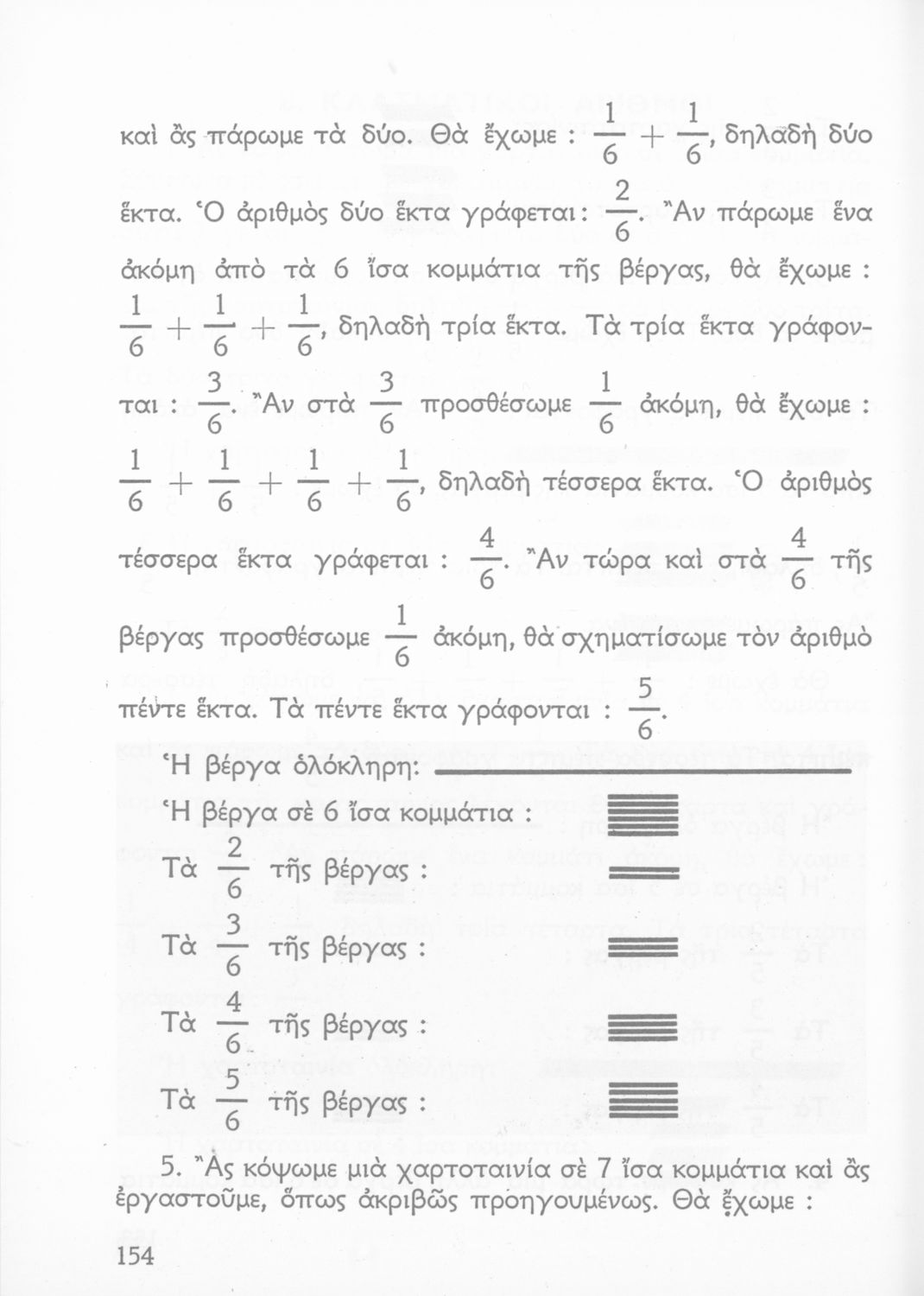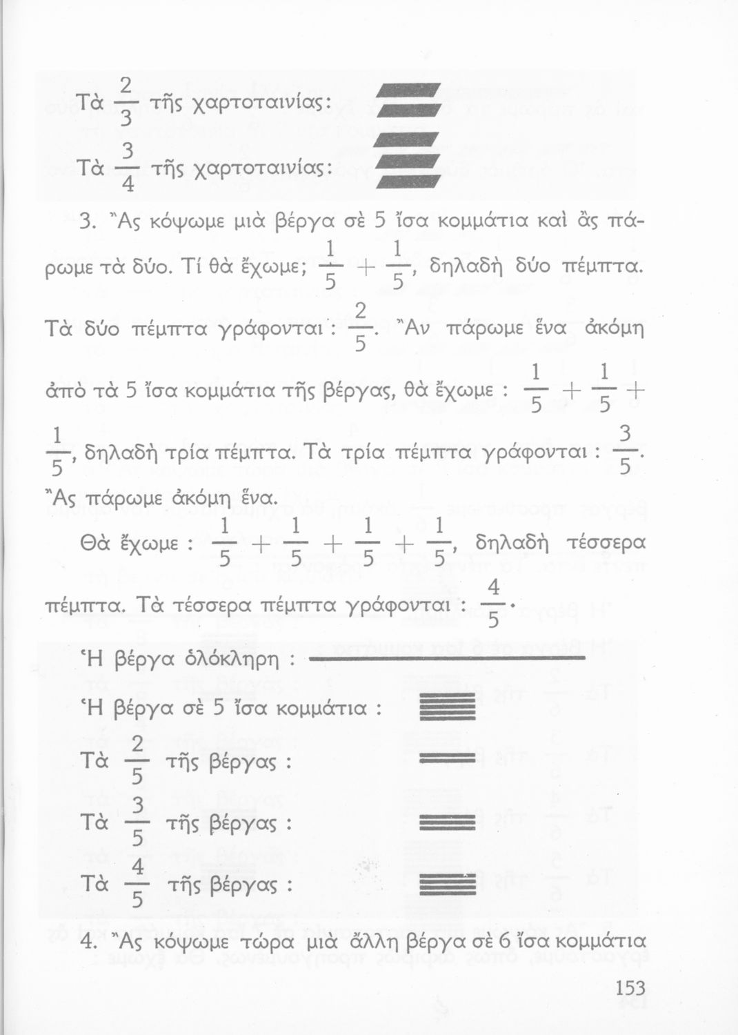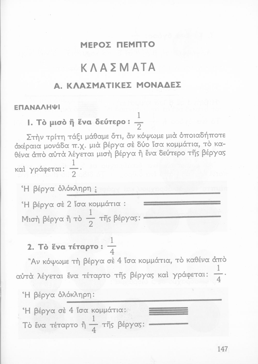 Σχολικό εγχειρίδιο Αριθμητικής Δ΄ Δημοτικού χωρισμένο σε πρακτικά προβλήματα και τις λύσεις τους που εστιάζει στις πράξεις με ακέραιους και συμμιγείς αριθμούς και περιλαμβάνει στοιχεία Γεωμετρίας.