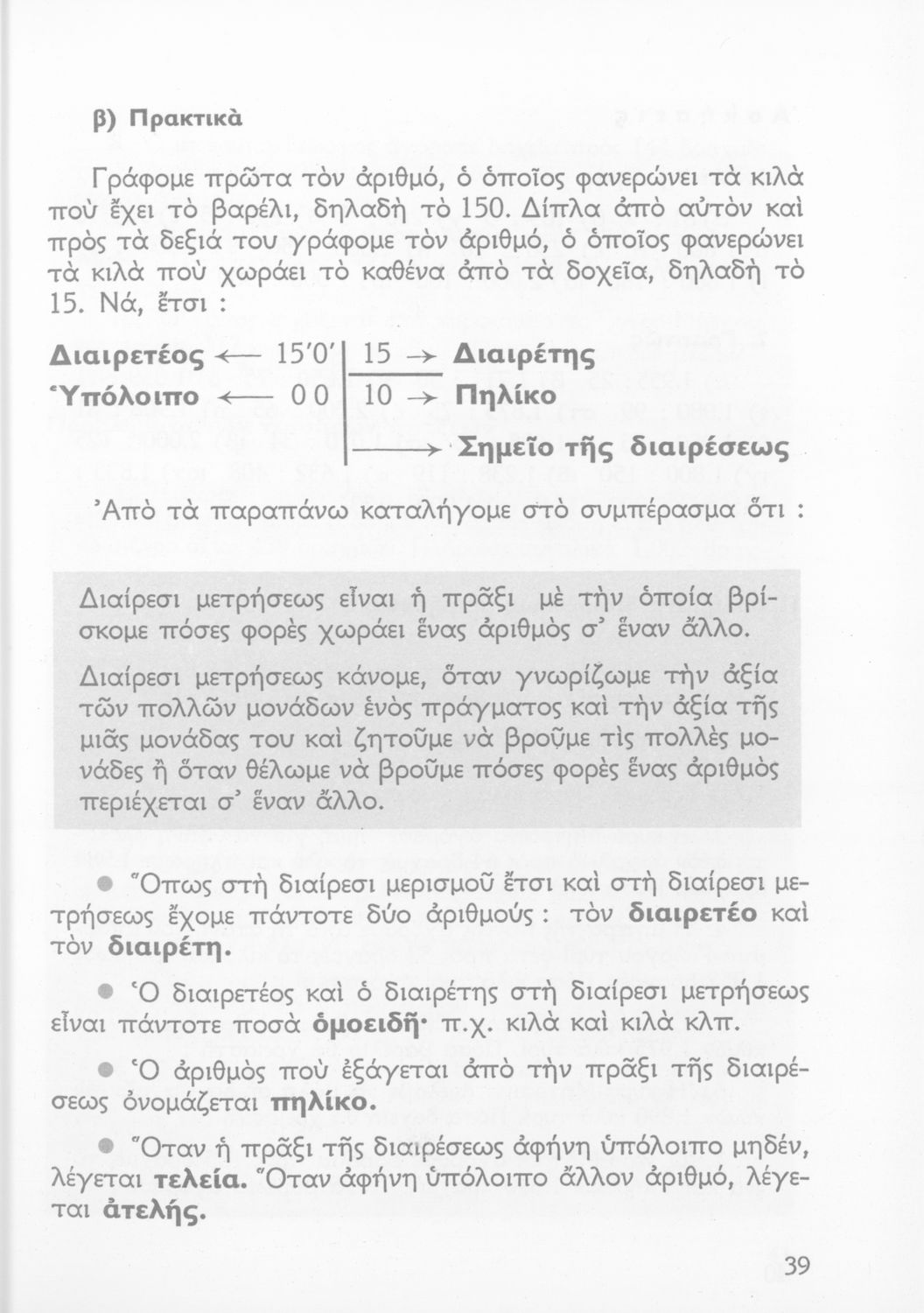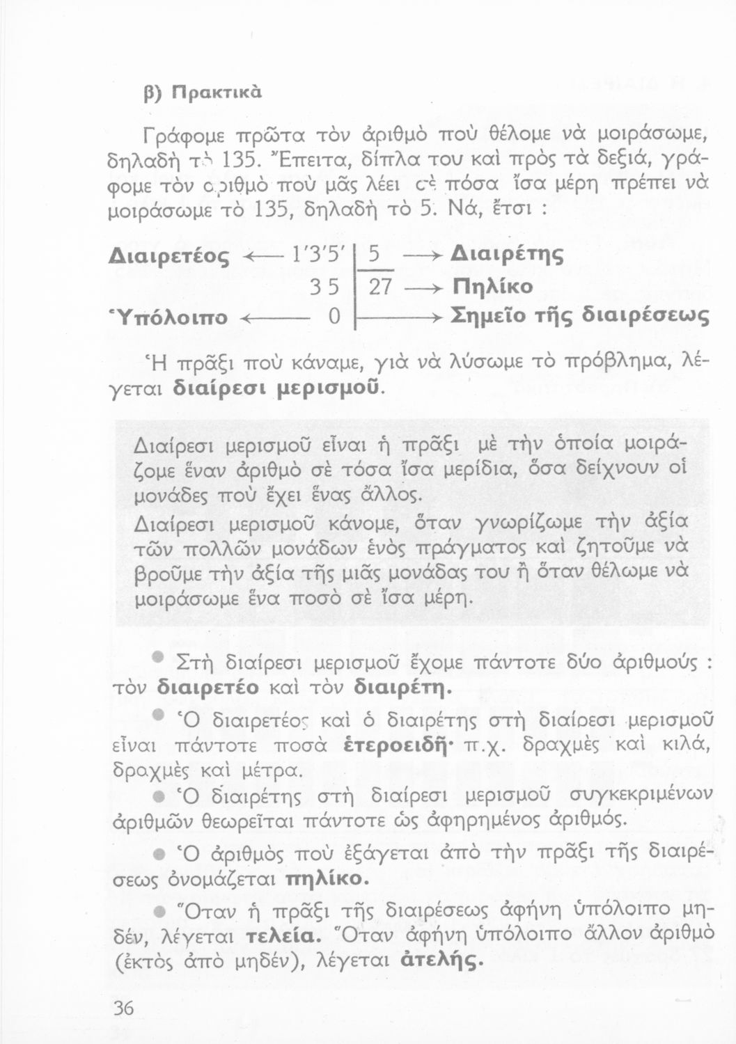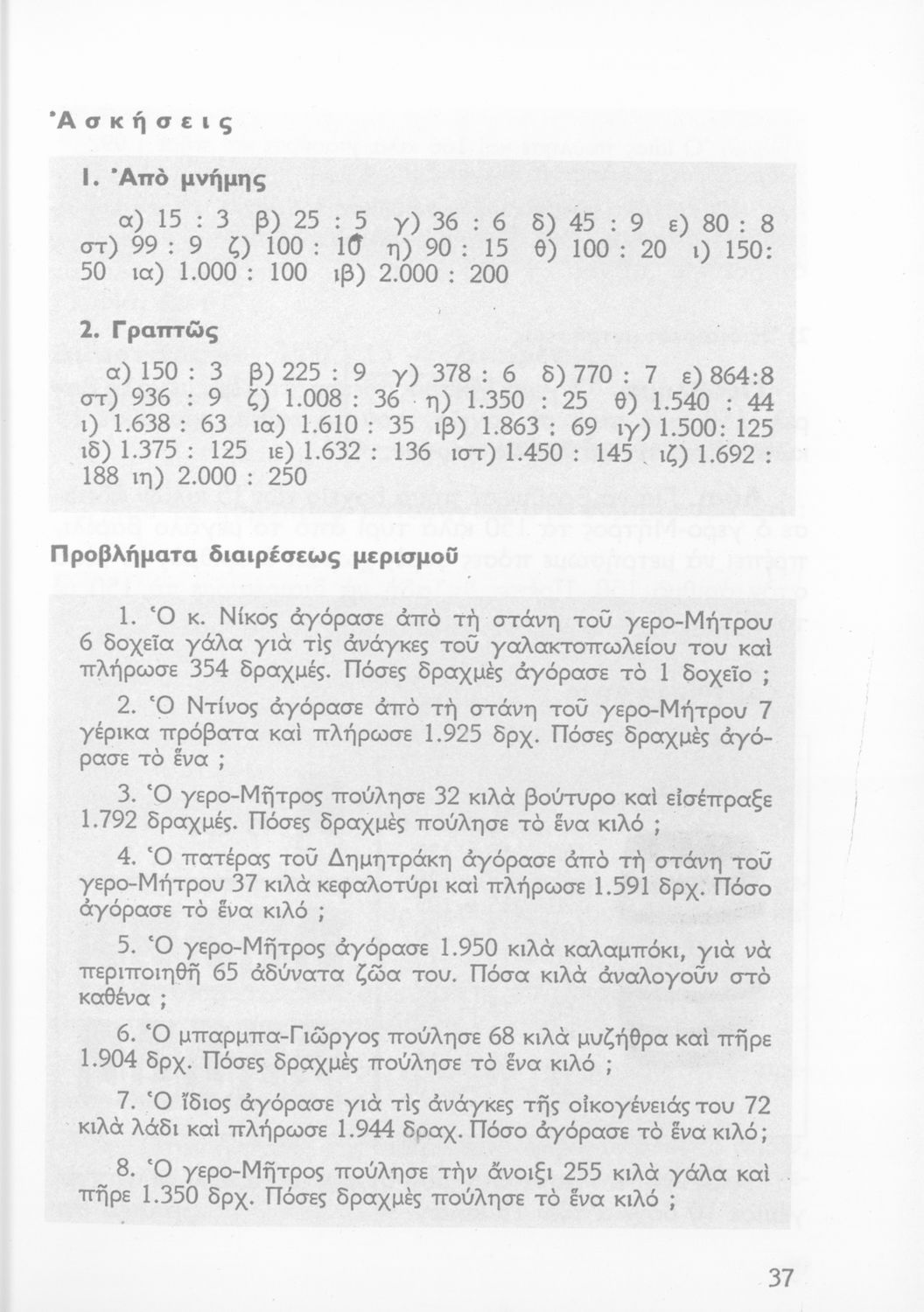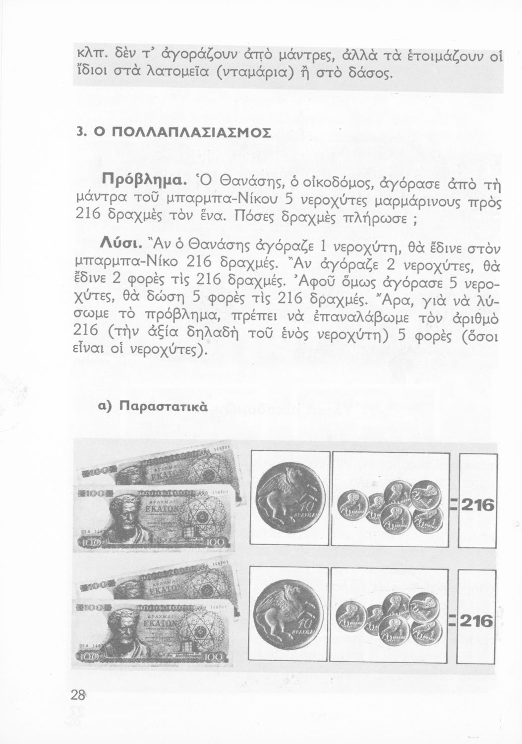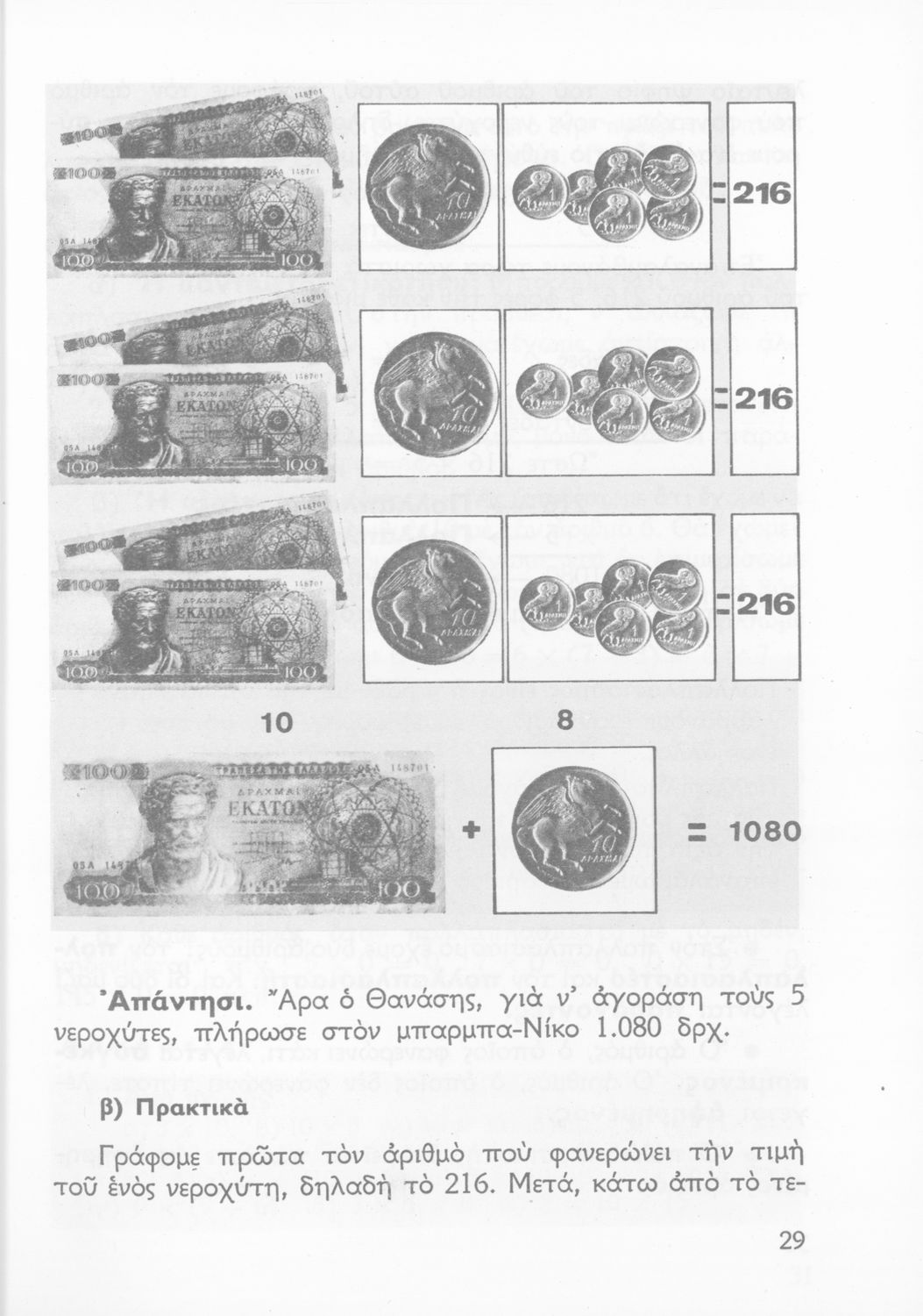 Σχολικό εγχειρίδιο Αριθμητικής Δ΄ Δημοτικού χωρισμένο σε πρακτικά προβλήματα και τις λύσεις τους που περιλαμβάνει και κάποια στοιχεία Γεωμετρίας.