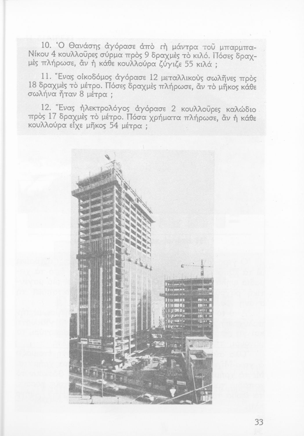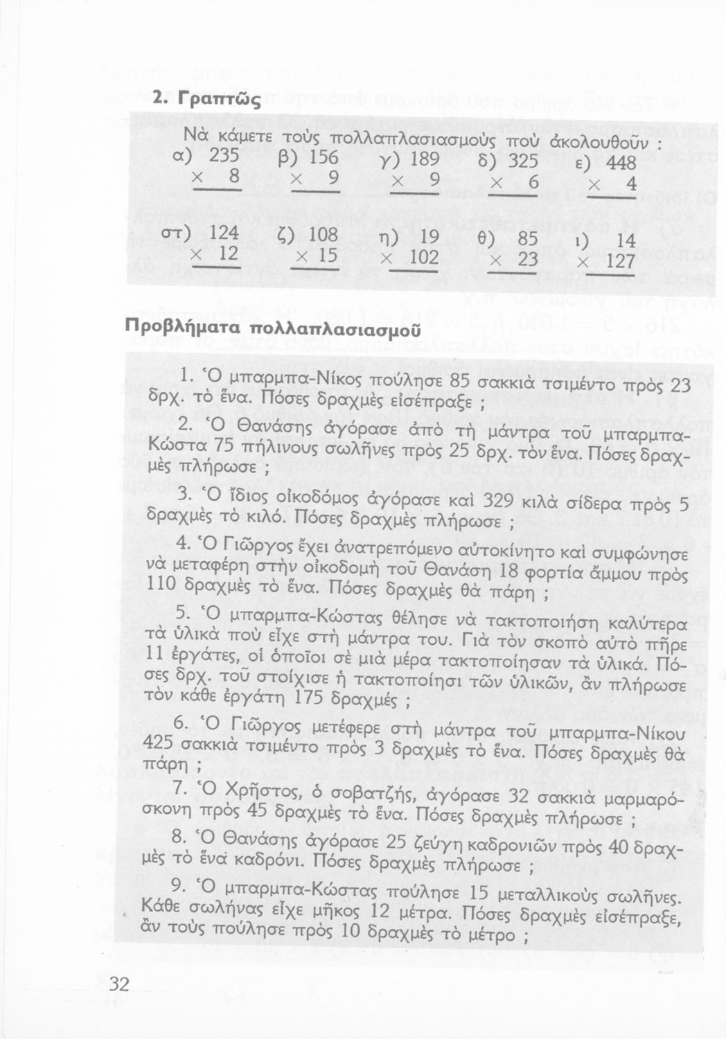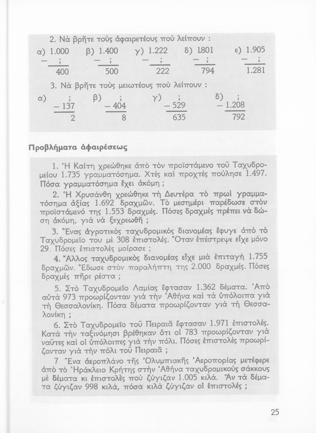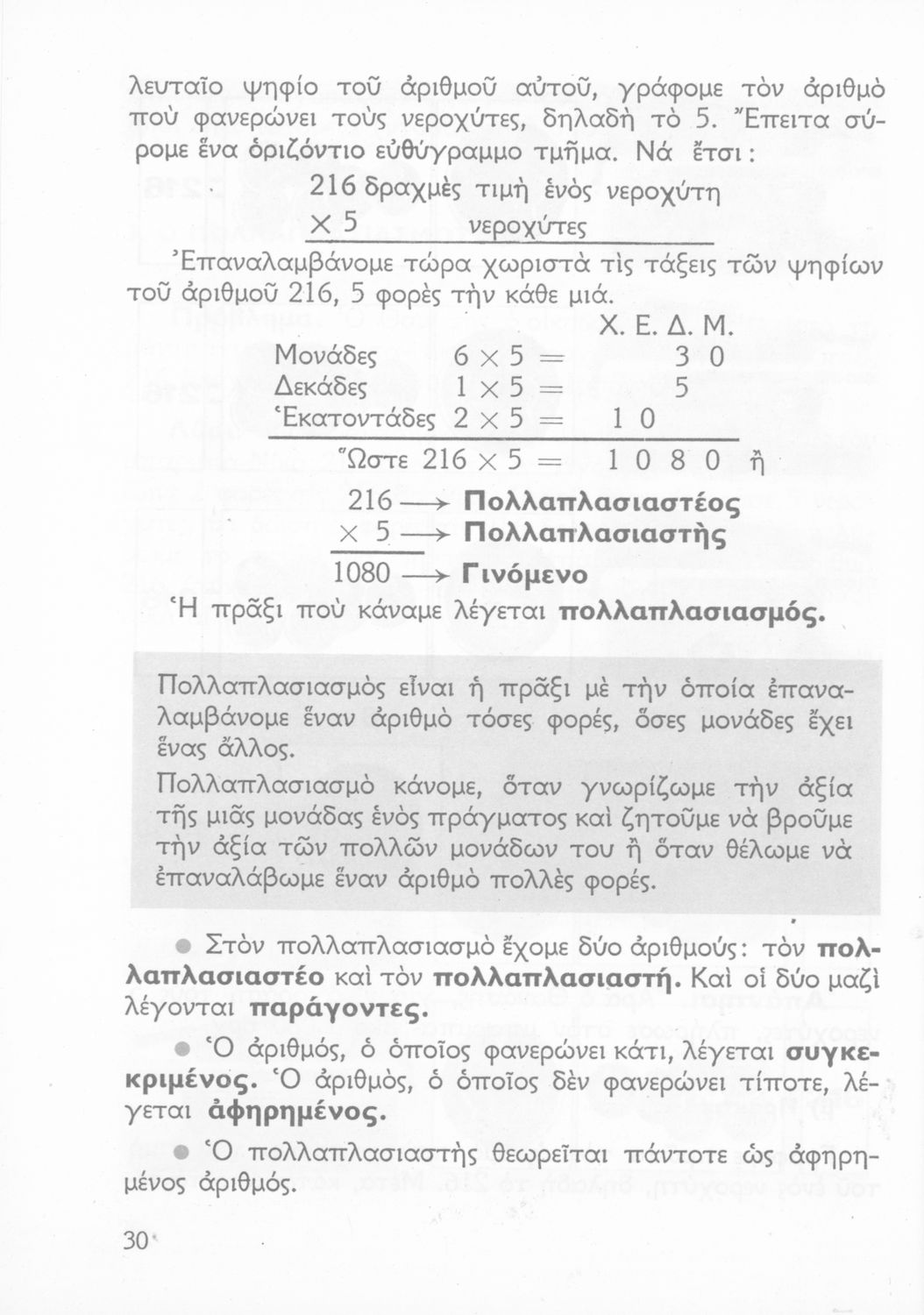 Σχολικό εγχειρίδιο Αριθμητικής Δ΄ Δημοτικού χωρισμένο σε πρακτικά προβλήματα και τις λύσεις τους που περιλαμβάνει και κάποια στοιχεία Γεωμετρίας.