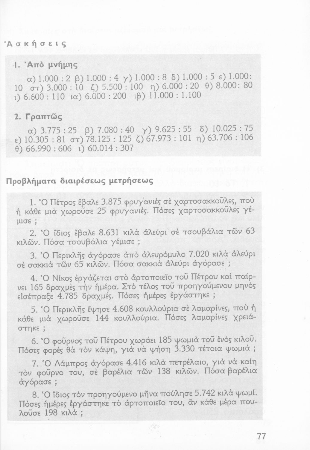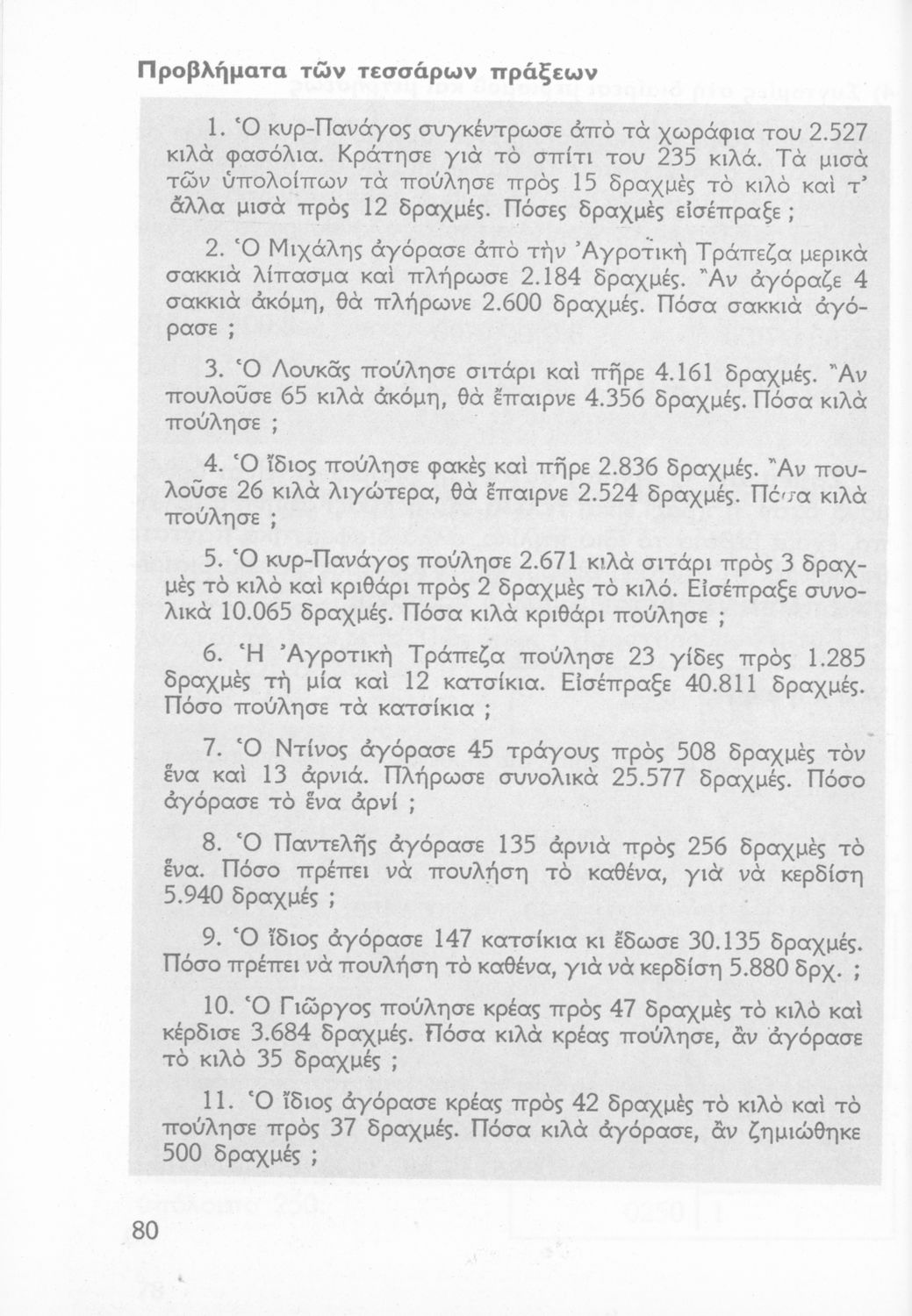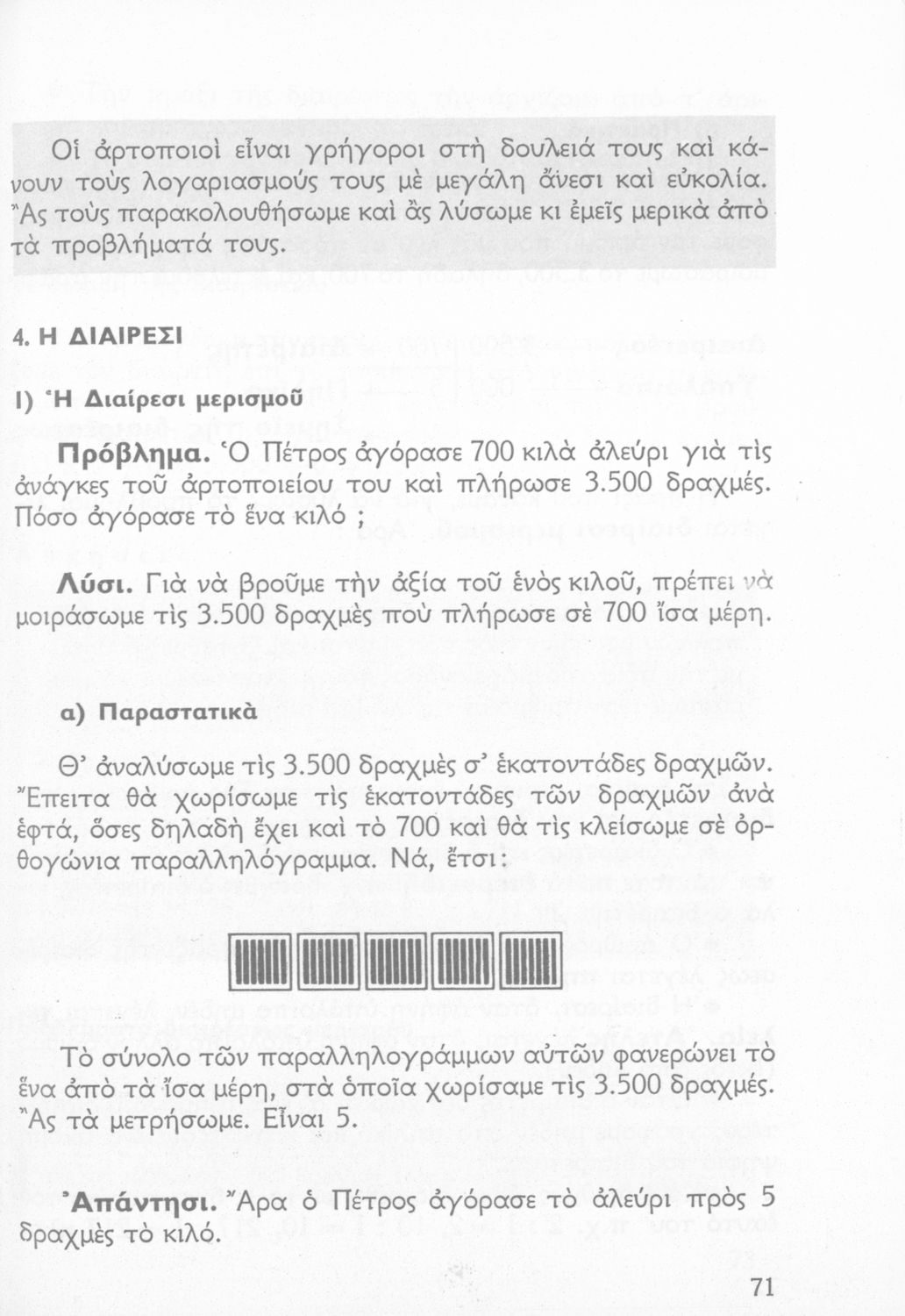 Σχολικό εγχειρίδιο Αριθμητικής Δ΄ Δημοτικού χωρισμένο σε πρακτικά προβλήματα και τις λύσεις τους που περιλαμβάνει και κάποια στοιχεία Γεωμετρίας.