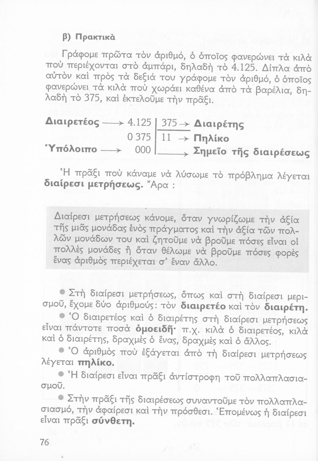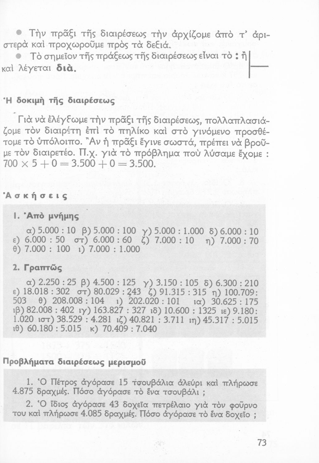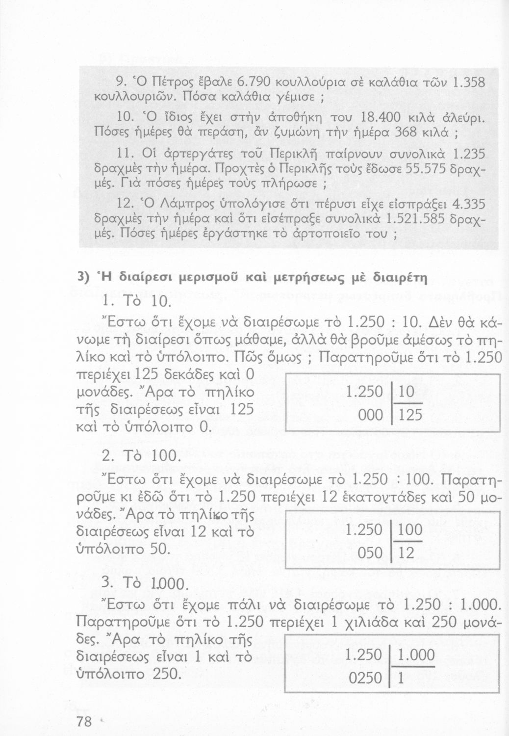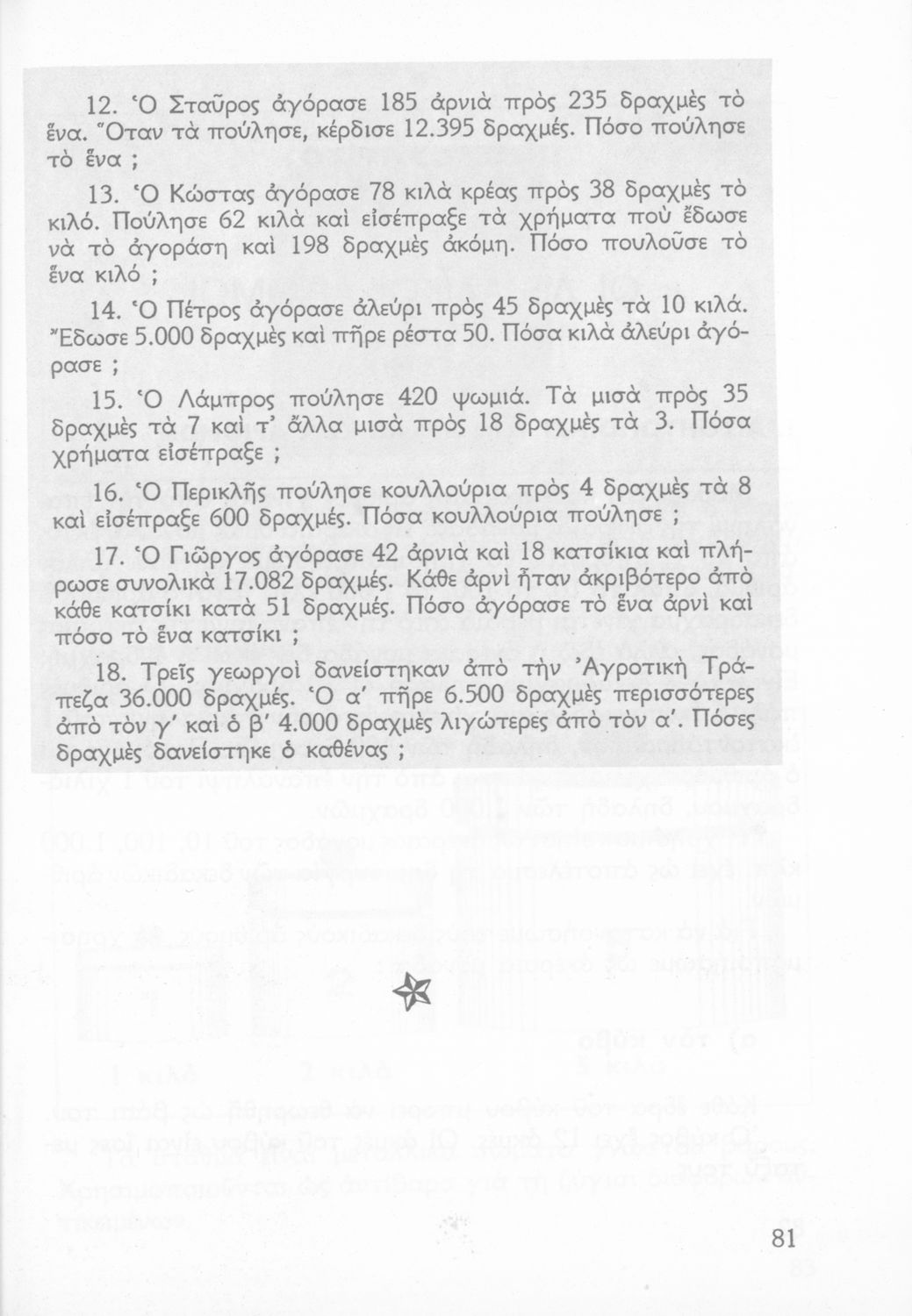 Σχολικό εγχειρίδιο Αριθμητικής Δ΄ Δημοτικού χωρισμένο σε πρακτικά προβλήματα και τις λύσεις τους που περιλαμβάνει και κάποια στοιχεία Γεωμετρίας.